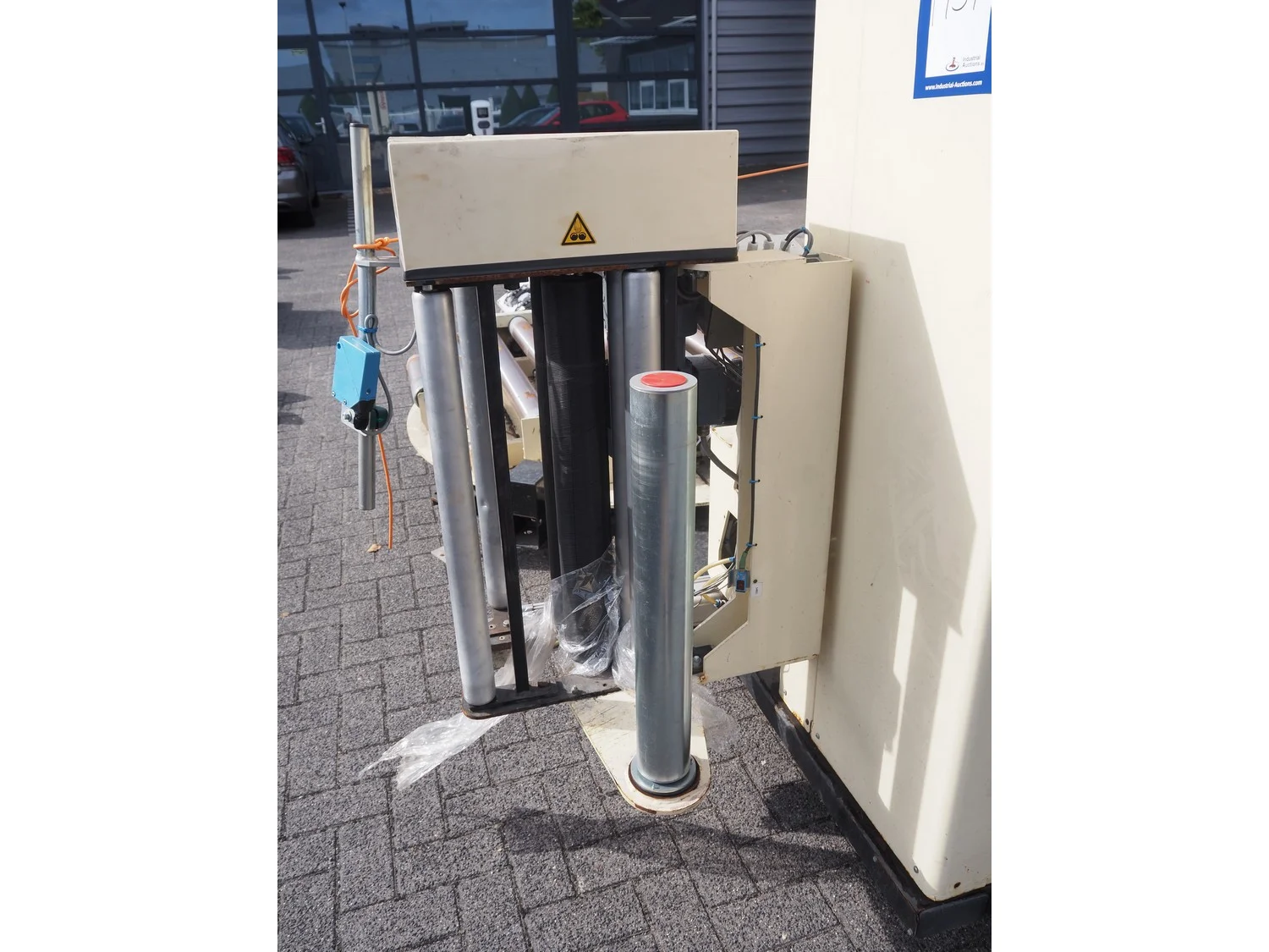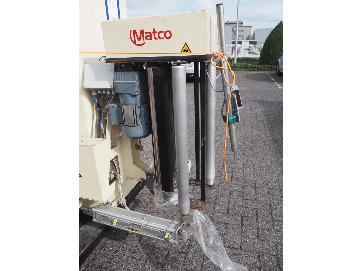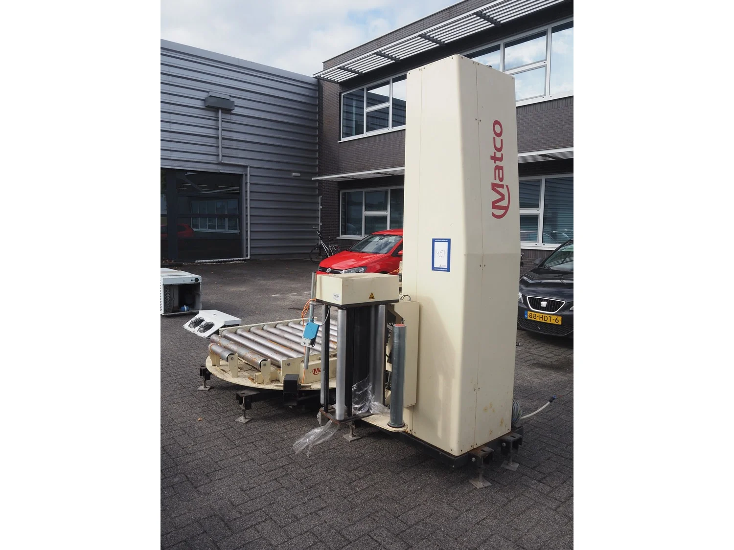 Matco pallet wrapper, type: TVA753, film width: 615 mm, diameter platform: Ø 1800 mm, roller width: 1200 mm, total dimensions: 3300 mm x 2200 mm x 2550 mm.