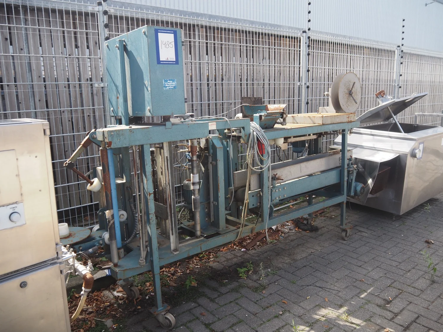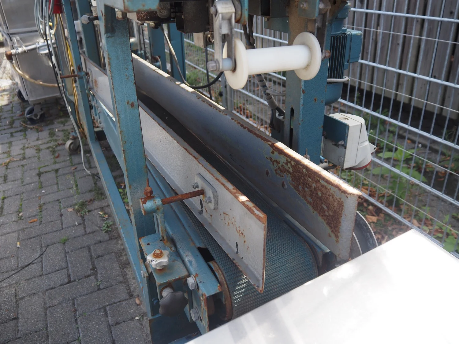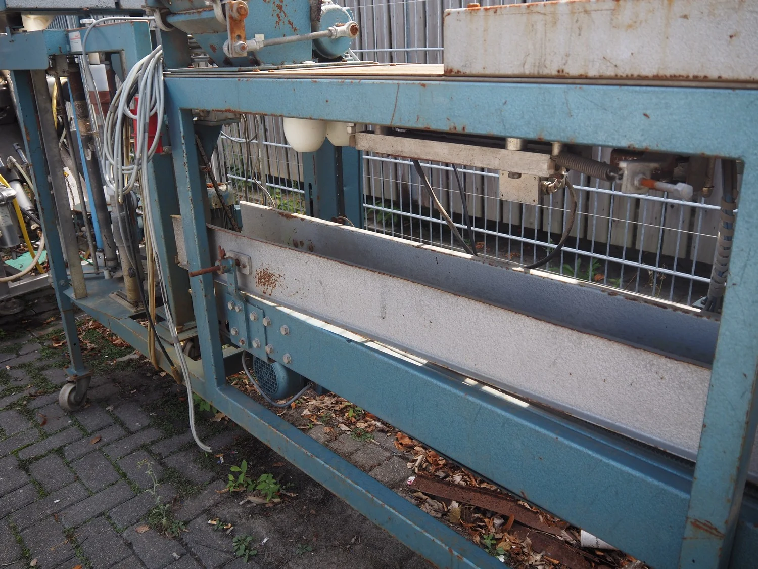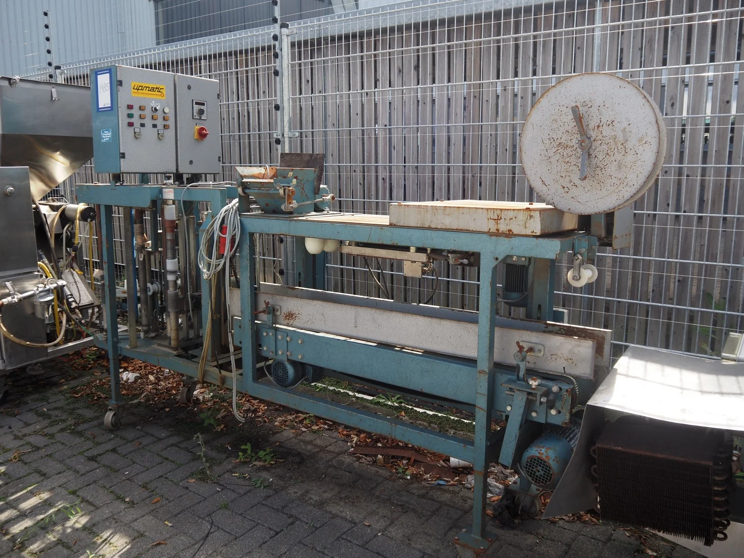Upmann Verpackungsmaschinen packaging machine, type: 2002, machine number: 05 90 946, year of construction: 1990, rubber belt, belt width: 160 mm, total dimensions: 3150 mm x 750 mm x 1850 mm.