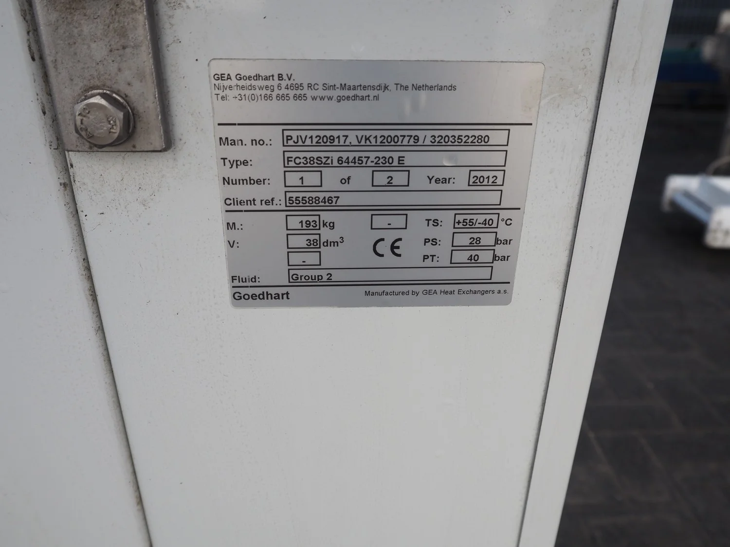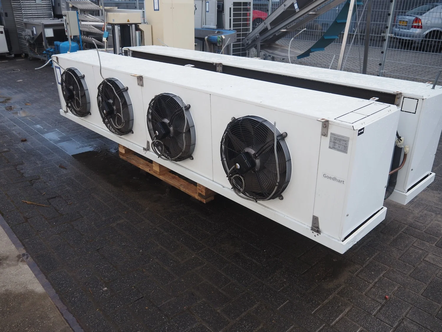 GEA Goedhart B.V. evaporator, type: FC38SZi 64457-230 E, manufacturing number: PJV120917.VK1200779, year of construction: 2012, 4 fans, dimensions: 3400 mm x 650 mm x 650 mm.