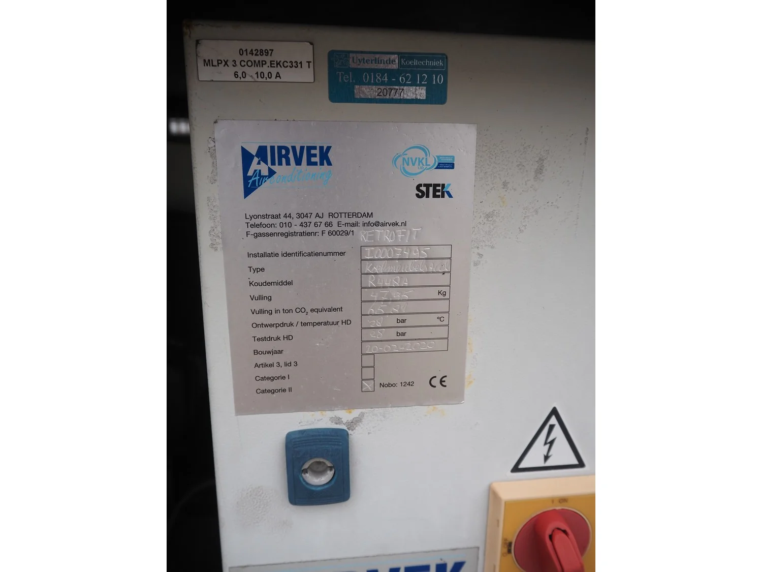 Cabinet with 3 Tecumseh cooling compressors, model: TFHP4540X, refrigerant: R507, dimensions: 2400 mm x 750 mm x 800 mm.