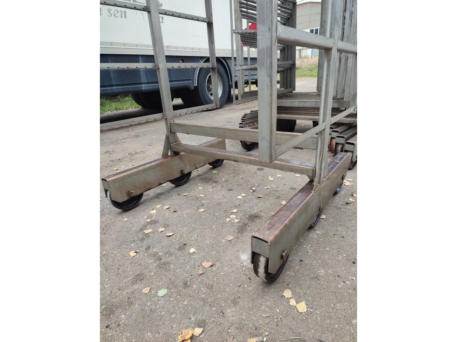 10 s/s smoke trolleys, 6 floors each, dimensions each floor: 1005 mm x 995 mm, total dimensions: (10x) 1015 mm x 1000 mm x 2005 mm.