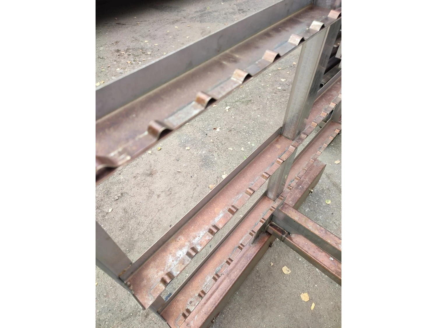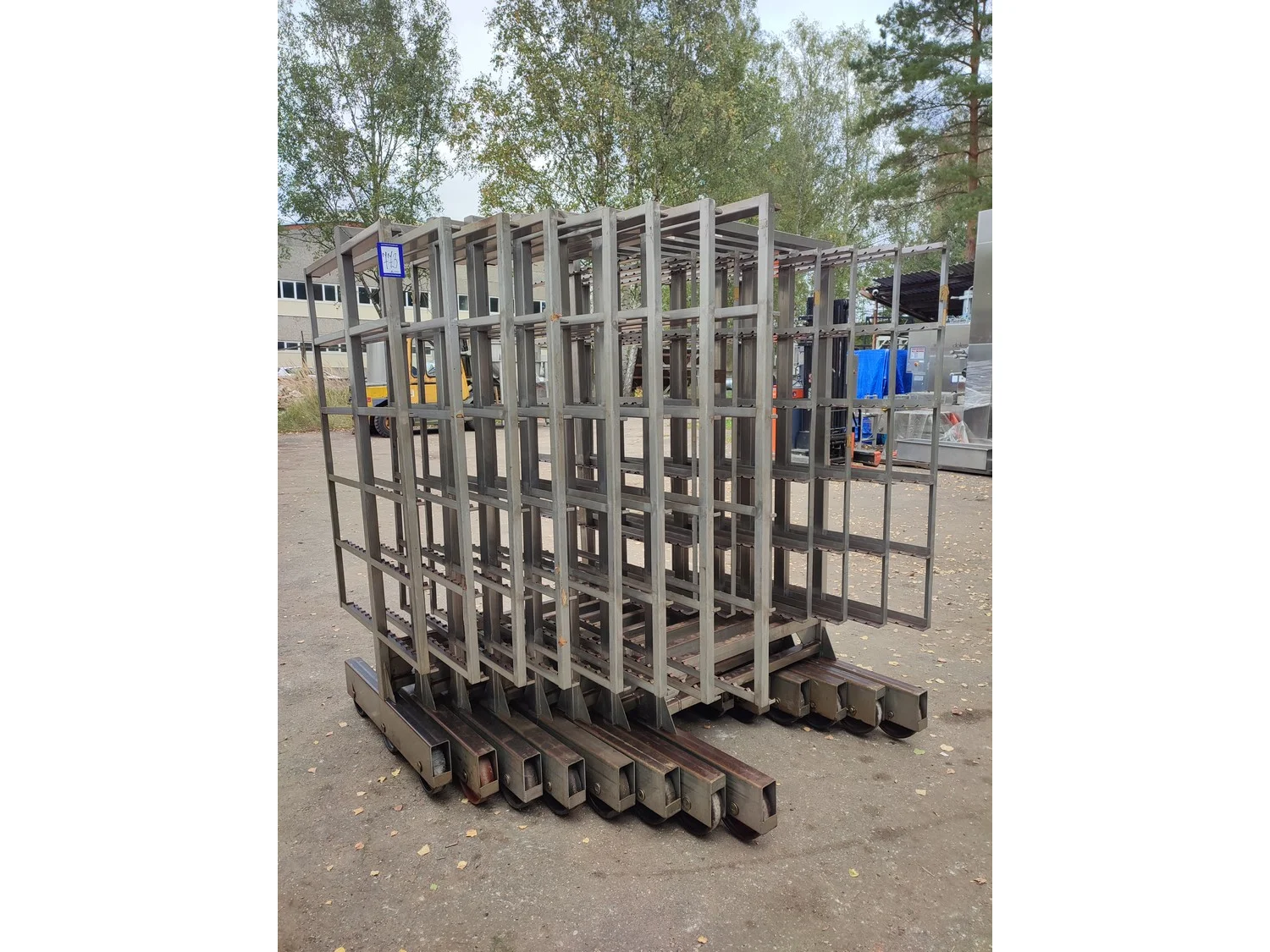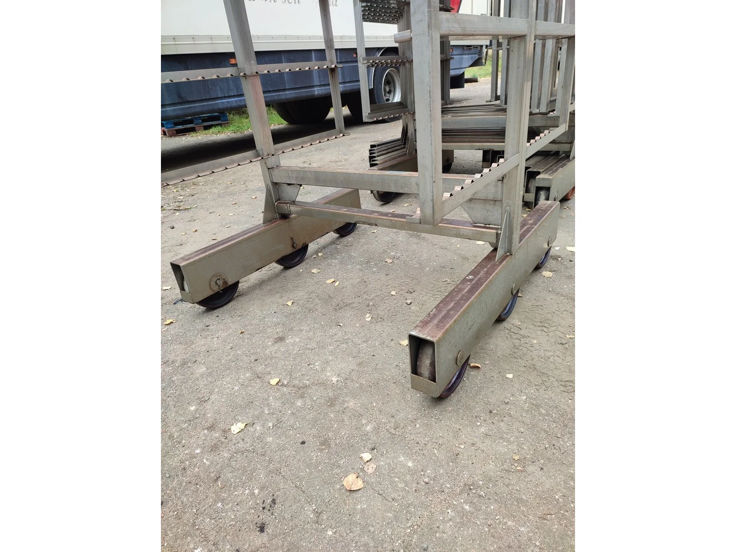 8 s/s smoke trolleys, 6 floors each, dimensions each floor: 1010 mm x 995 mm, total dimensions: (8x) 1015 mm x 1000 mm x 2005 mm.