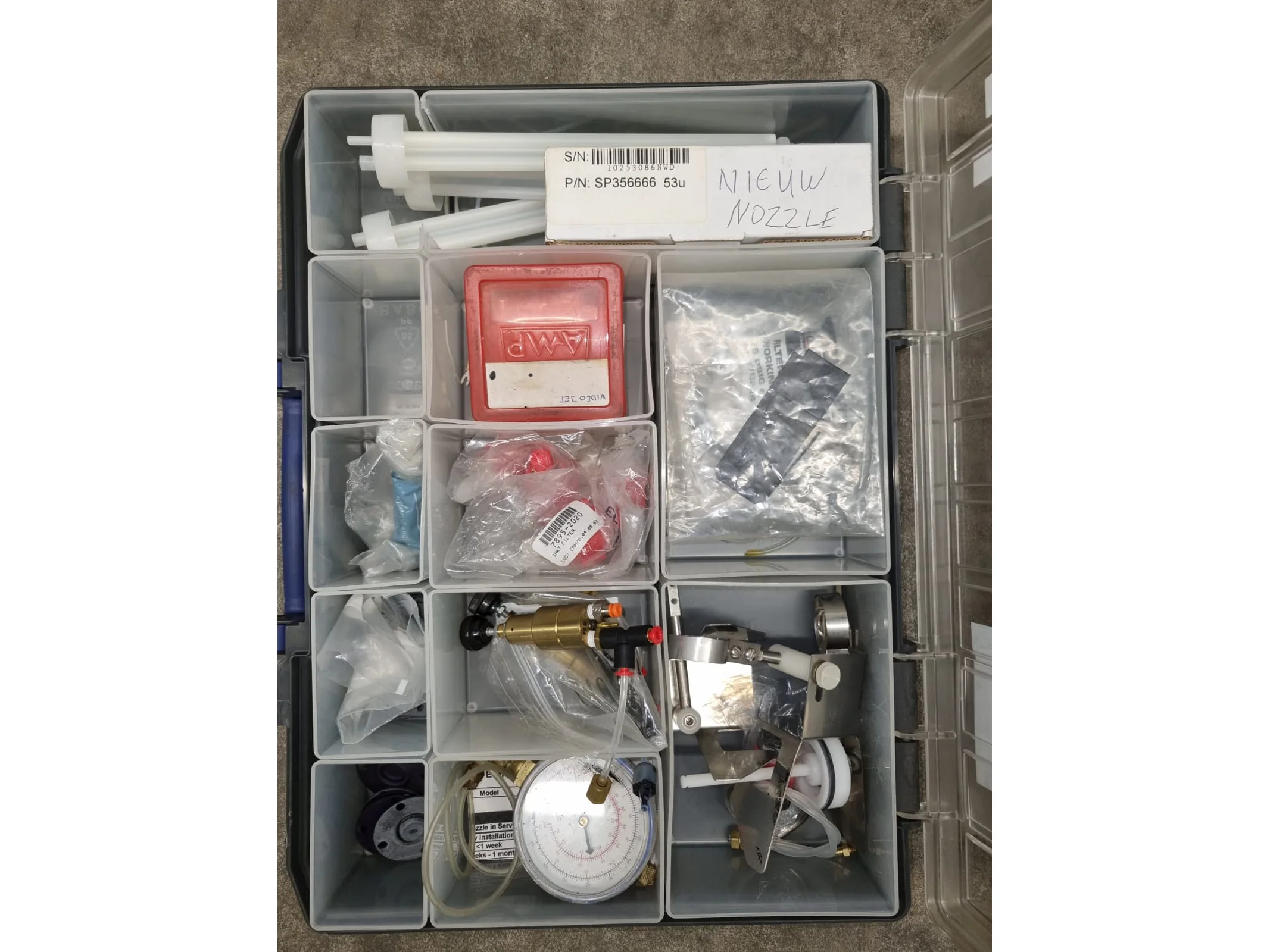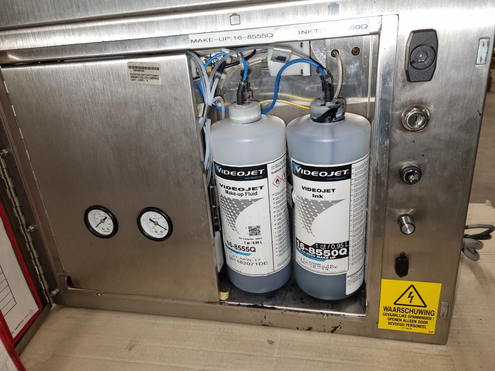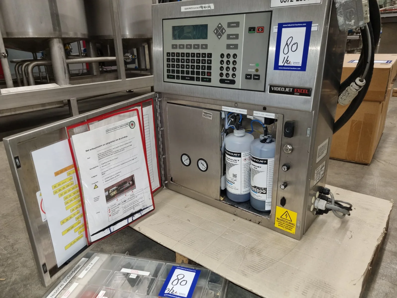 Videojet inkjet printer, model: EXCEL 2000, serial number: 051521014WD, 100-240 V, 1 Ph, 50/60 Hz, 2-1 A, dimensions: 800 mm x 600 mm x 900 mm. Including box with repair set.