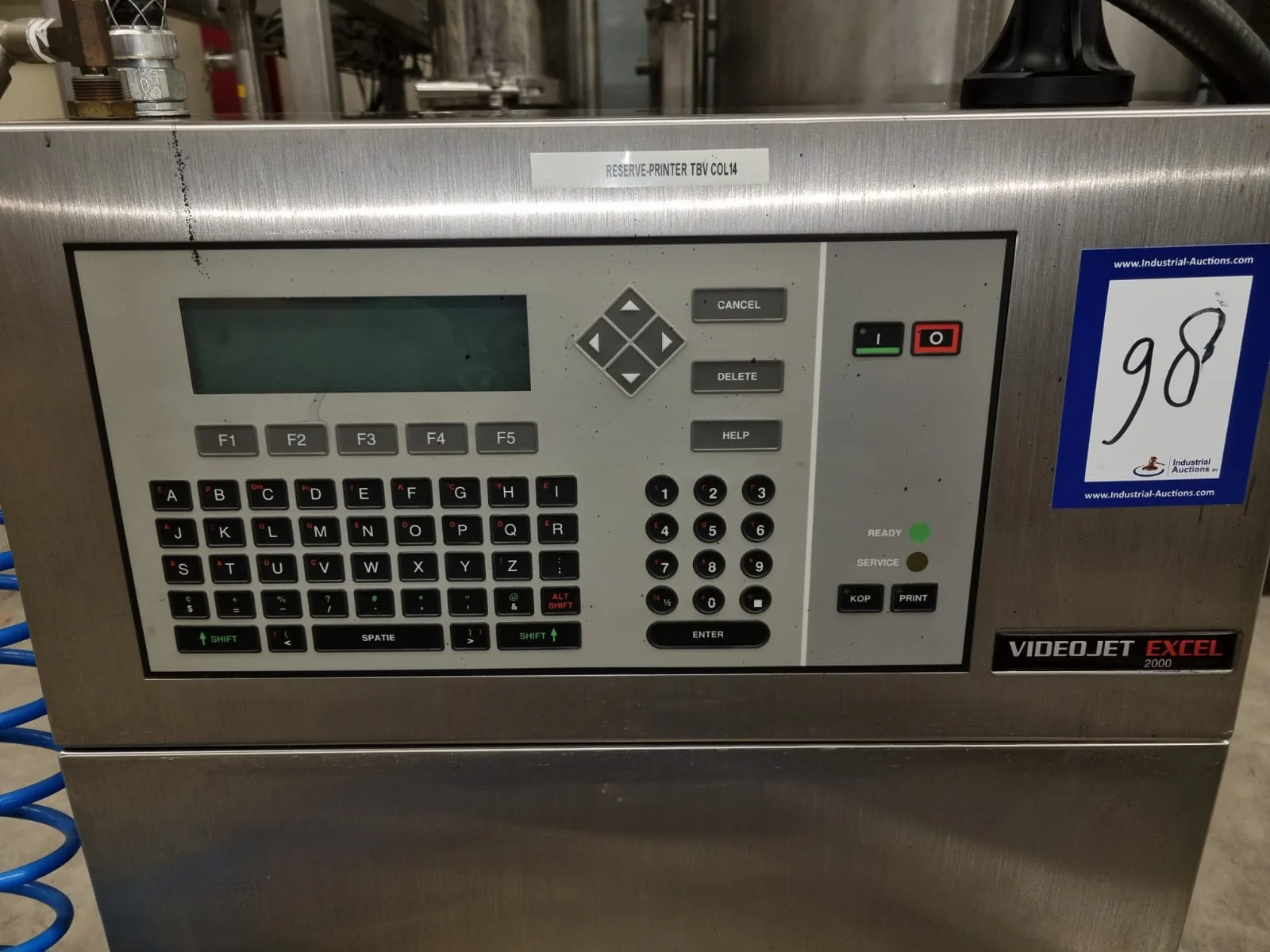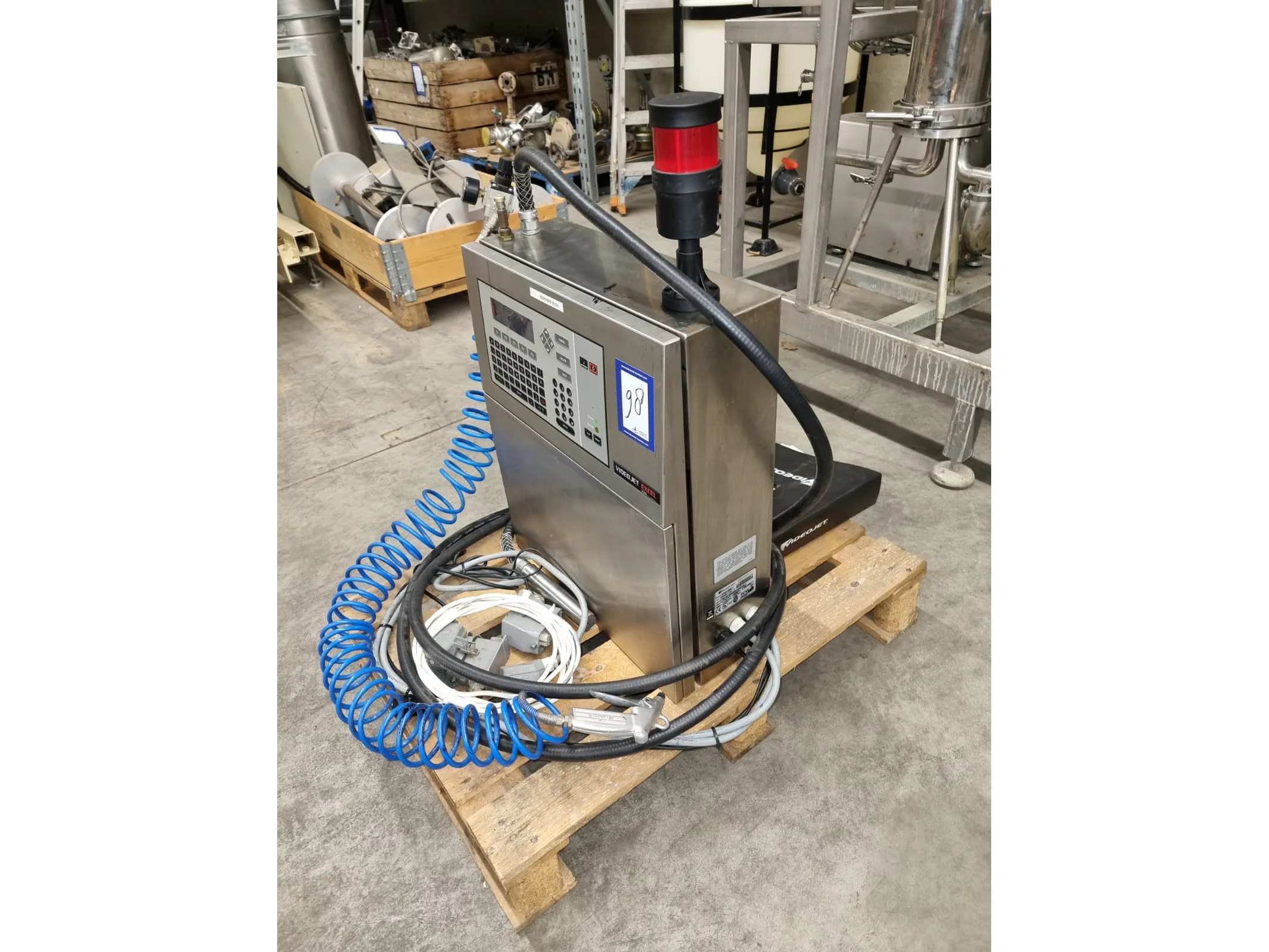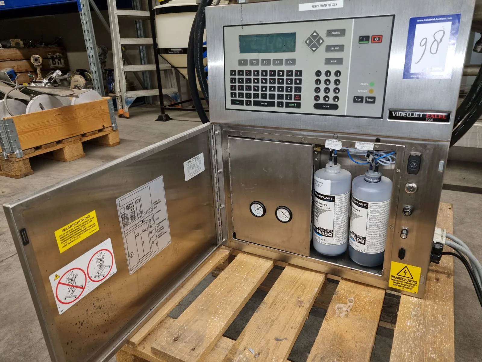 Videojet inkjet printer, model: EXCEL 2000, serial number: 073621019WD, 100-240 V, 1 Ph, 50/60 Hz, 2-1 A, dimensions: 950 mm x 700 mm x 1100 mm.