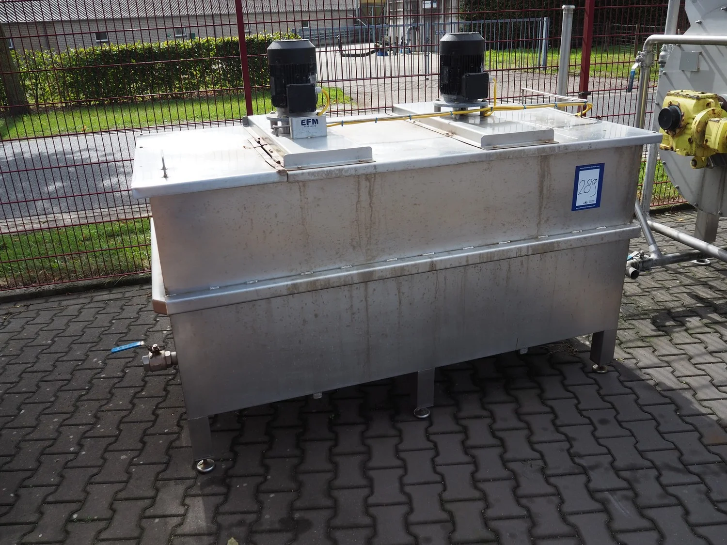 EFM Machinery s/s mixing tank, type: MENGTANK, serial number: 1164, year of construction: 2006, inside dimensions: 2000 mm x 1000 mm x 920 mm, total dimensions: 2150 mm x 1110 mm x 1620 mm.