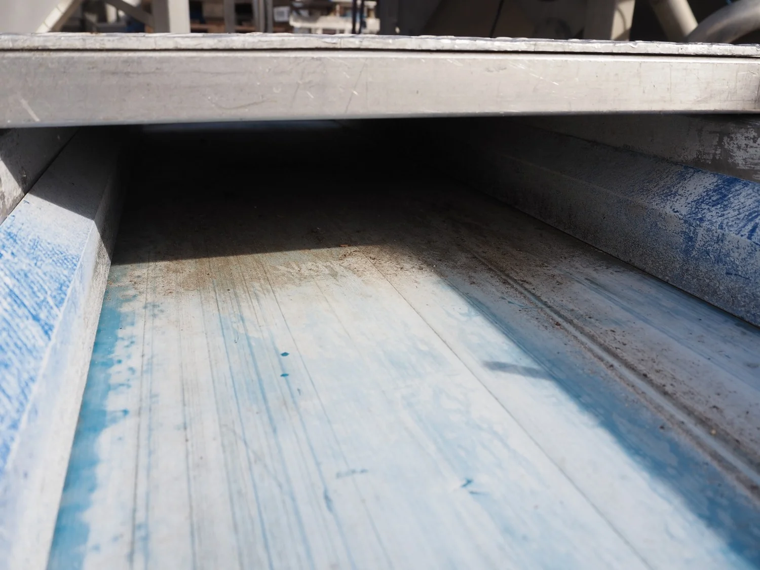 Transport belt with steel galvanized platform, plastic belt, belt width: 450 mm, total dimensions: 1500 mm x 500 mm x 350 mm.