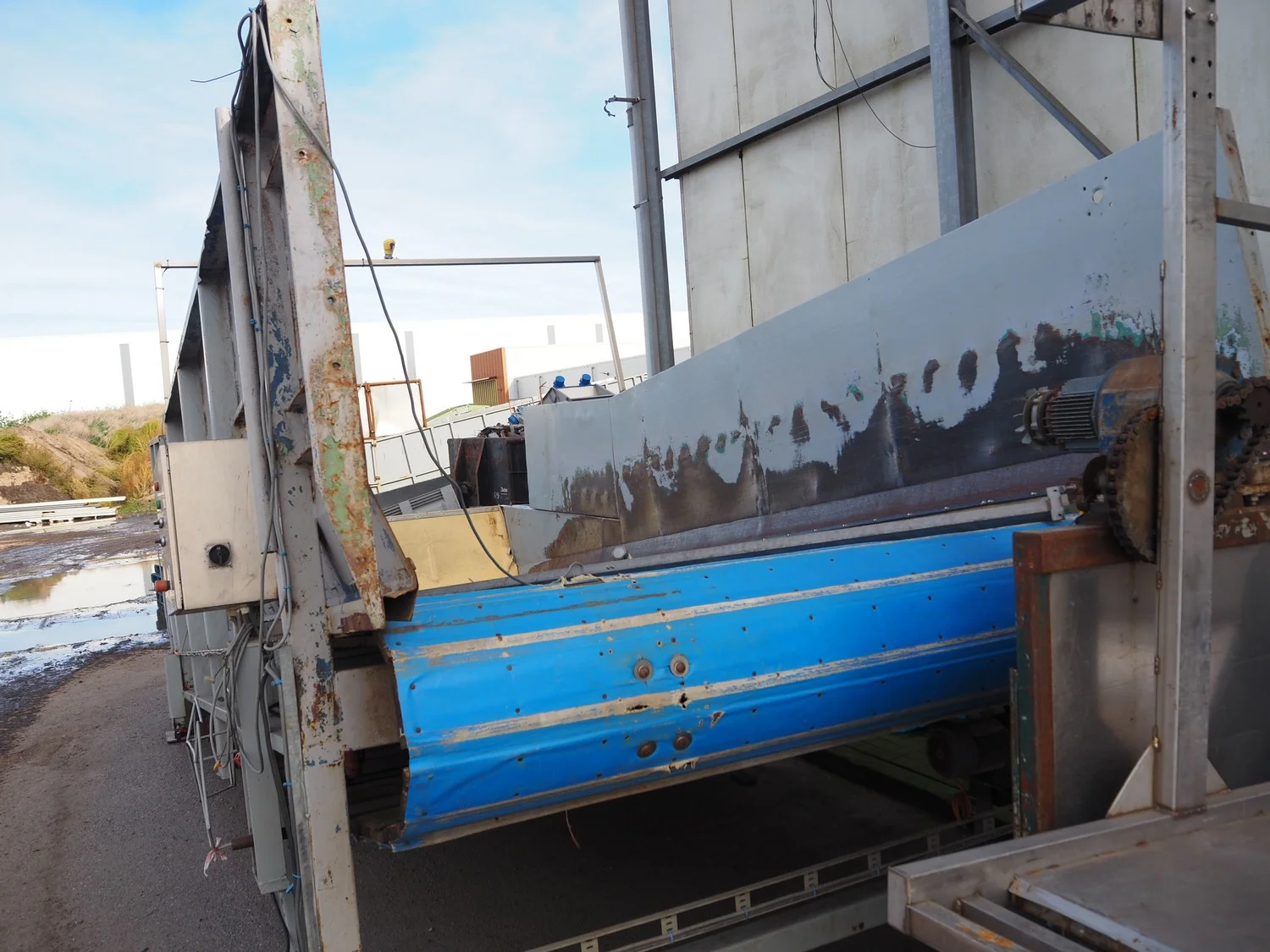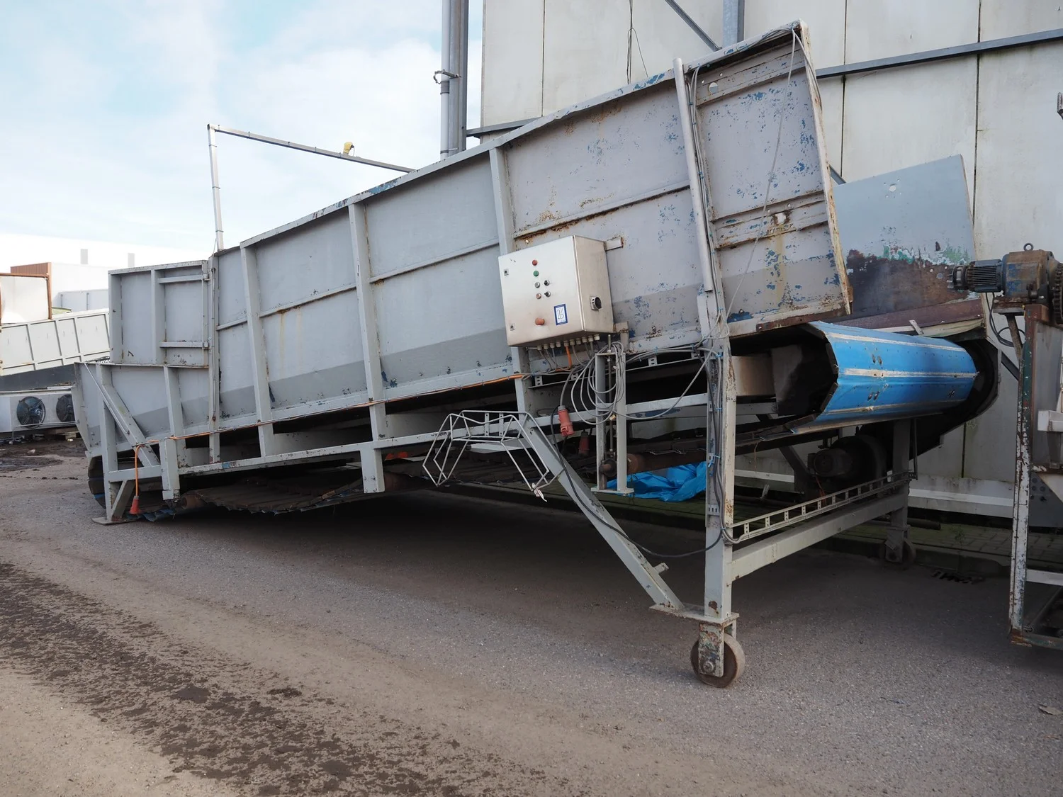 Mobile infeed bunker, plastic belt, belt width: 2900 mm, total dimensions: 7700 mm x 3600 mm x 3200 mm.