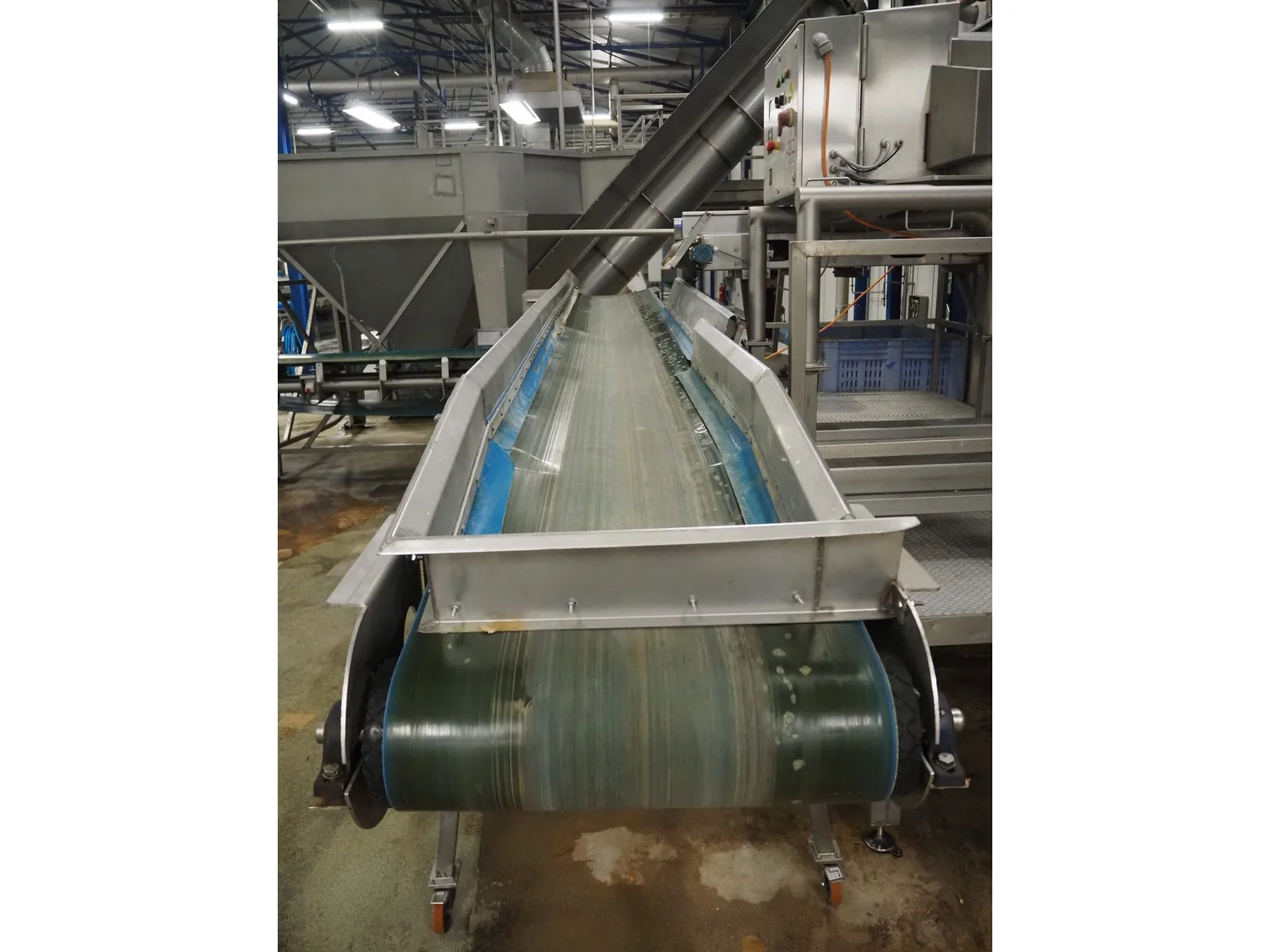 Mobile transport belt, plastic belt, belt width: 580 mm, total dimensions: 5800 mm x 750 mm x 1750 mm. Available from January 2026.