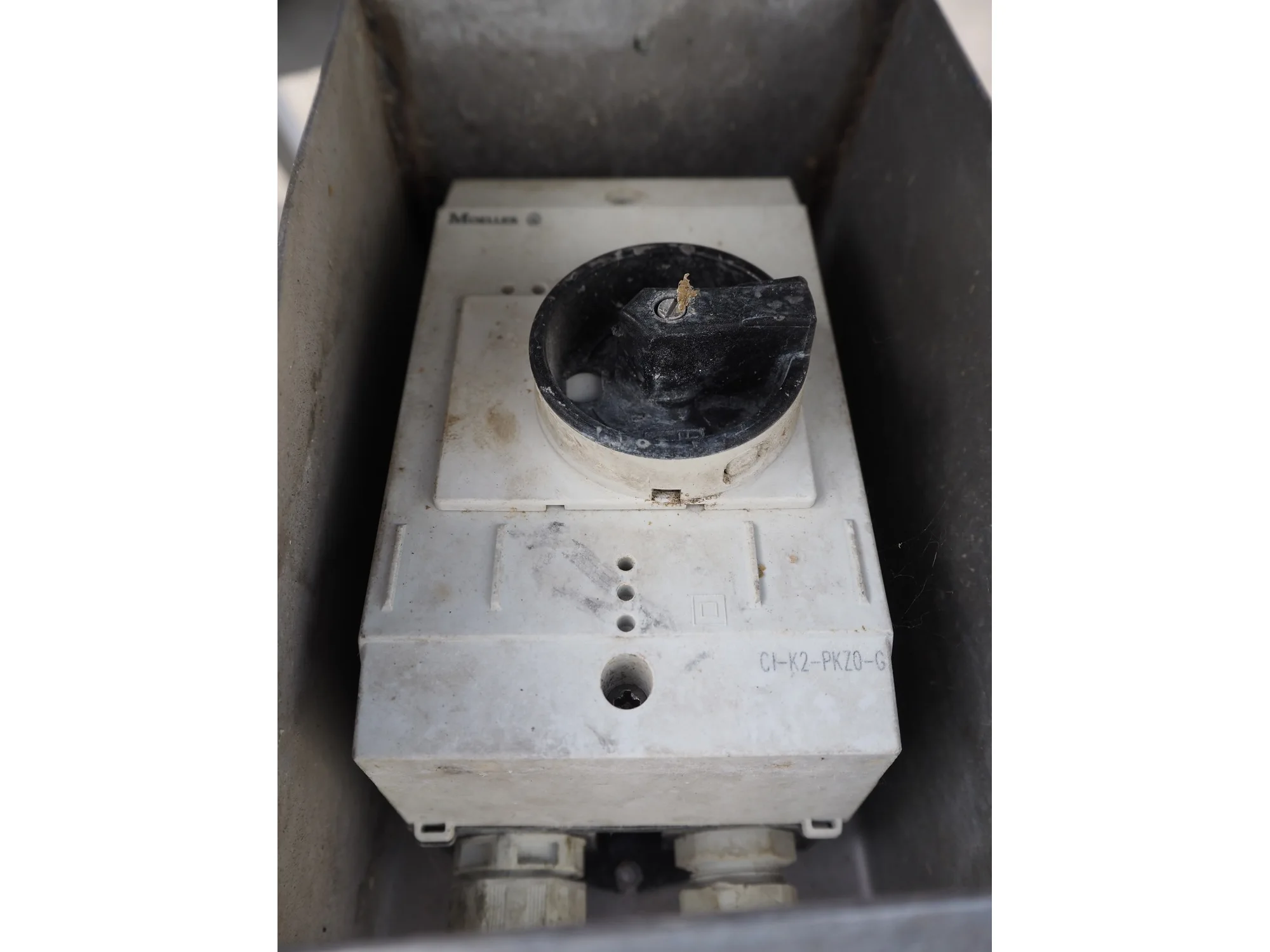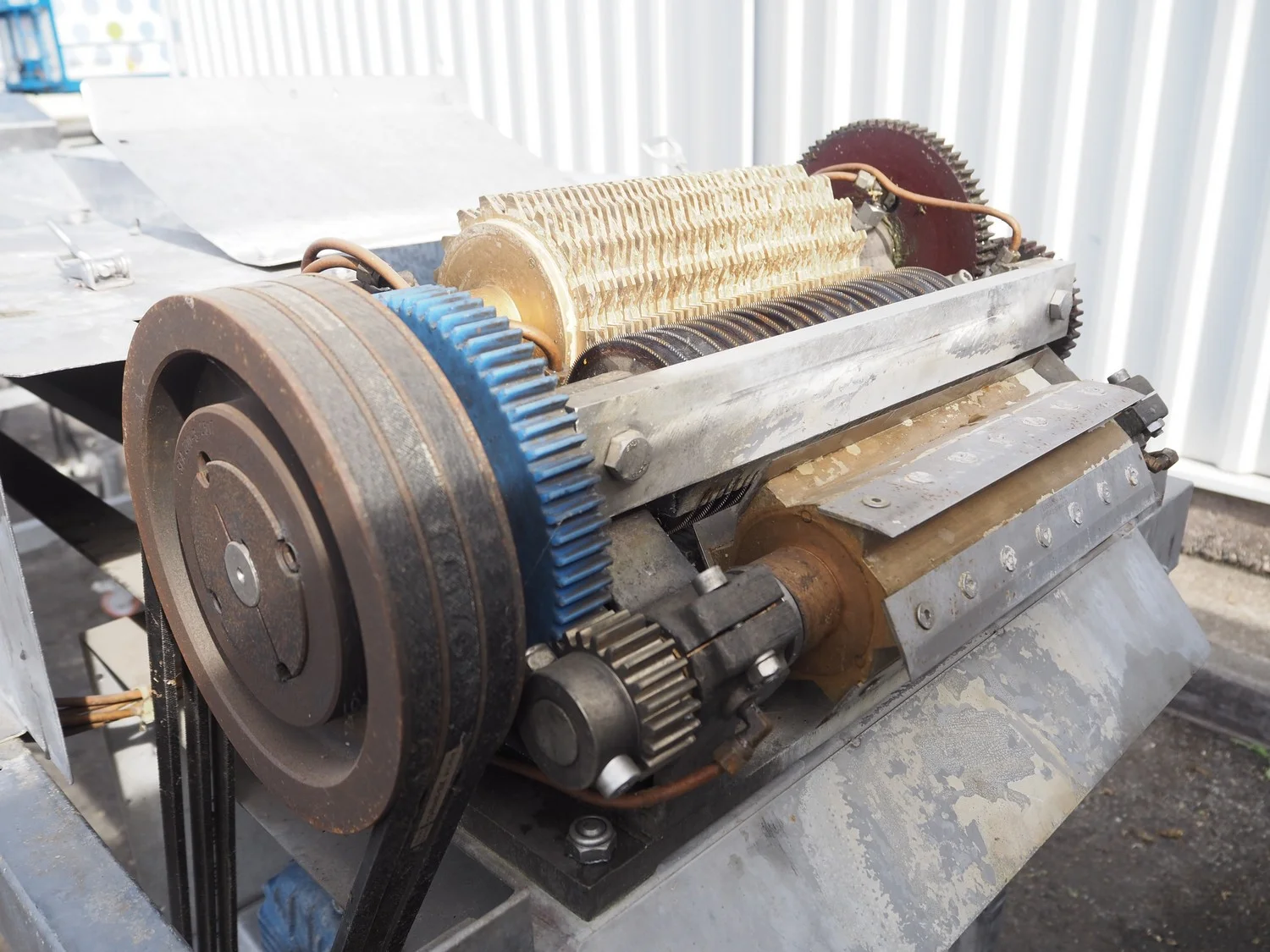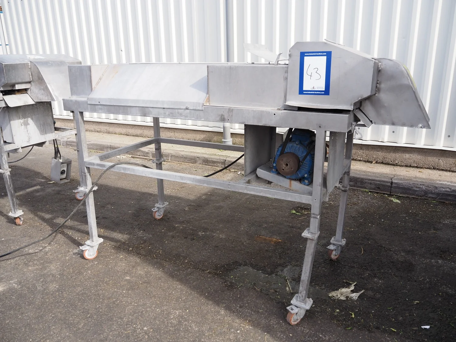 FAM mobile belt slicer, plastic belt, belt width: 260 mm, total dimensions: 2150 mm x 750 mm x 1550 mm.