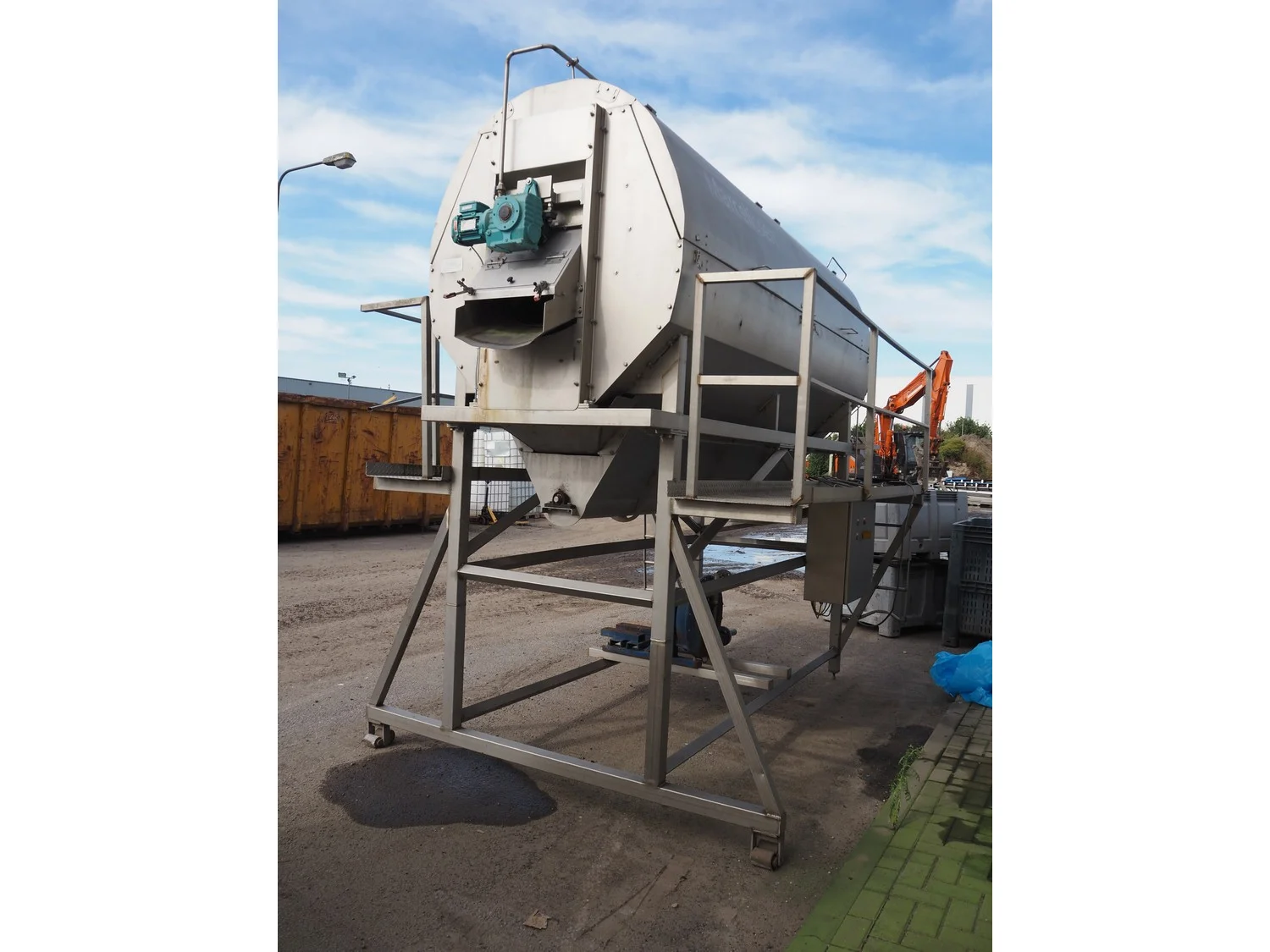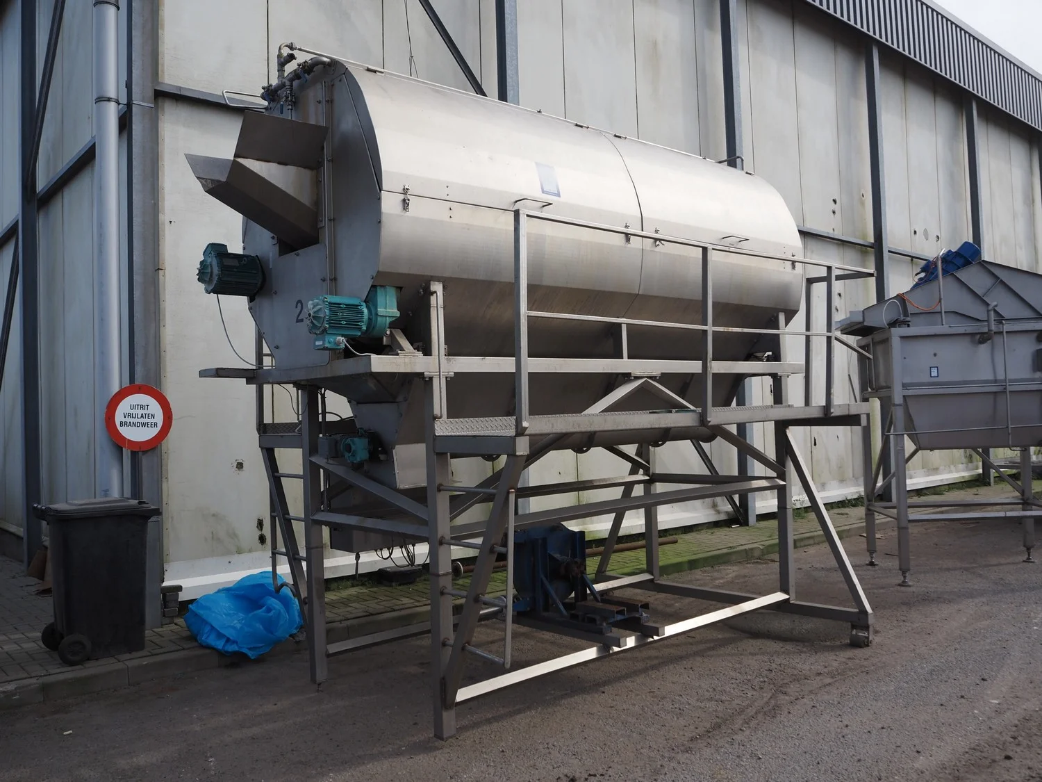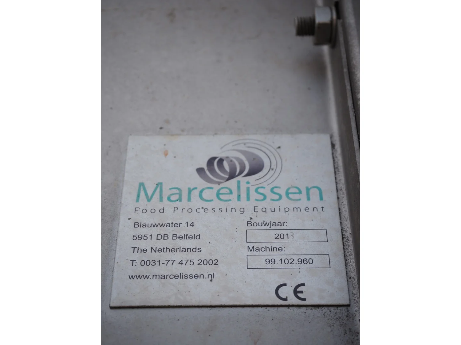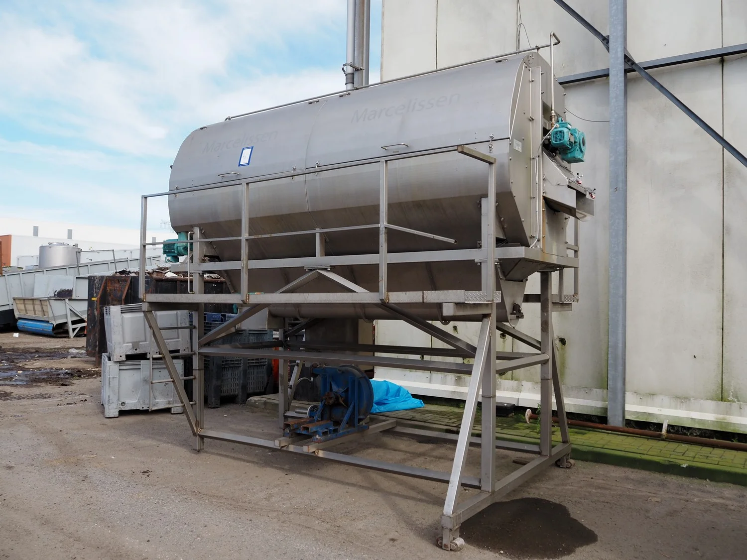 Marcelissen carborundum drum peeler with peristaltic hose pump, machine number: 99.102.960, year of construction: 2013, dimensions: 4000 mm x 2600 mm x 3700 mm.