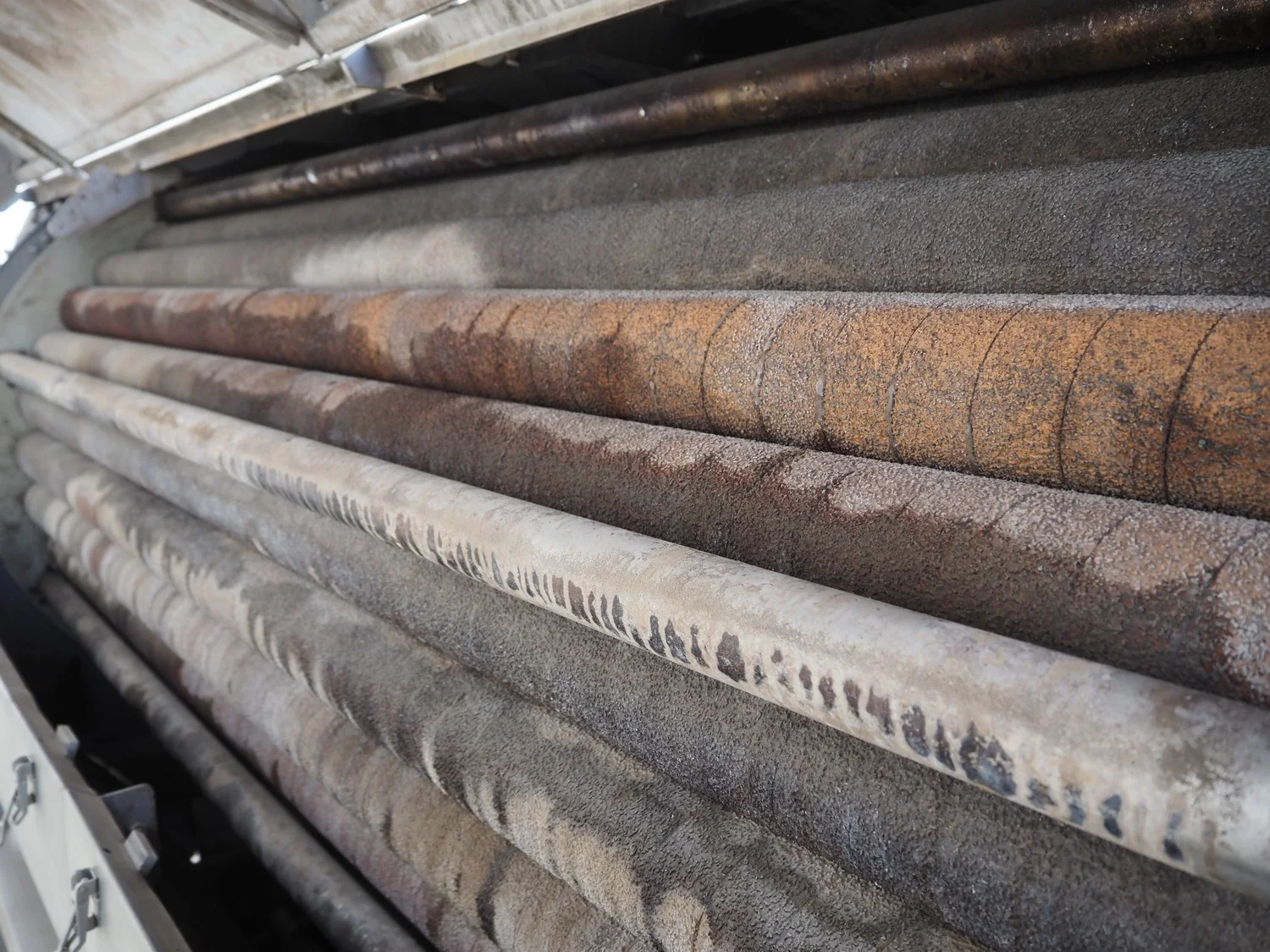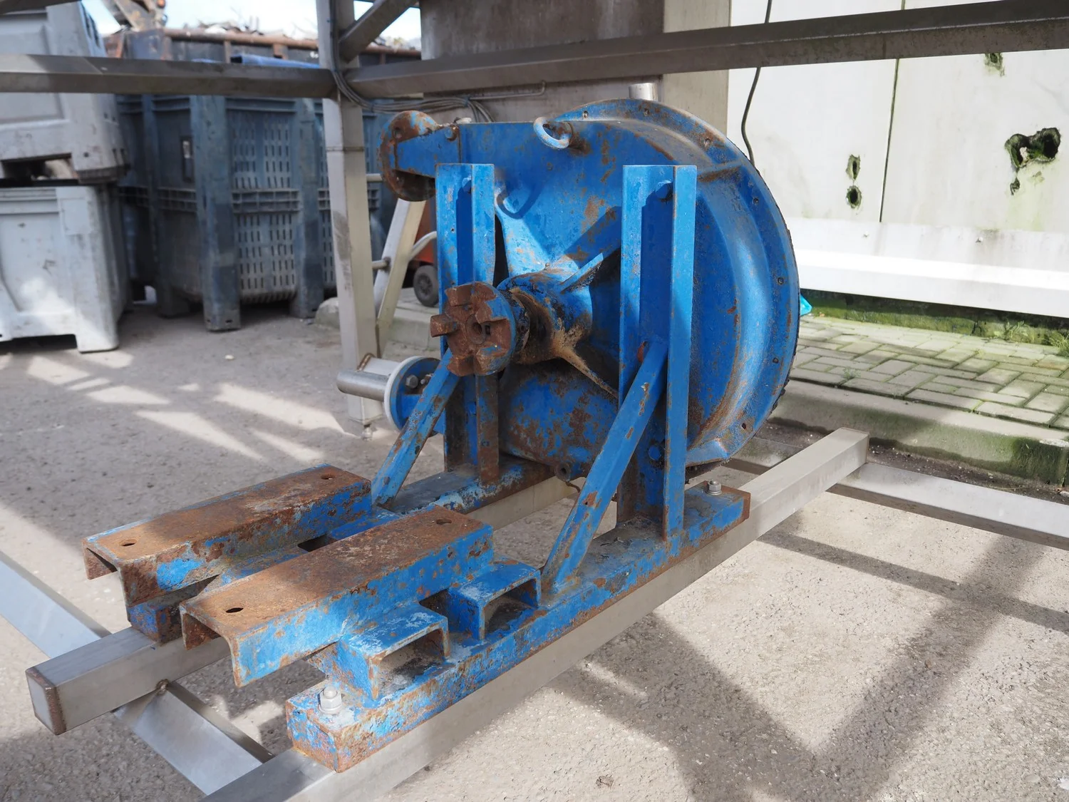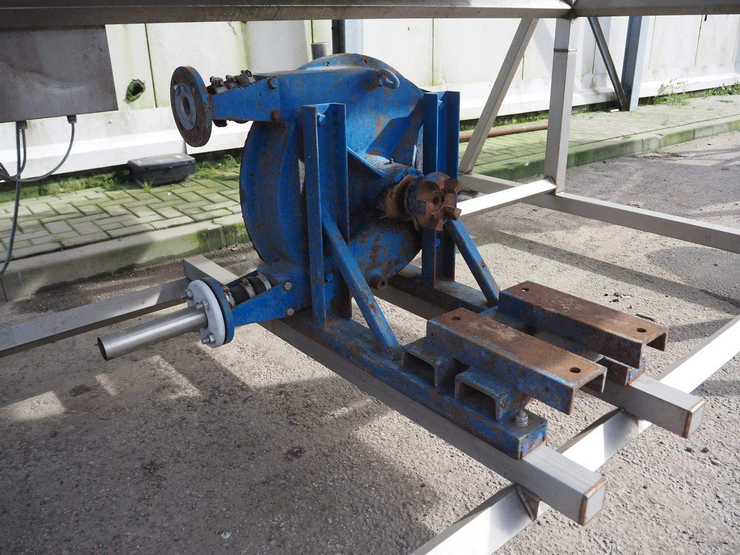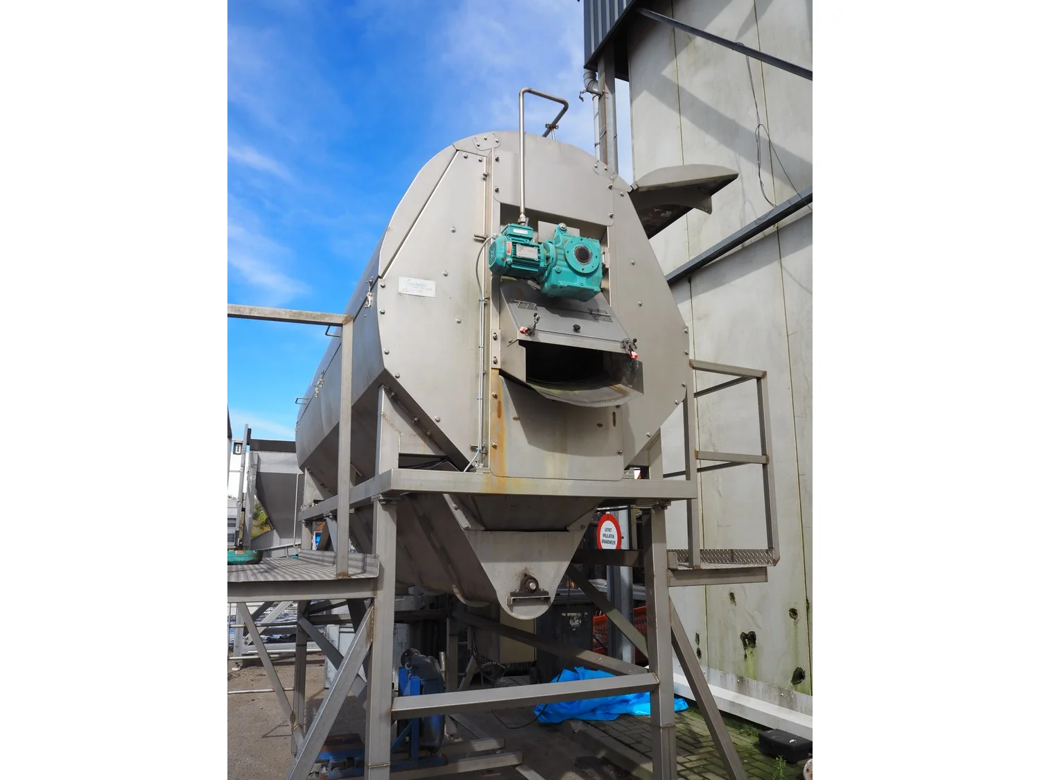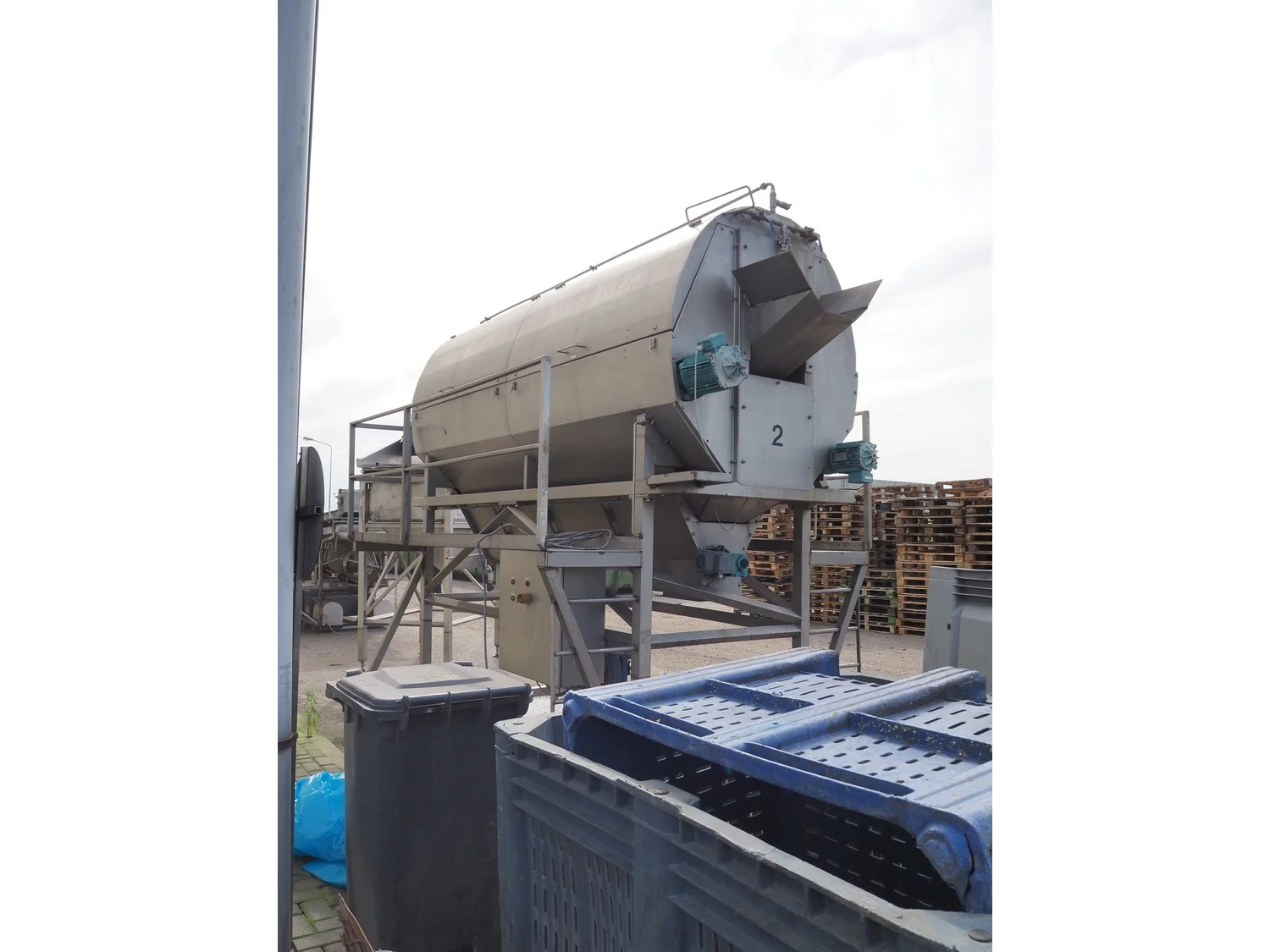 Marcelissen carborundum drum peeler with peristaltic hose pump, machine number: 99.102.960, year of construction: 2013, dimensions: 4000 mm x 2600 mm x 3700 mm.
