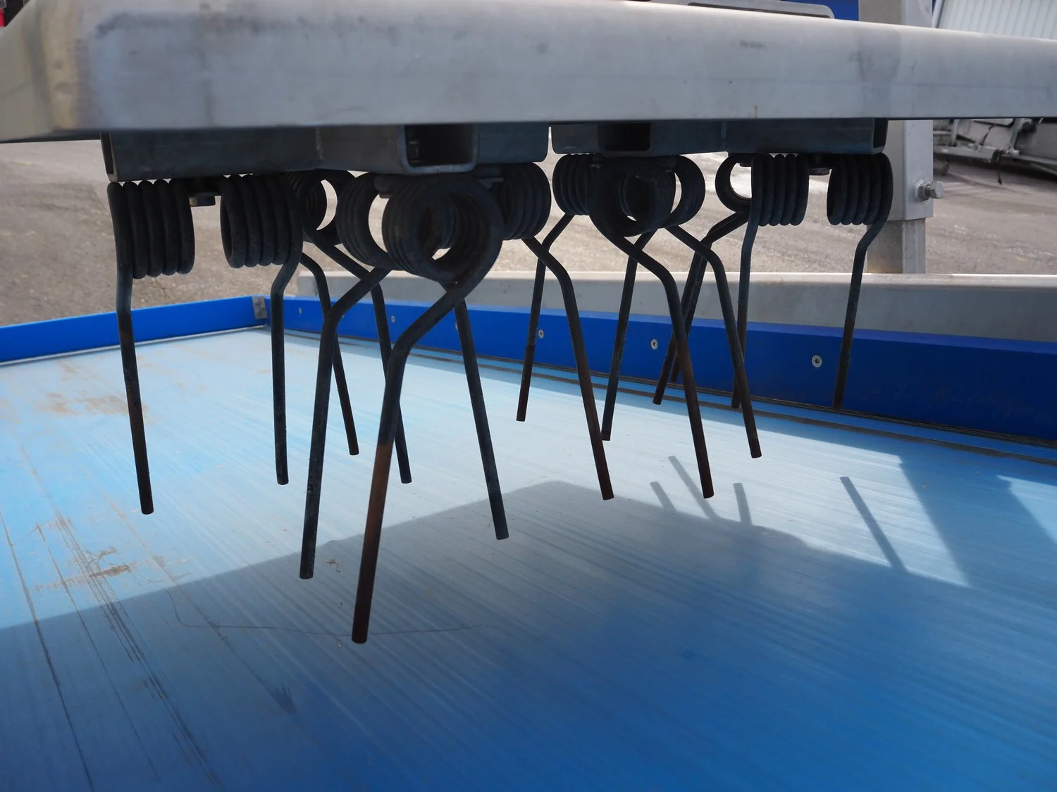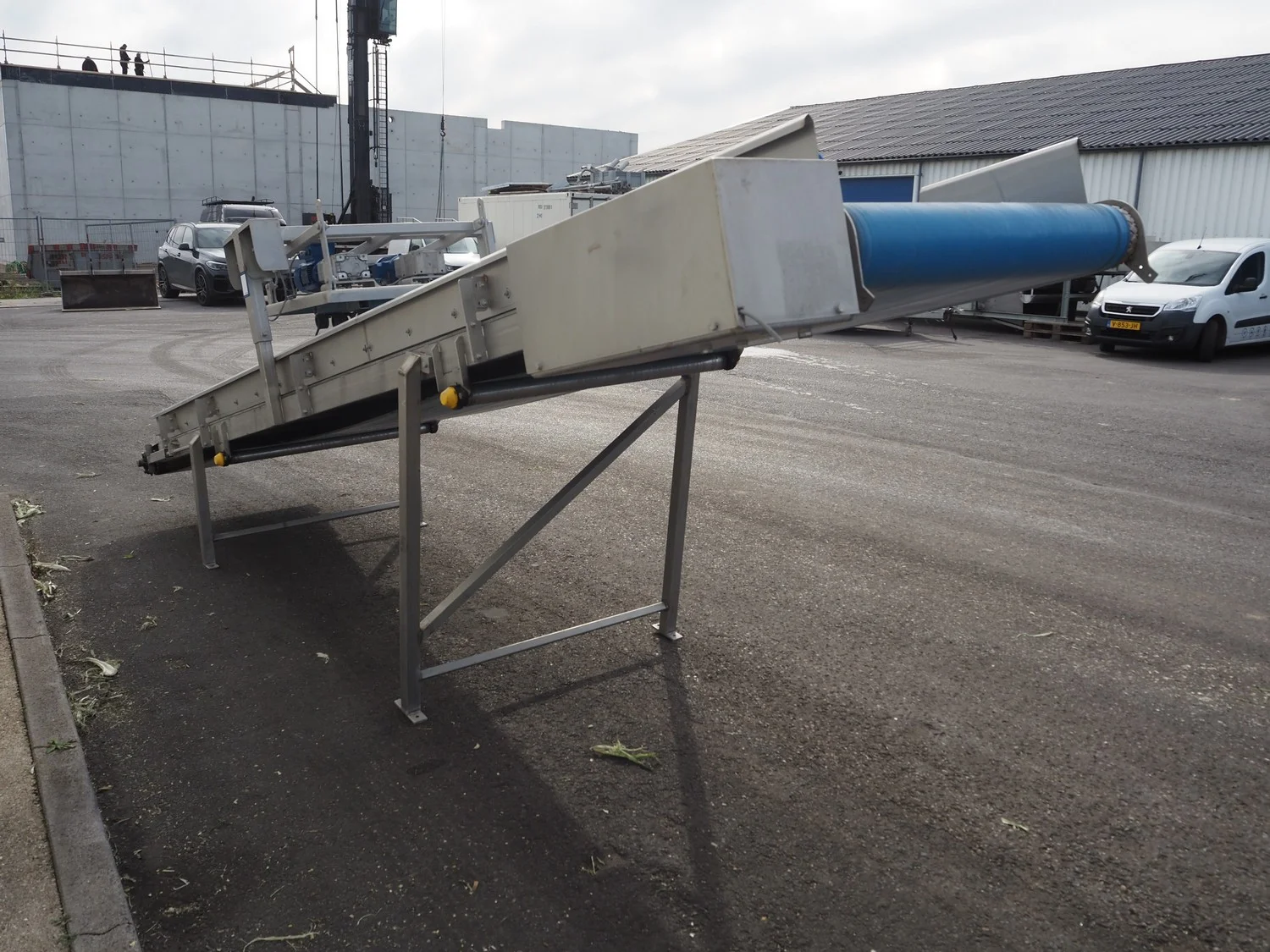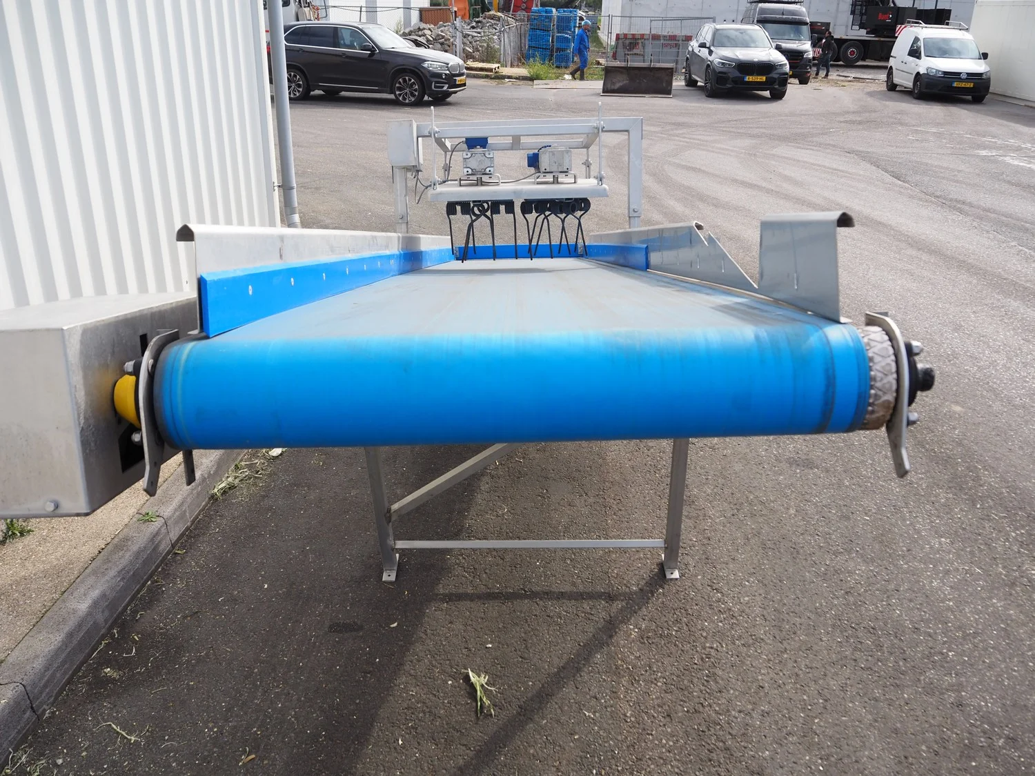 Emaco dividing elevating belt, plastic belt, belt width: 1000 mm, elevating height: 1680 mm, total dimensions: 5200 mm x 1500 mm x 1850 mm.