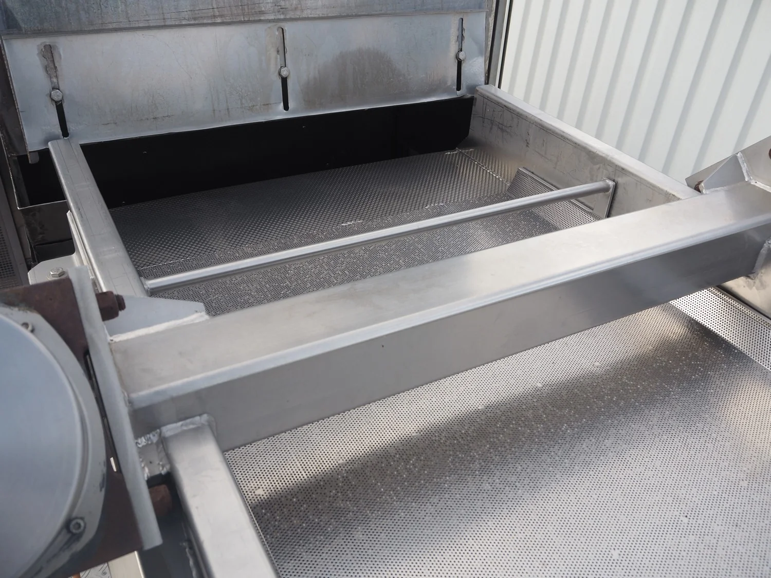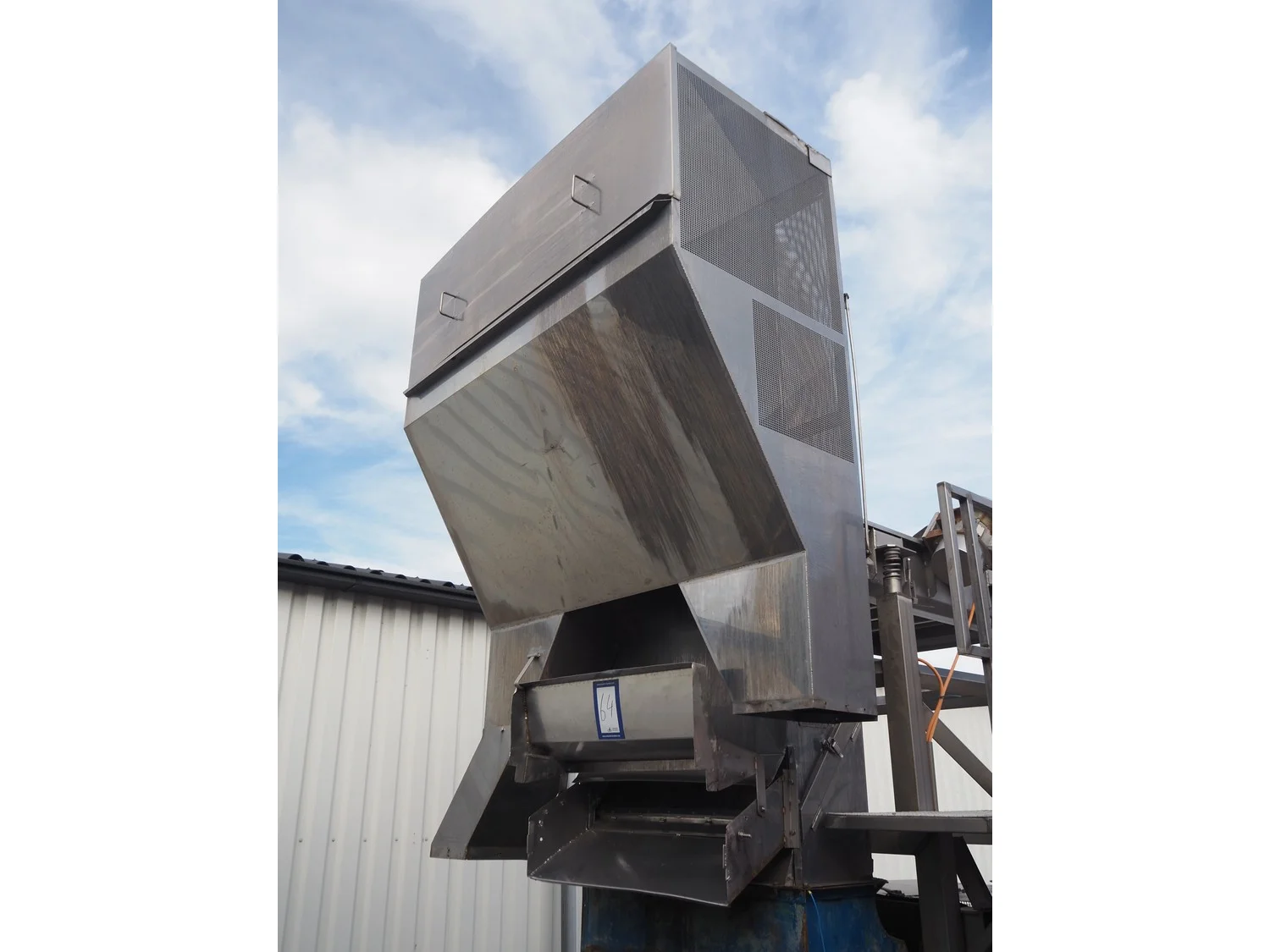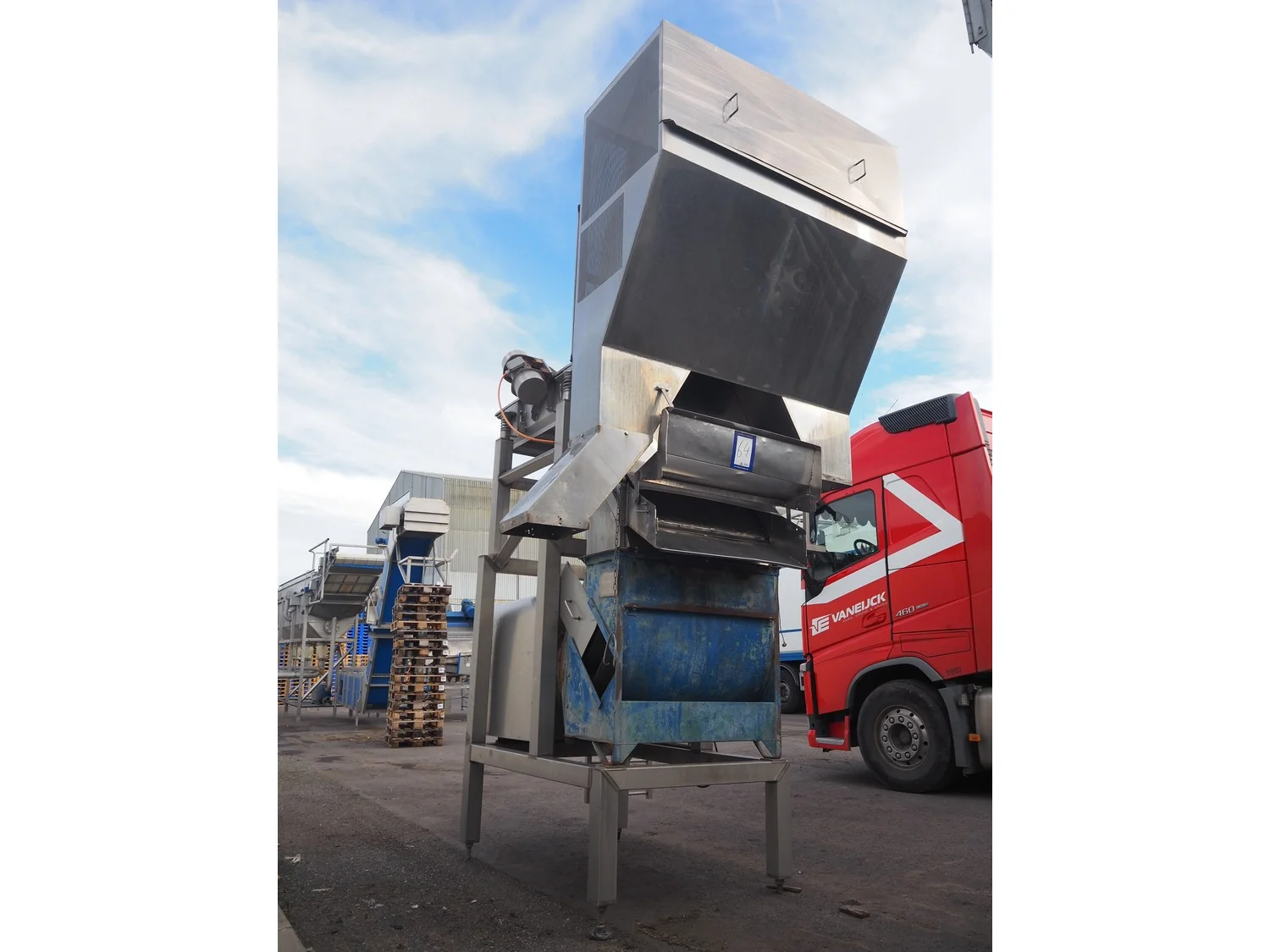 Femia dirt separator for leafy vegetables, gutter width: 600 mm, total dimensions: 2800 mm x 3300 mm x 4300 mm.