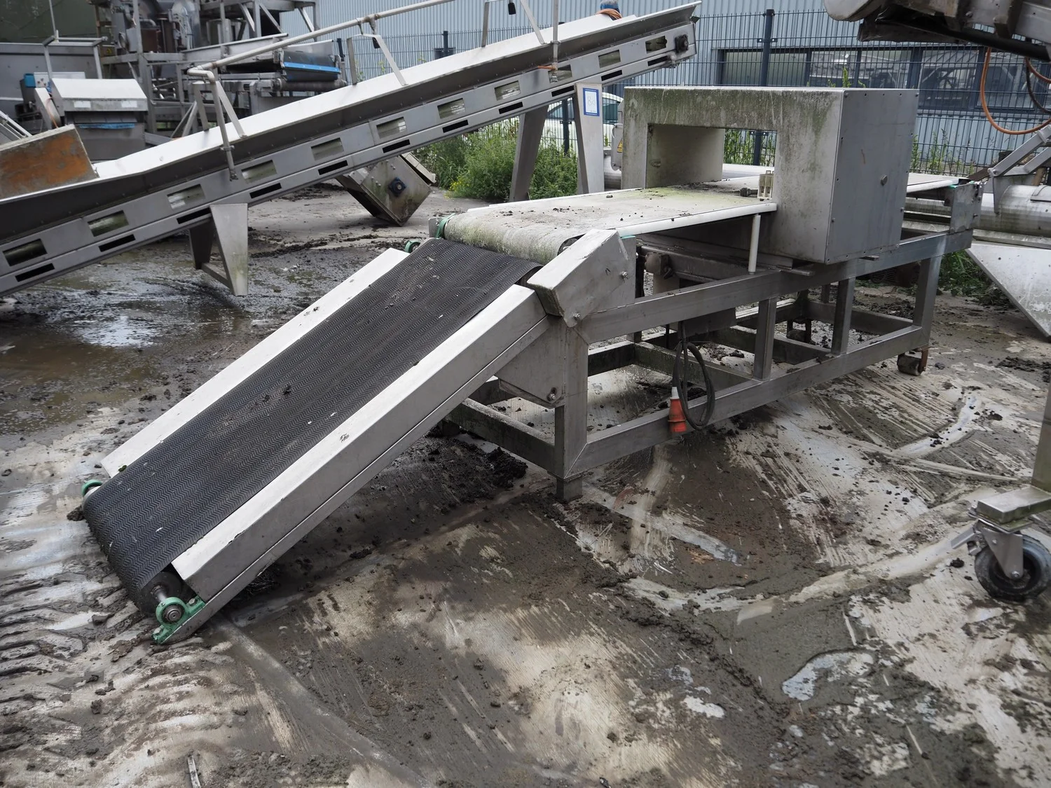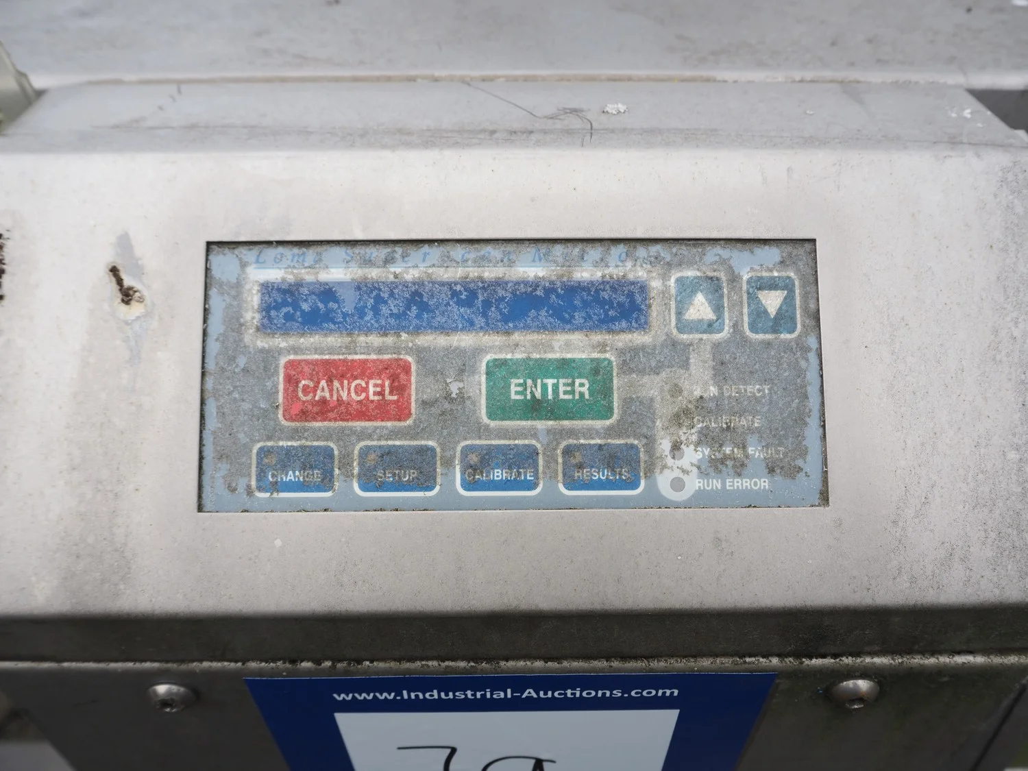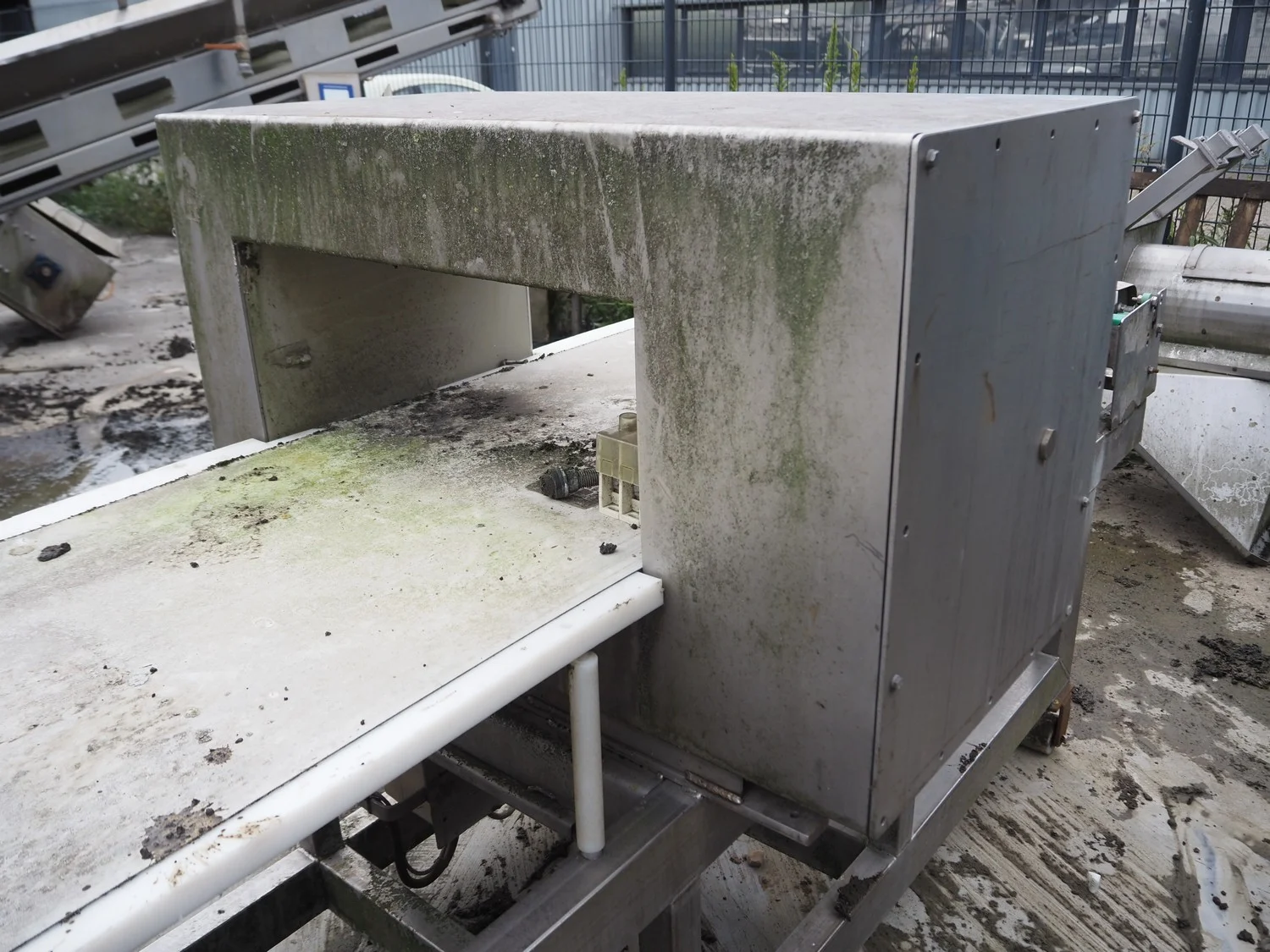 Loma Systems metal detector, clearance: 650 mm x 270 mm, plastic belt, belt width: 600 mm, total dimensions: 4200 mm x 1200 mm x 1300 mm. Technical condition unknown.