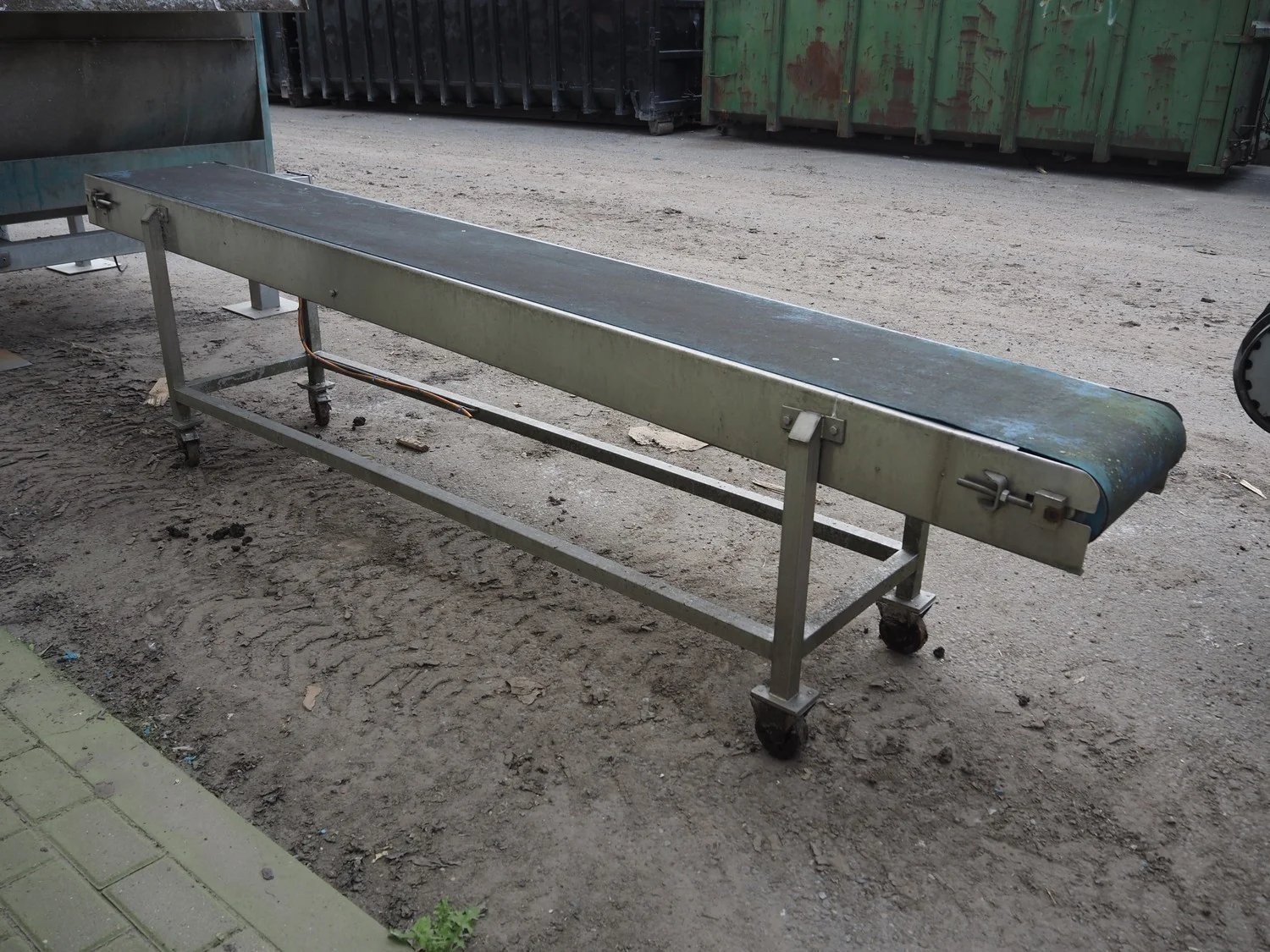 Mobile transport belt, plastic belt, belt width: 400 mm, total dimensions: 3150 mm x 650 mm x 900 mm.