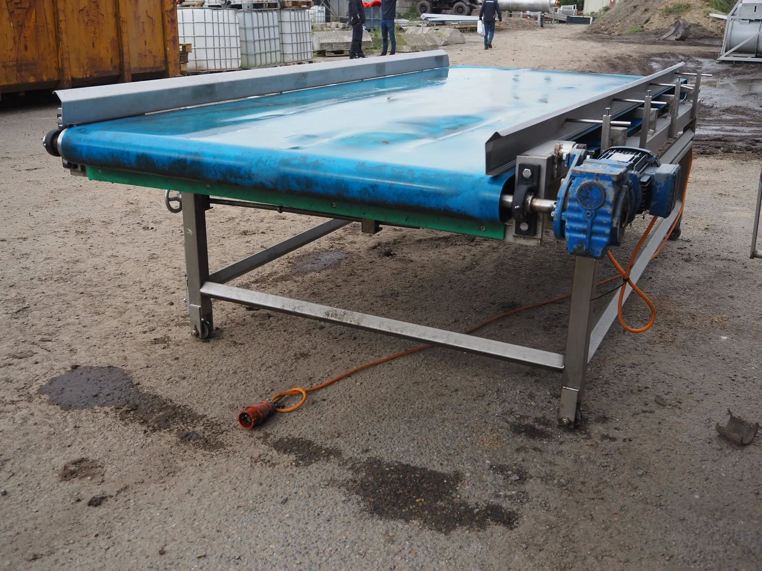 Mobile transport belt, plastic belt, belt width: 1320 mm, total dimensions: 3200 mm x 1700 mm x 1100 mm.