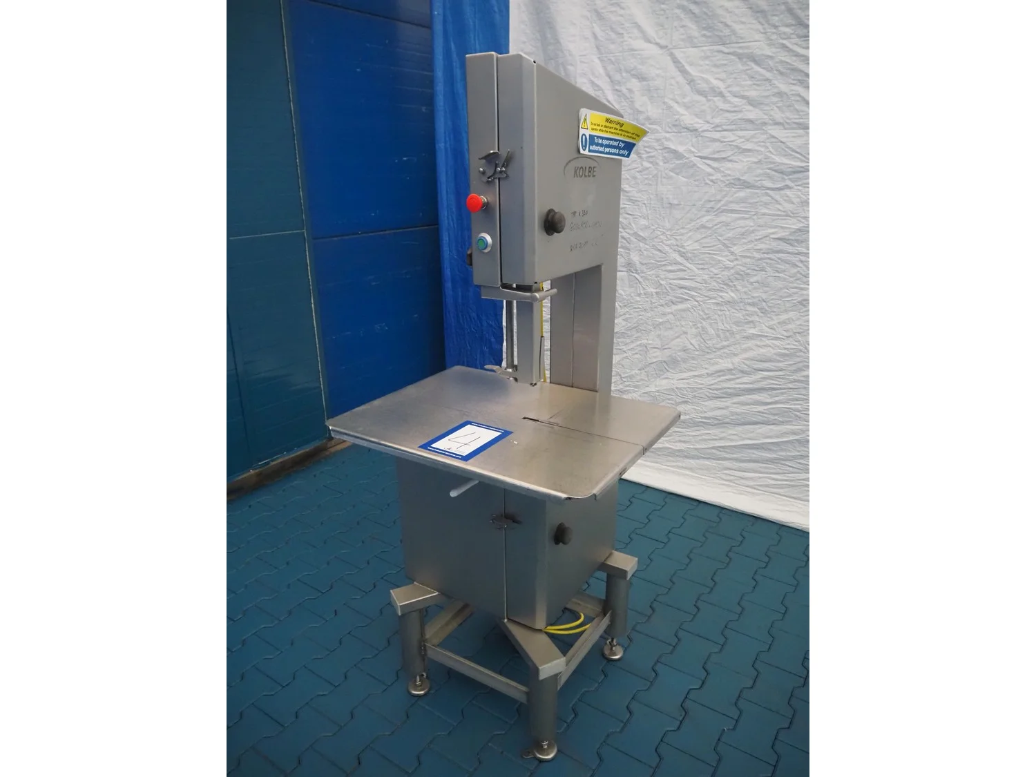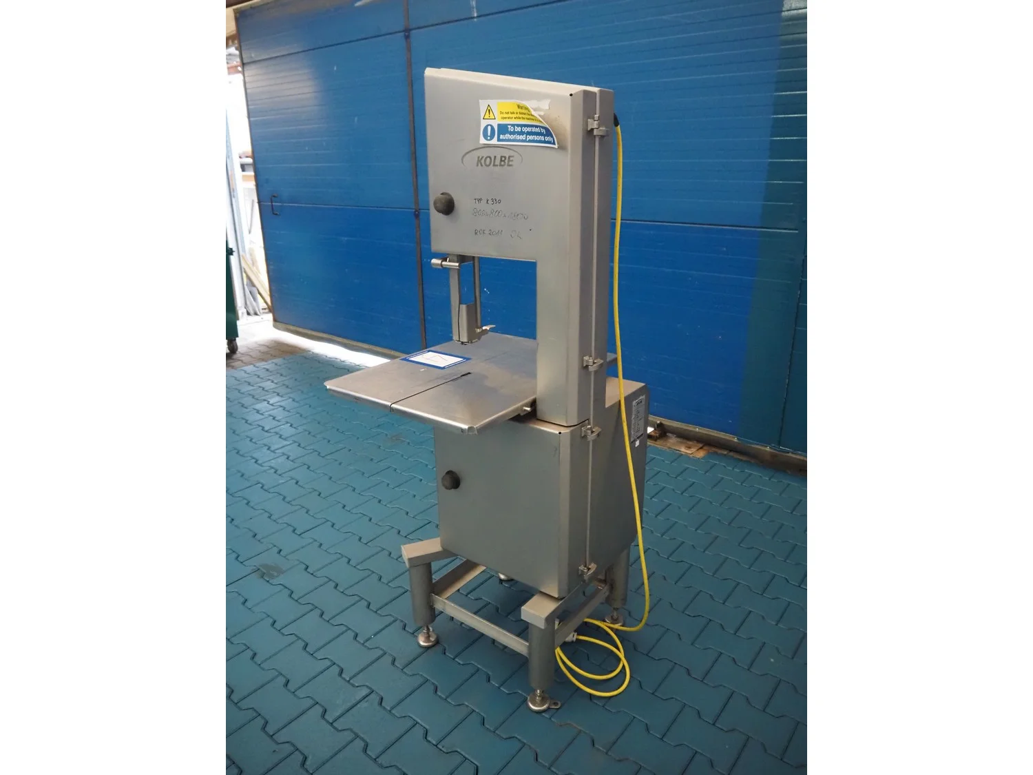 Kolbe mobile bandsaw, type: K 330, serial number: 98 0203, year of construction: 2011, 400 VAC, 3 Ph, 50 Hz, 3.4 A, 1.5 kW, weight: 150-155 kg, dimensions table: 760 mm x 580 mm, total dimensions: 760 mm x 720 mm x 1750 mm.