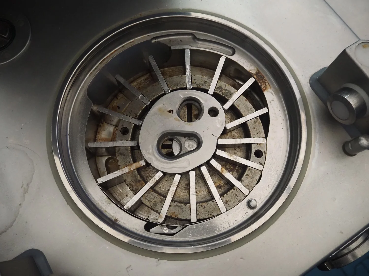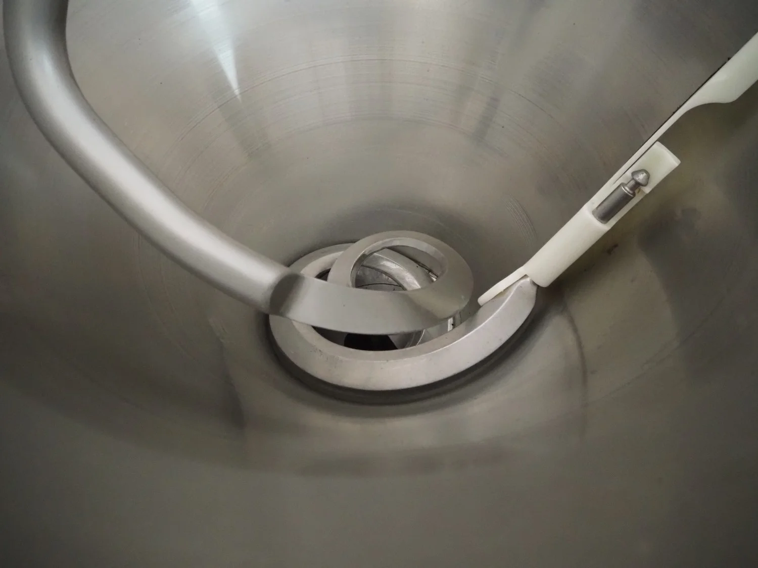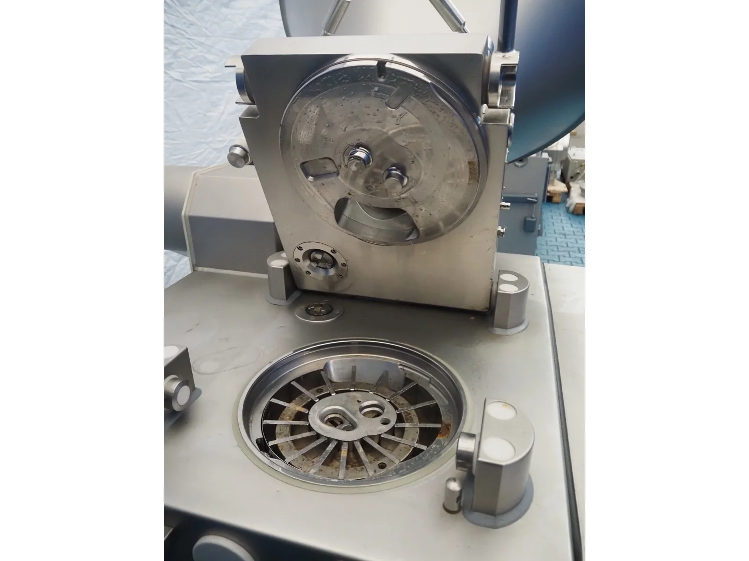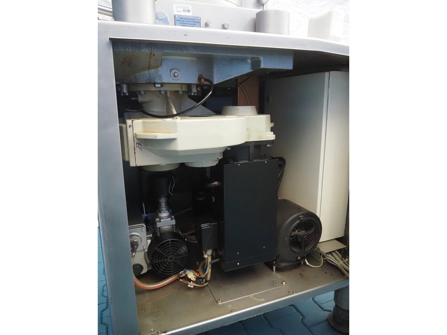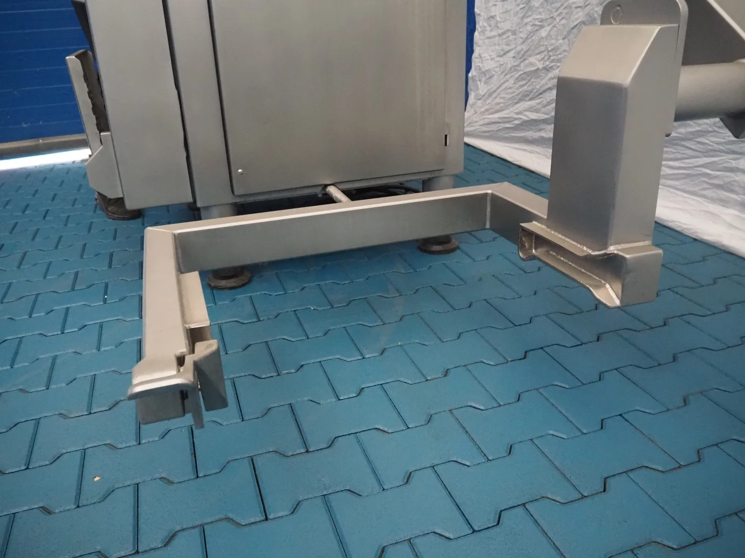 Vemag vacuum filling machine with lifter for 200 liter meat bins, model: DP10E, number: 1570058, year of construction: 2011, 400-460 V, 3 Ph, 50/60 Hz, 18 A, 12 kW, dimensions: 2050 mm x 1300 mm x 2100 mm.