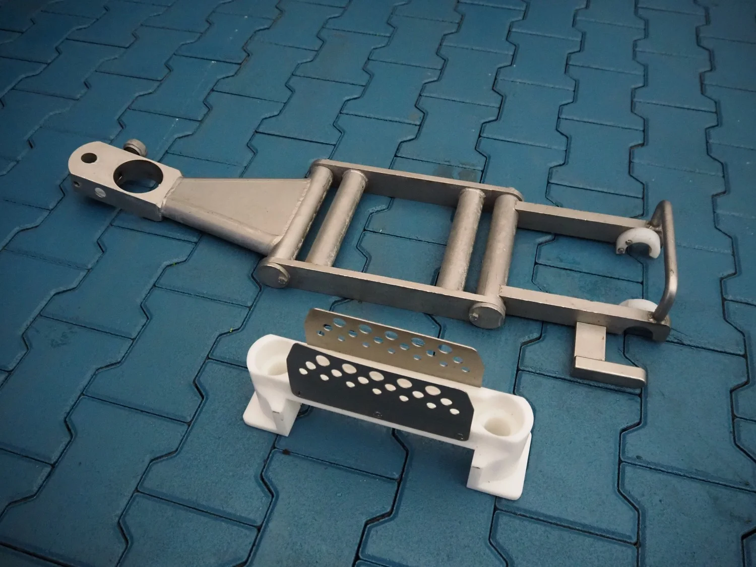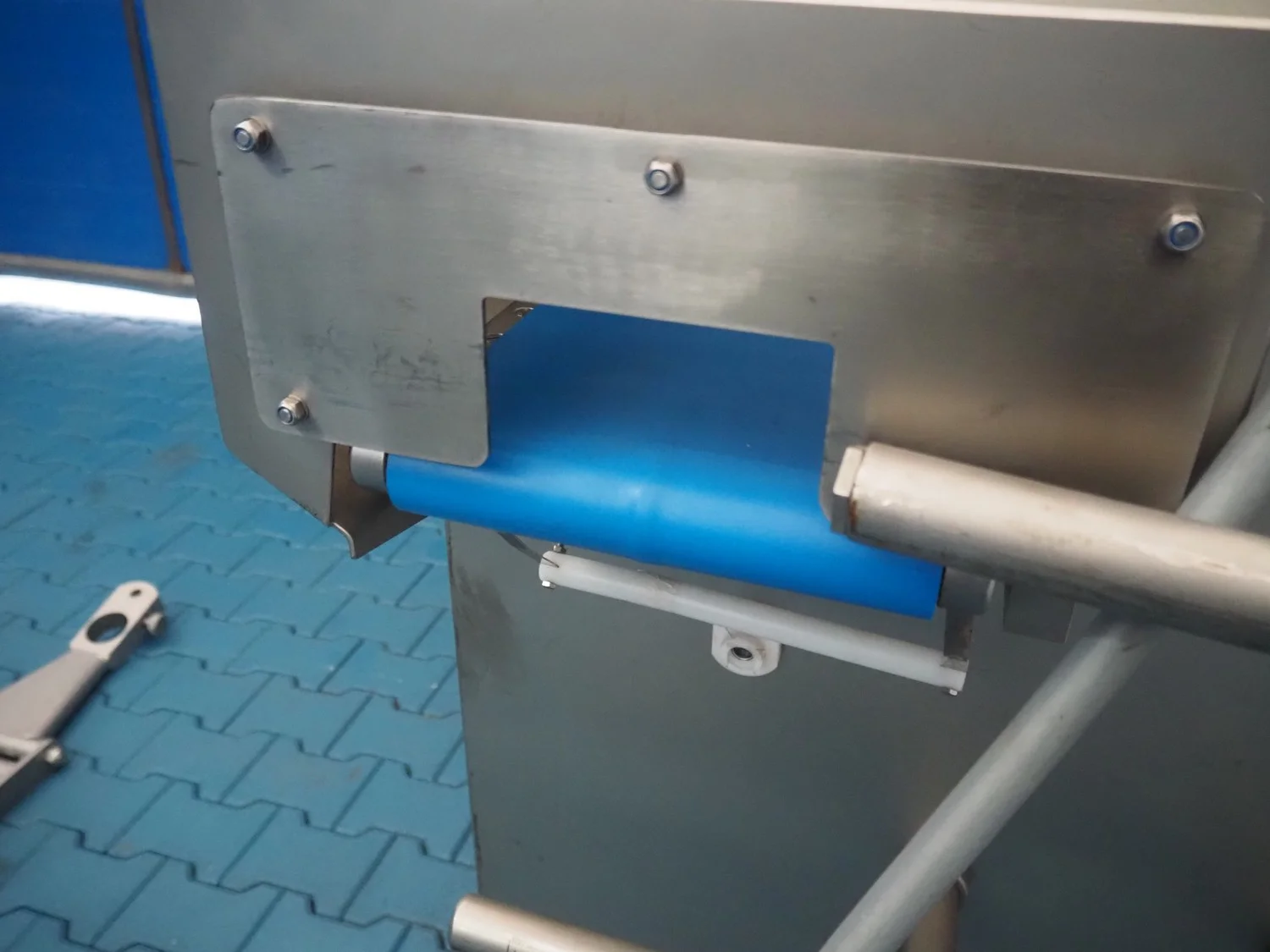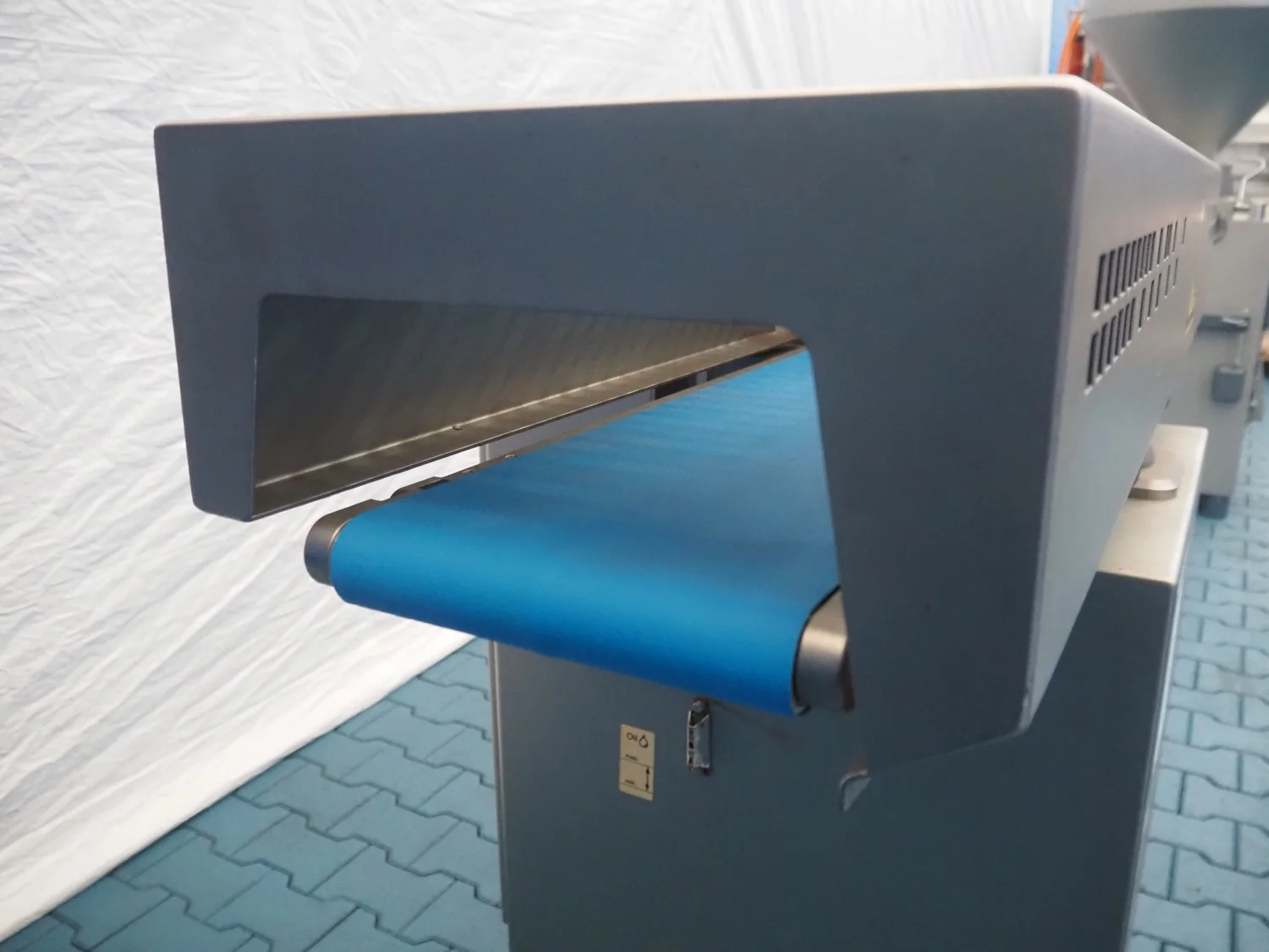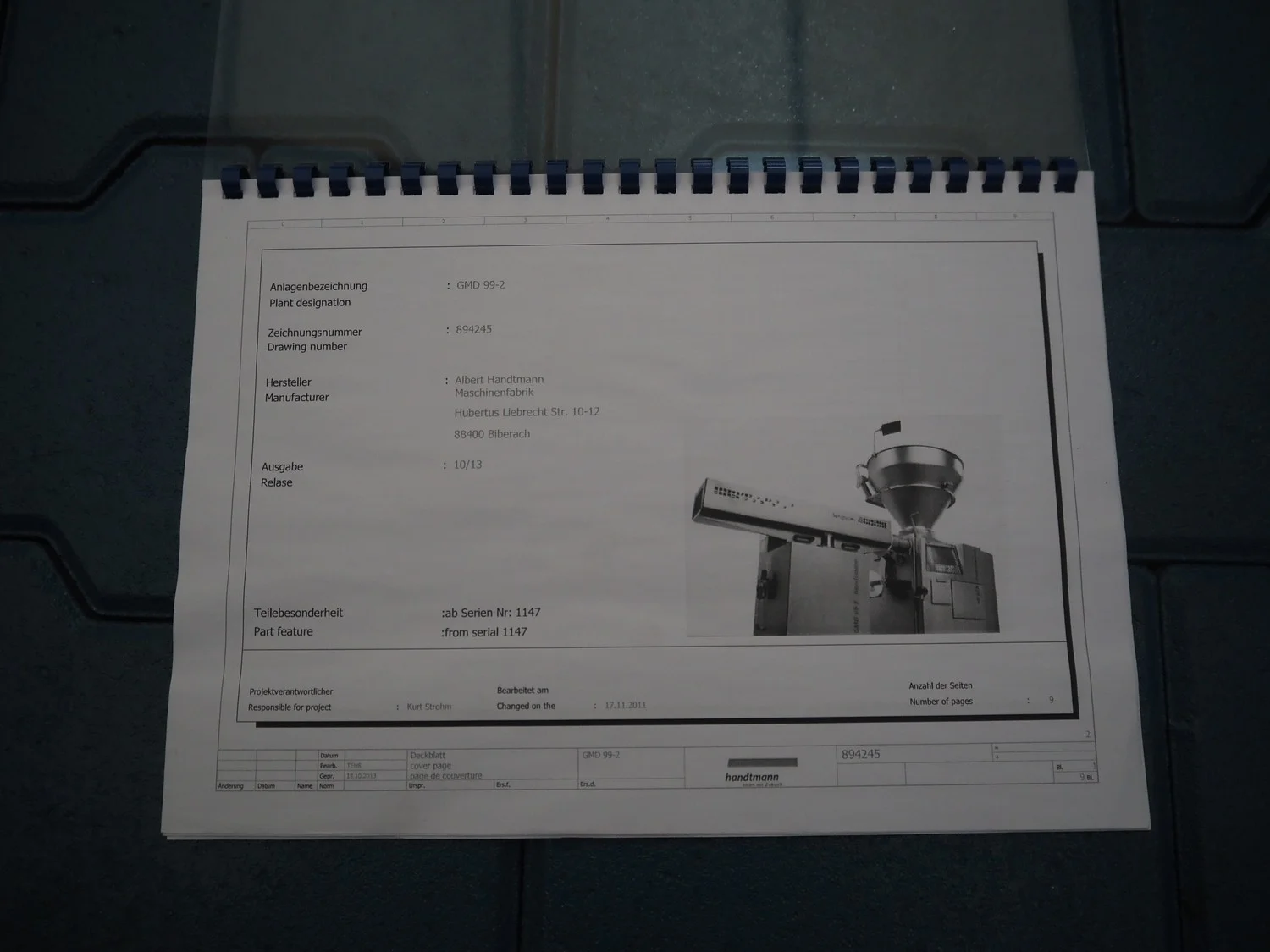 Handtmann mobile minced meat portioner, type: 99-2, number: 33909, year of construction: 2014, working width: 240 mm, plastic belt, belt width: 250 mm, total dimensions: 1380 mm x 700 mm x 1240 mm.