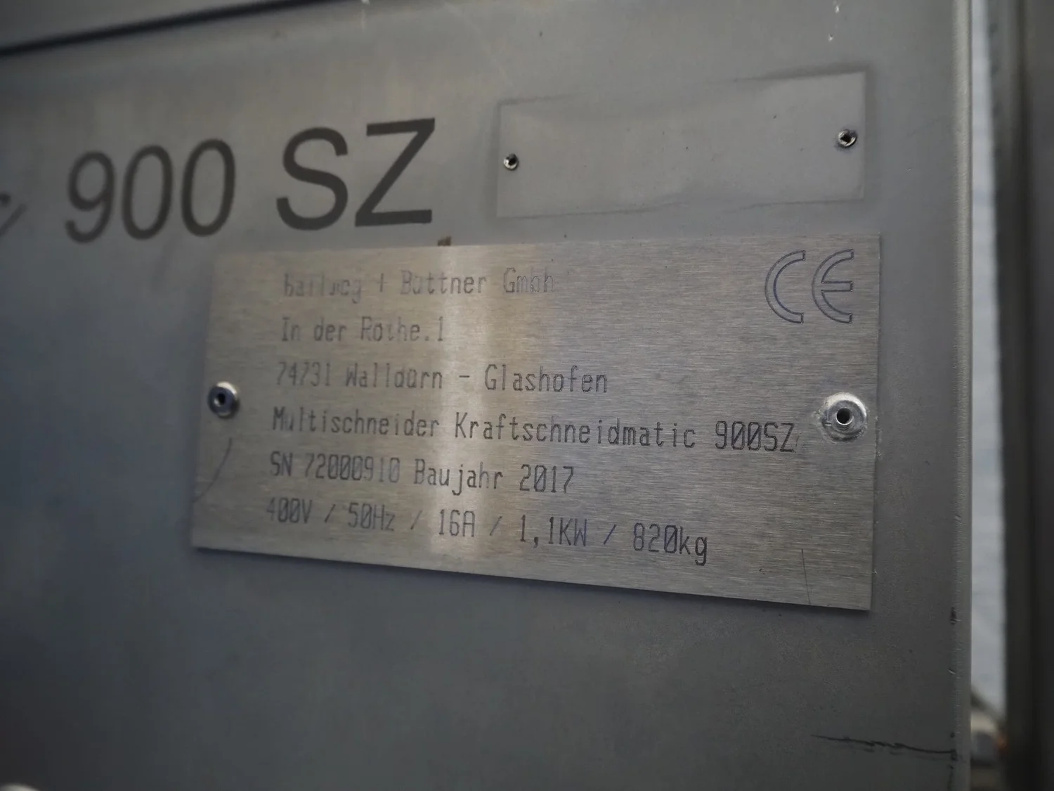 Ballweg + Böttner GmbH mobile multi slicer, type: 900SZ, serial number: 72000910, year of construction: 2017, 400 V, 50 Hz, 16 A, 1.1 kW, weight: 820 kg, working width: 850 mm, total dimensions: 1050 mm x 1350 mm x 2050 mm.