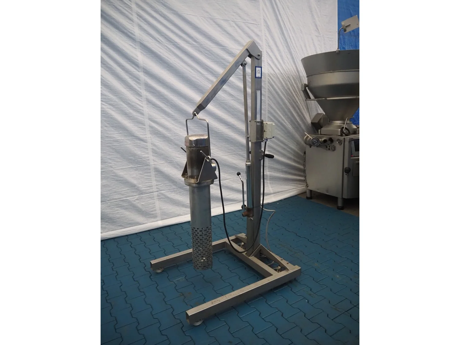 Silverson Ltd mobile meat bin mixer, model: E, number: S6, safe working load: 95 kg, dimensions: dimensions: 1100 mm x 900 mm x 2100 mm.