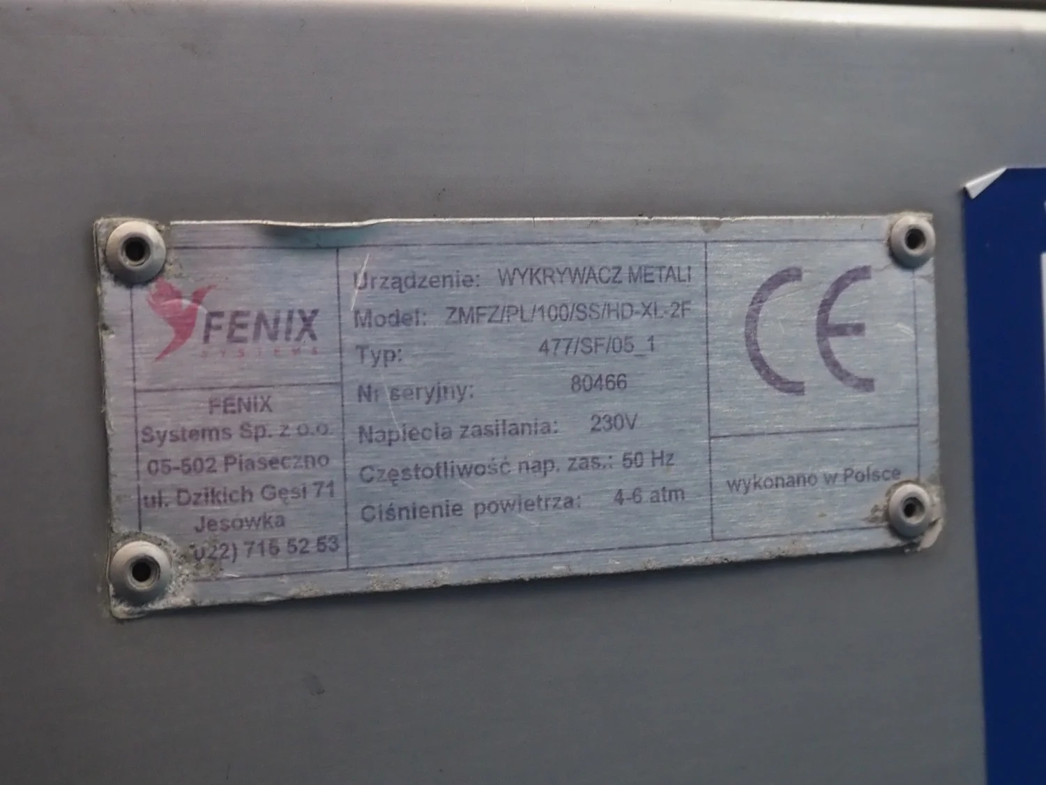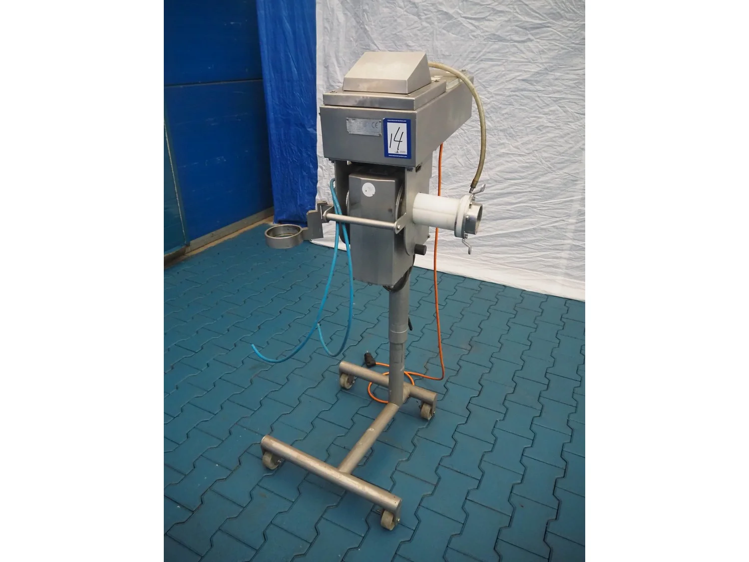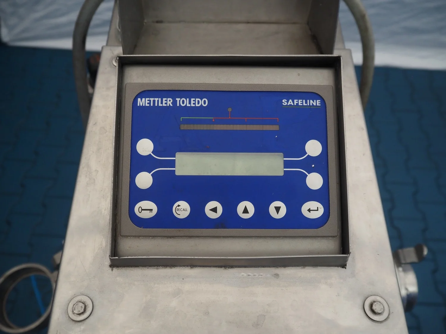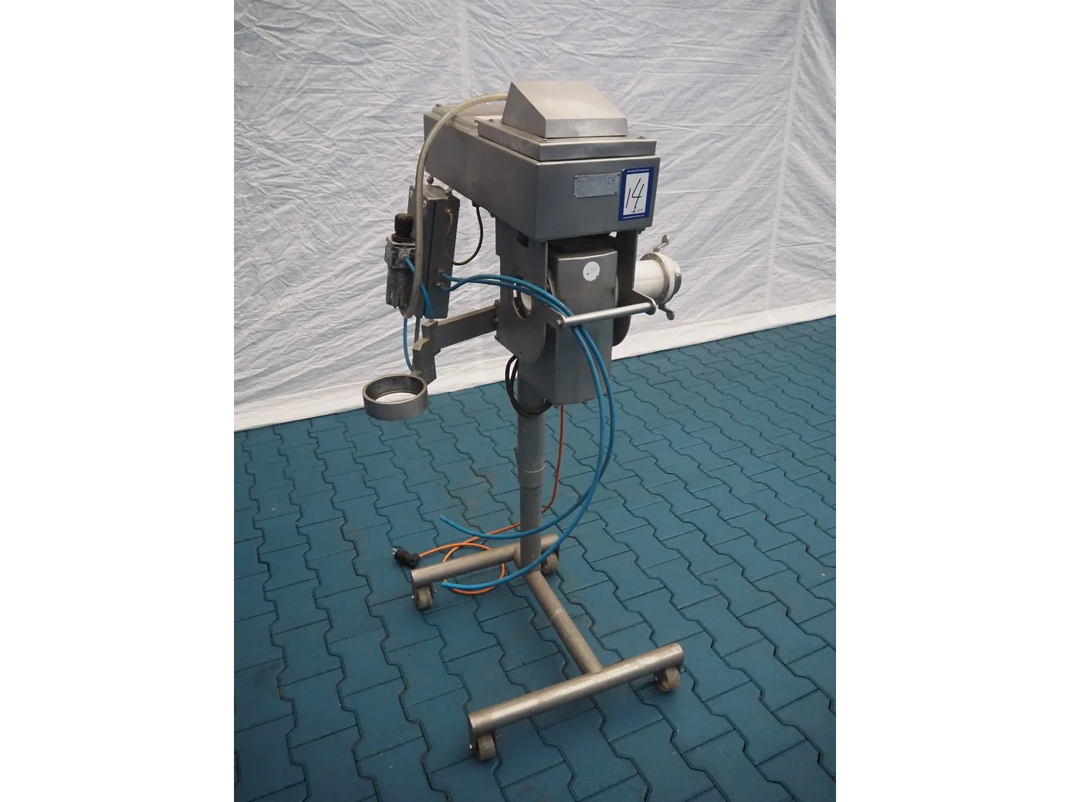 Safeline mobile pipeline metal detector, type: 477/SF/05_1, serial number: 80466, 230 V, 50 Hz, 4-6 A, clearance: Ø 55 mm, total dimensions: 700 mm x 600 mm x 1360 mm.