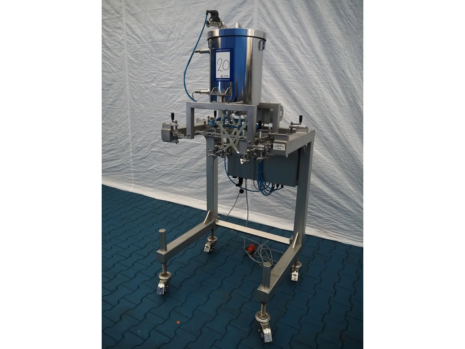 Vemag mobile depositor, model: SK4675, number: SK4675000000, year of construction: 2009, 400-460 V, 3 Ph, 50/60 Hz, 1.5 A, 0.5 kW, 6 heads, inside dimensions vessel: ø 350 mm x 400 mm, total dimensions: 800 mm x 950 mm x 1950 mm.