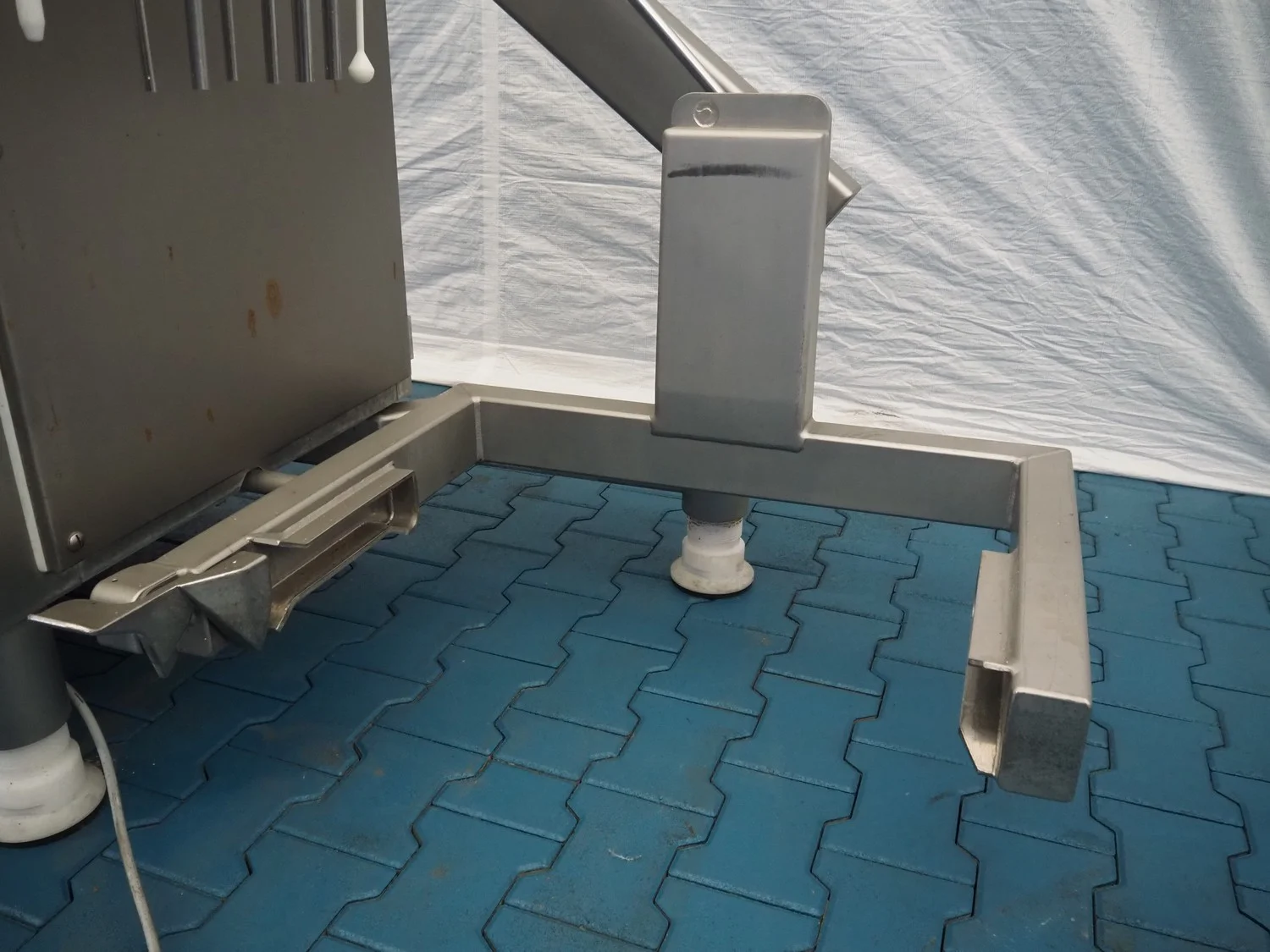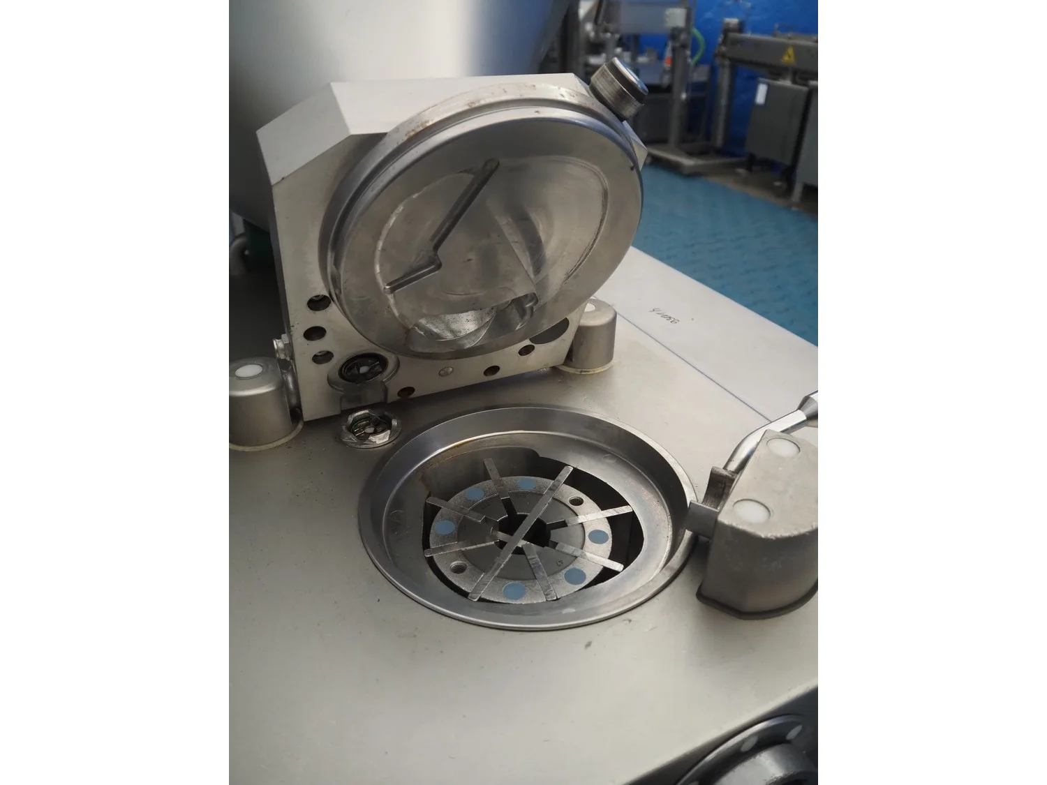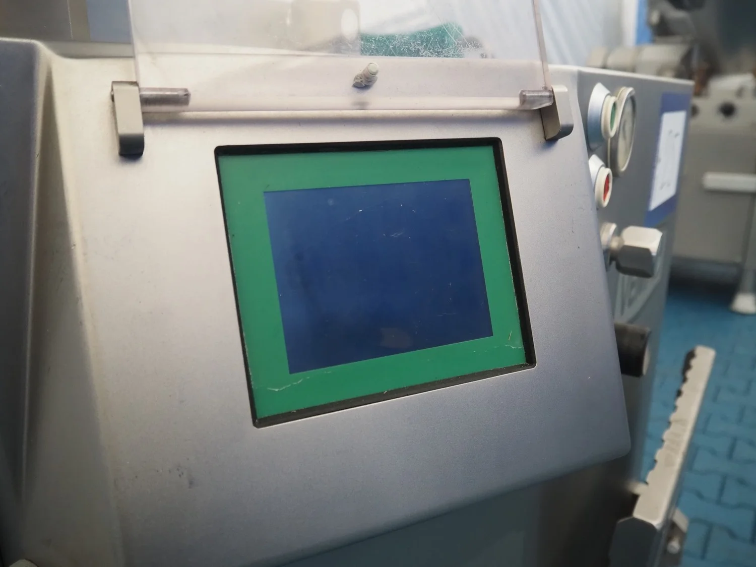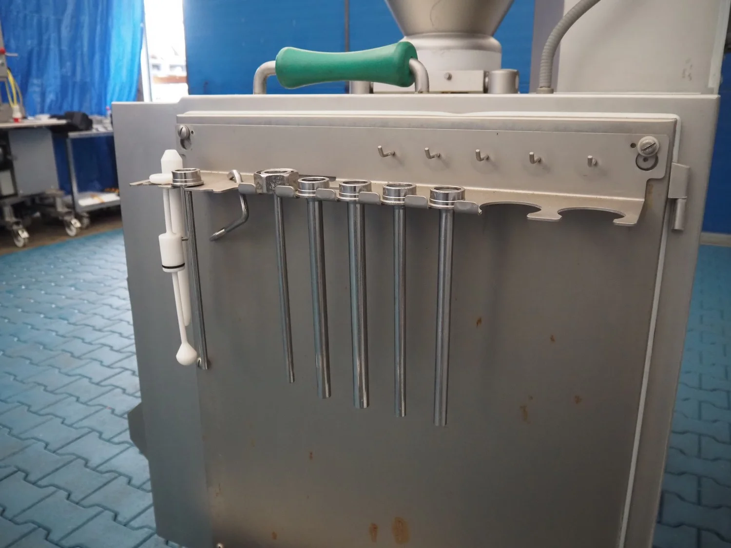 Vemag vacuum filling machine with lifter for 200 liter meat bins, model: DP 5, number: 151 0060, year of construction: 2015, 400-460 V, 3 Ph, 50/60 Hz, 10 A, 6 kW, dimensions: 1840 mm x 1280 mm x 1990 mm. Including filling pipes.