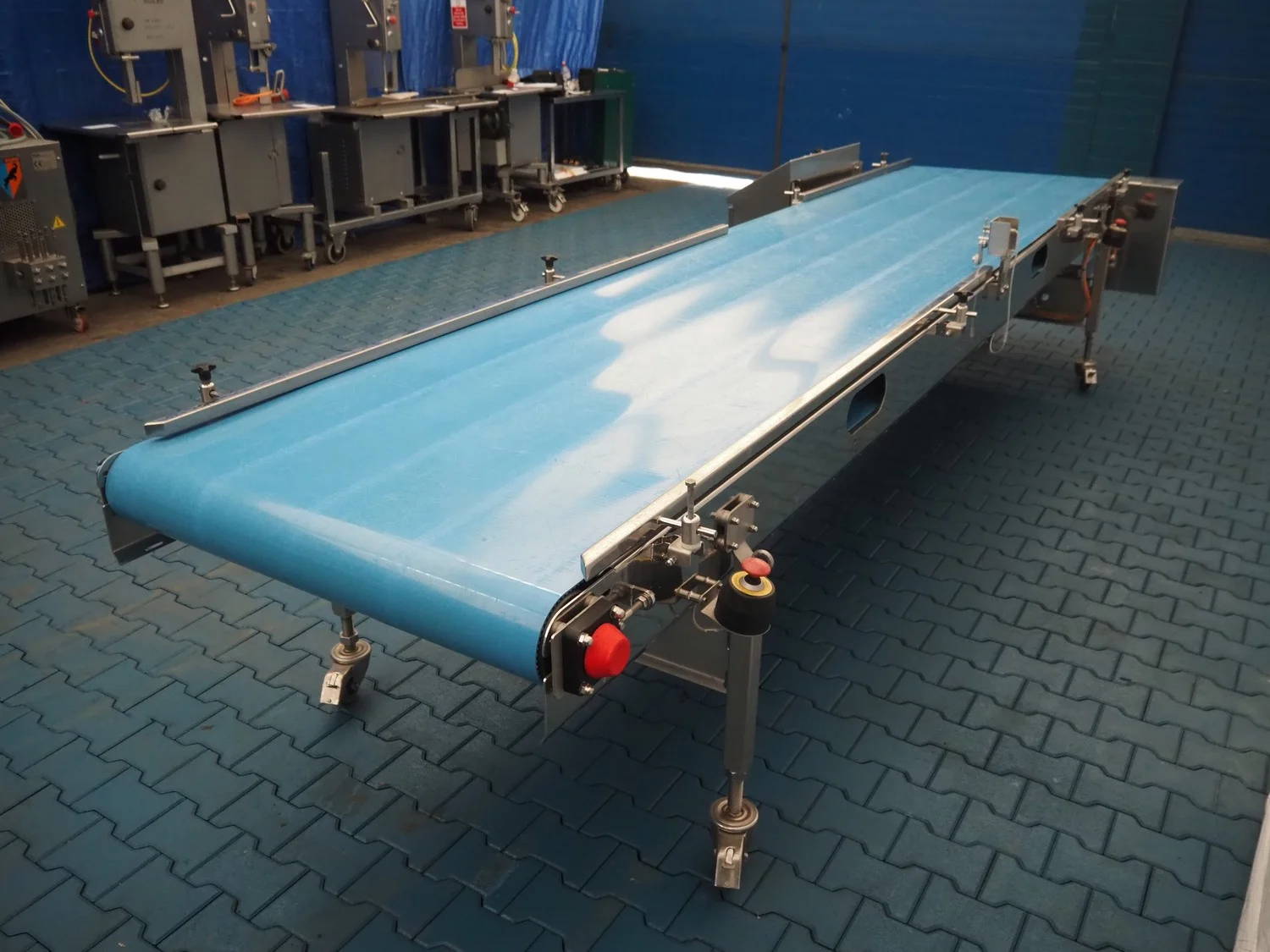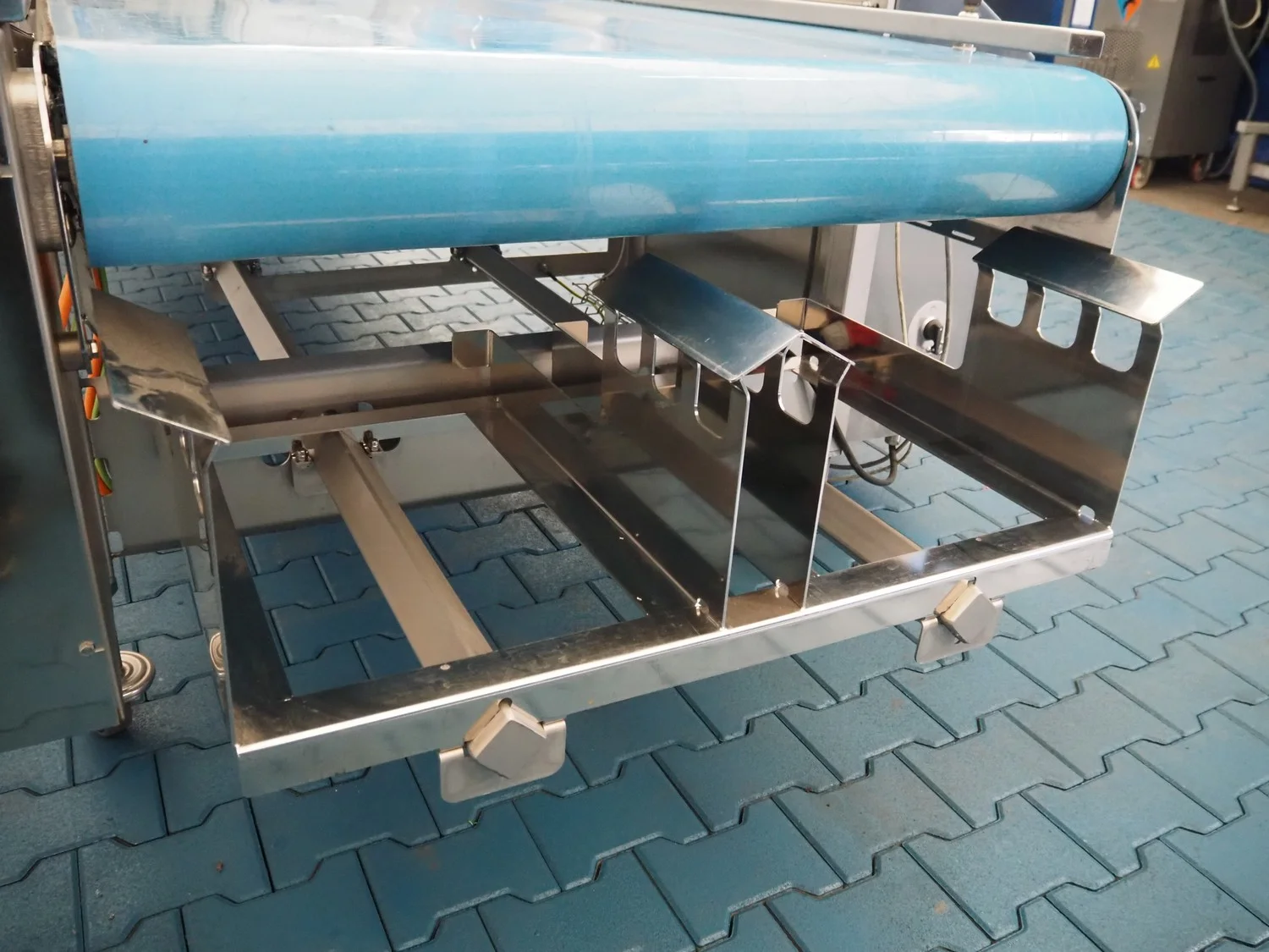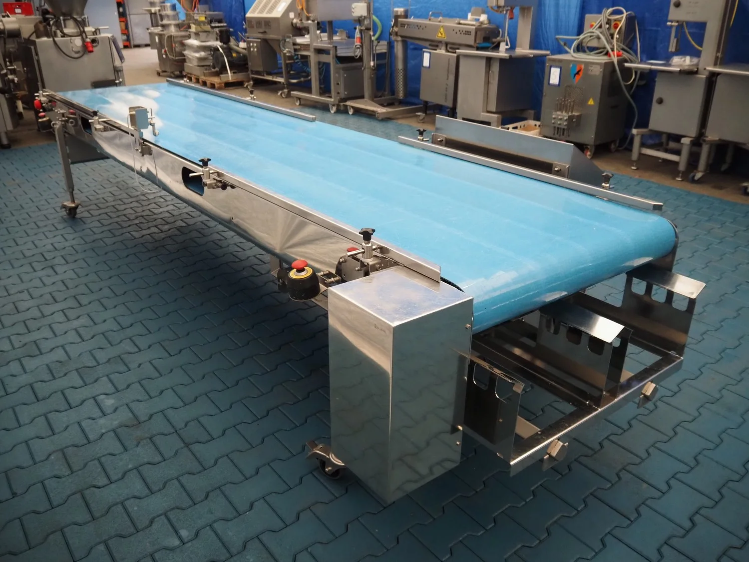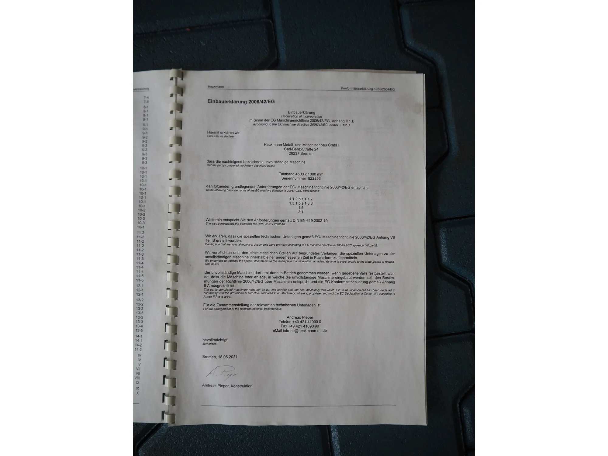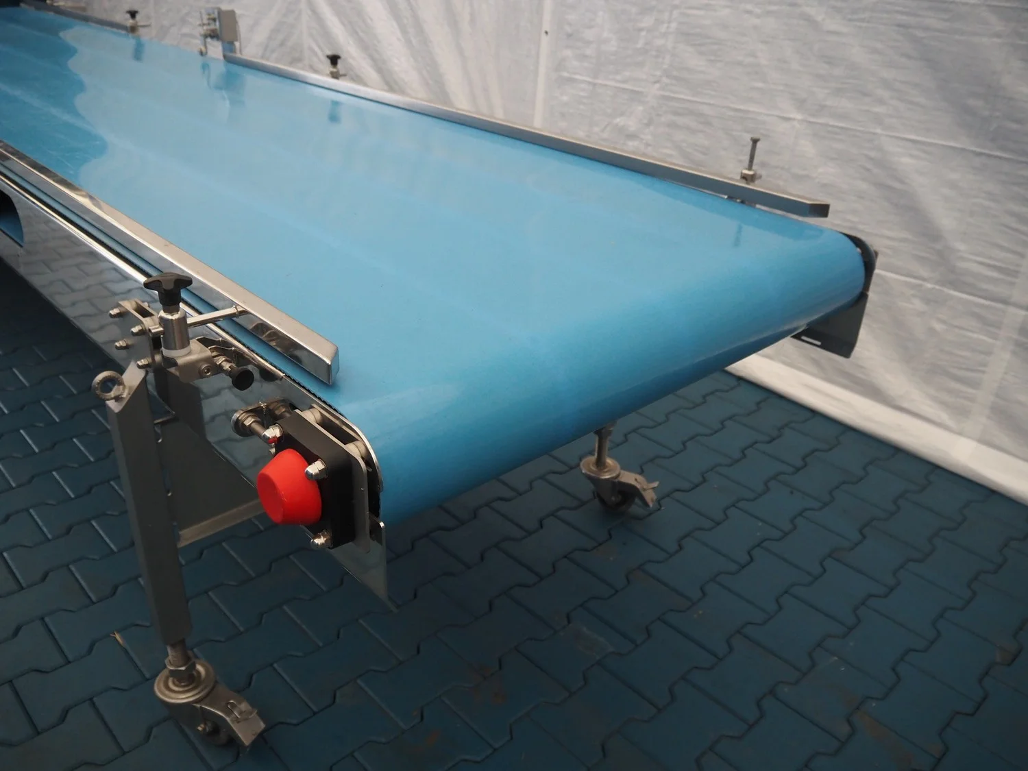 Vemag mobile indexing conveyor, model: 712, number: 7120301, year of construction: 2021, 400-460 V, 3 Ph, 50/60 Hz, 2.7 A, 1.9 kW, weight: 650 kg, plastic belt, belt width: 1000 mm, total dimensions: 4850 mm x 1750 mm x 970 mm.