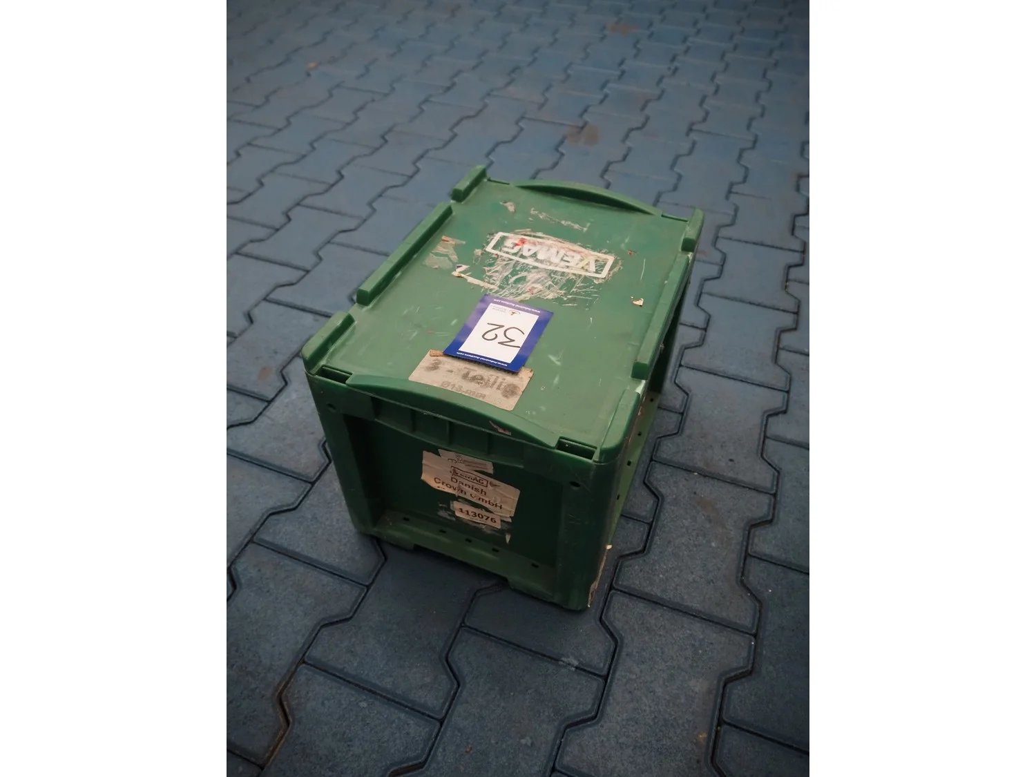 Crate with plates for Vemag grinding head, diameter plates: 130 mm, diameter perforations: 7 mm and 2 mm.