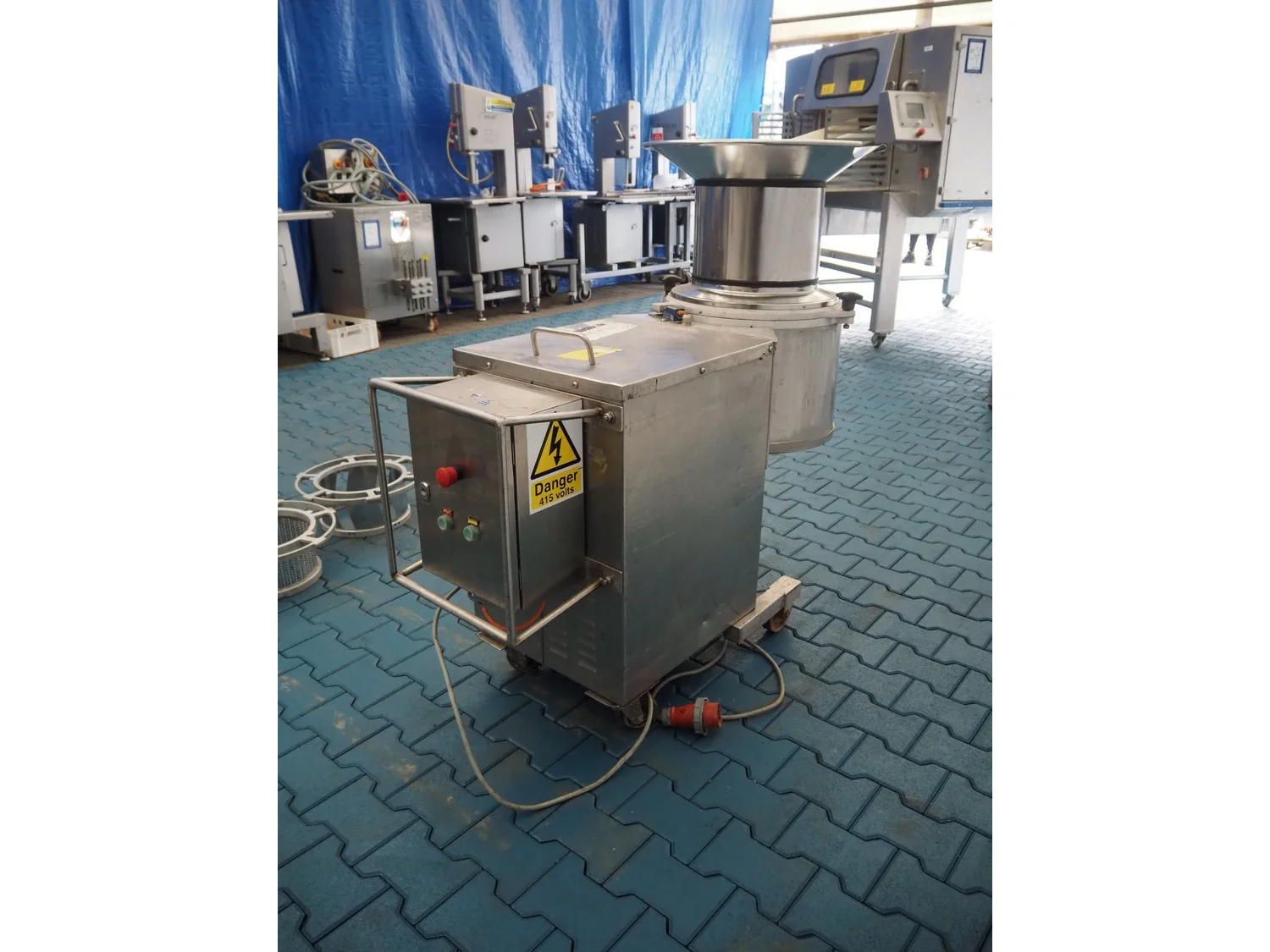 Solia mobile vegetable slicer, type: G450, number: 459504, year of construction: 1995, output: Ø 340 mm, dimensions: 1150 mm x 700 mm x 1320 mm. Including extra knives.