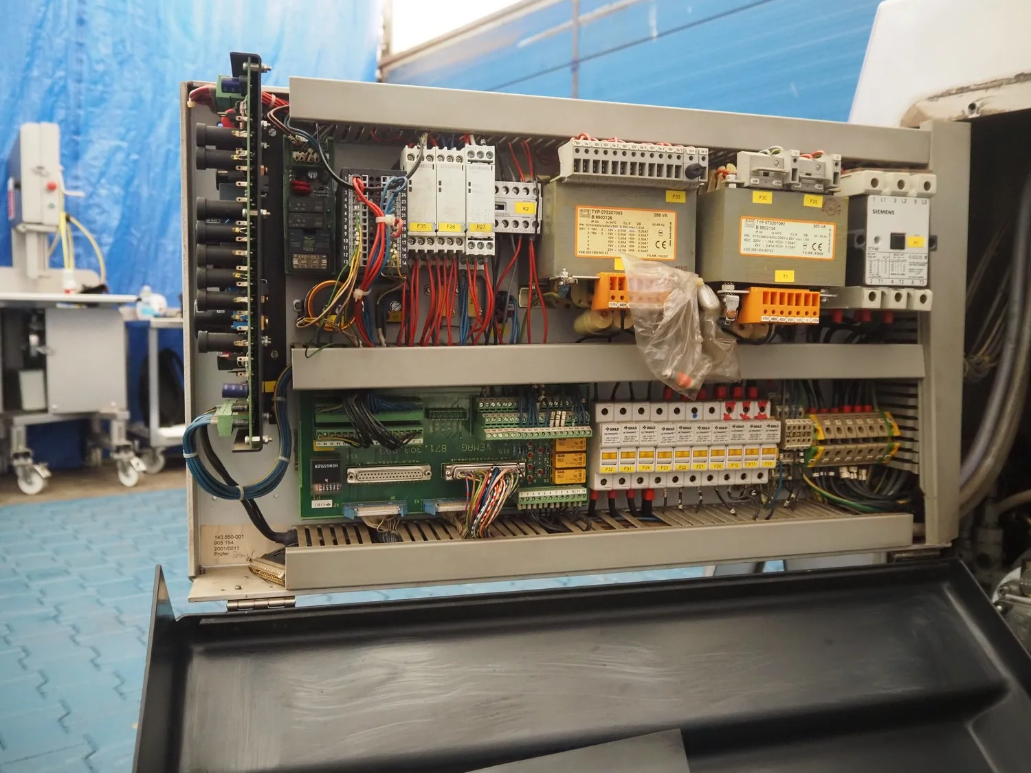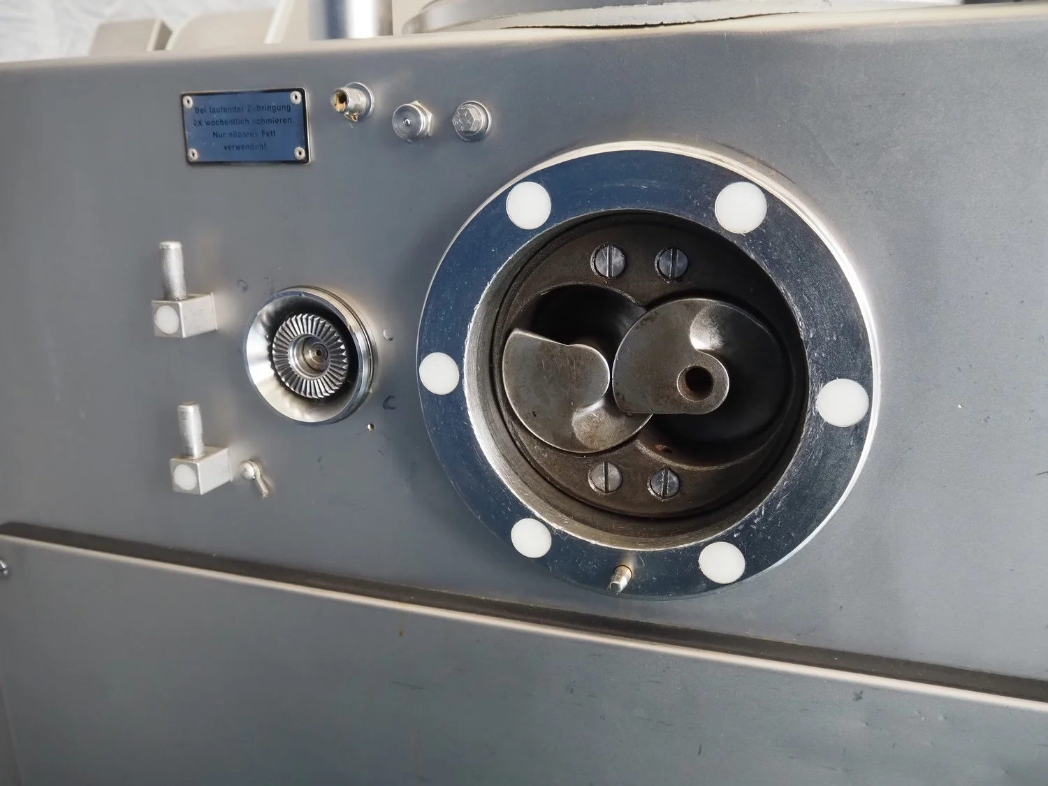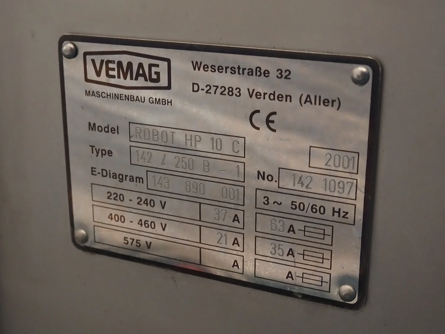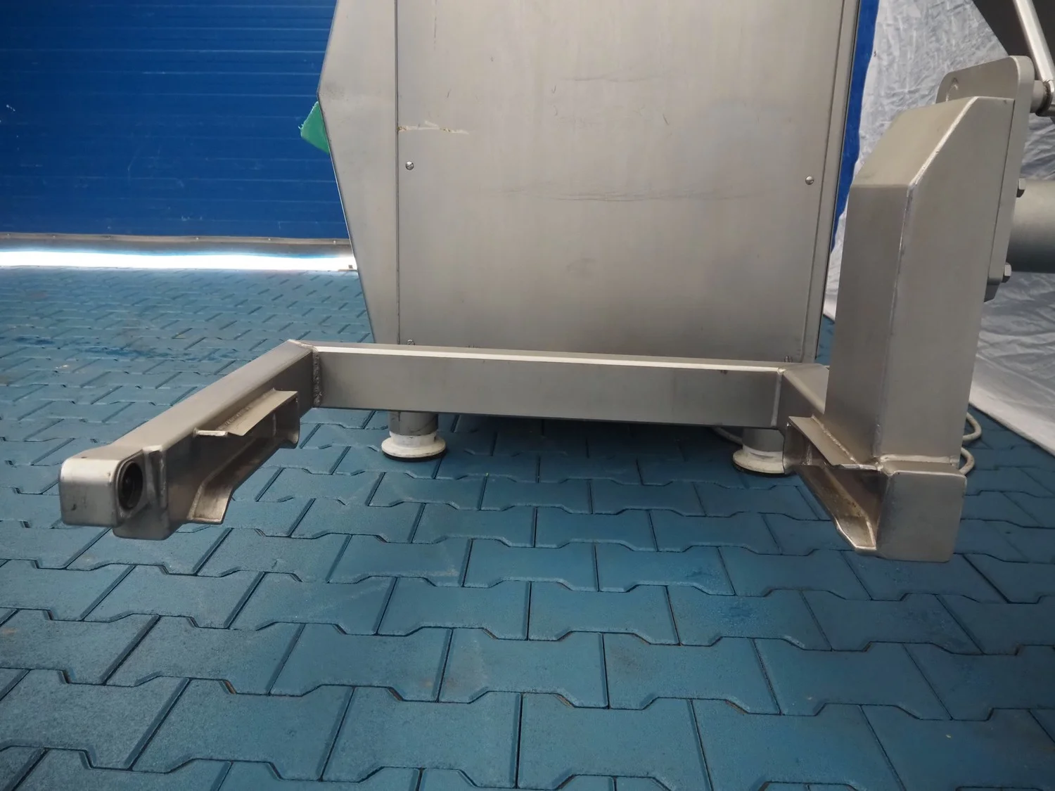 Vemag vacuum filling machine with lifter for 200 liter meat bins, model: ROBOT HP 10 C, type: 142/250 B-1, number: 142 1097, year of construction: 2001, 400-460 V, 3 Ph, 50/60 Hz, 21/35 A, dimensions: 1940 mm x 1330 mm x 1960 mm.