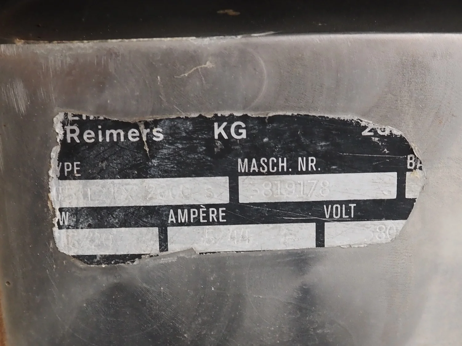 Kilia bowl cutter, type: EX2000S, serial number: 3819178, 380 V, 35/44 A, 16/20 Watt, steel bowl and s/s knives, volume: 65 liter, dimensions: 1300 mm x 1100 mm x 1200 mm.