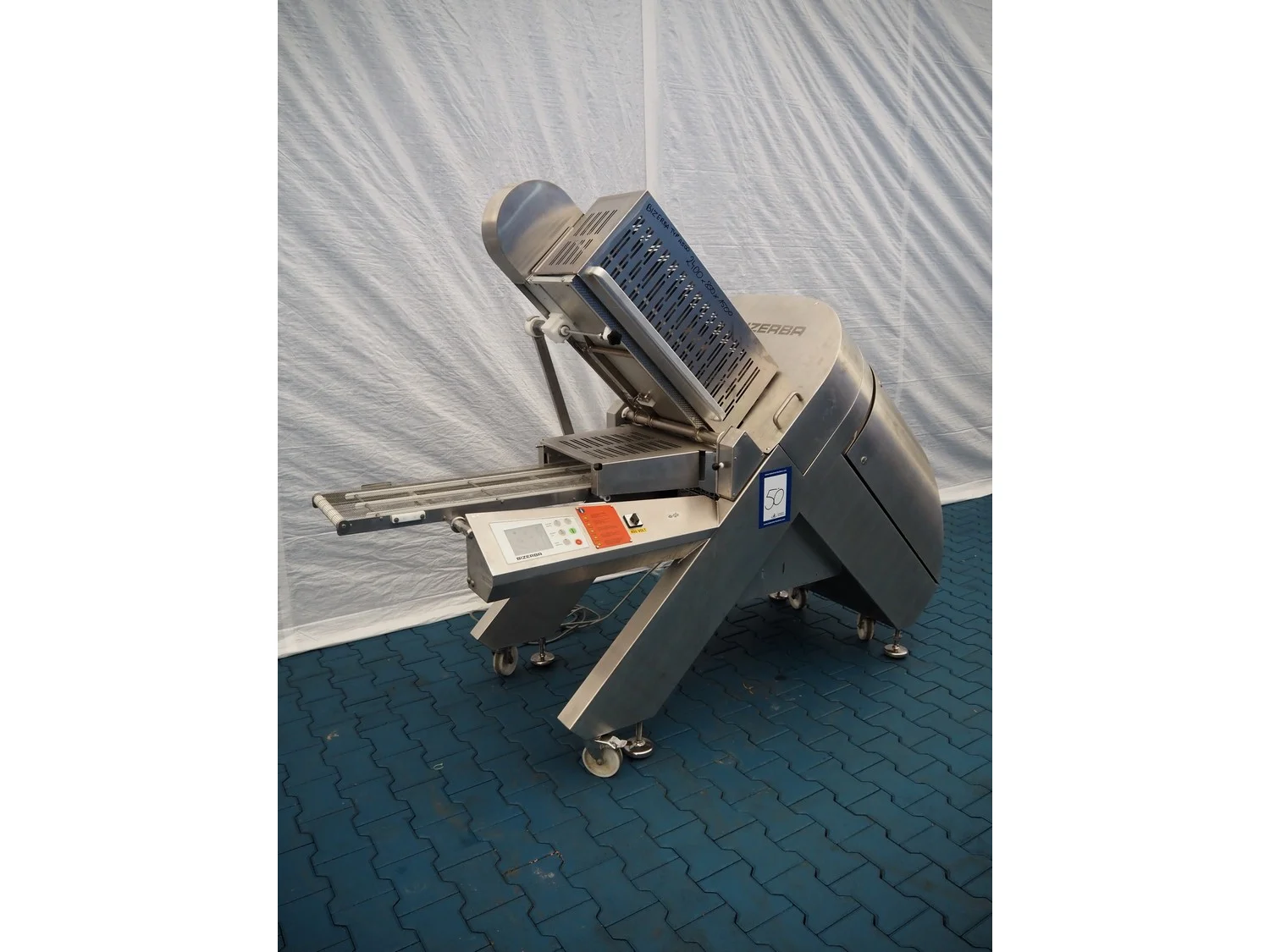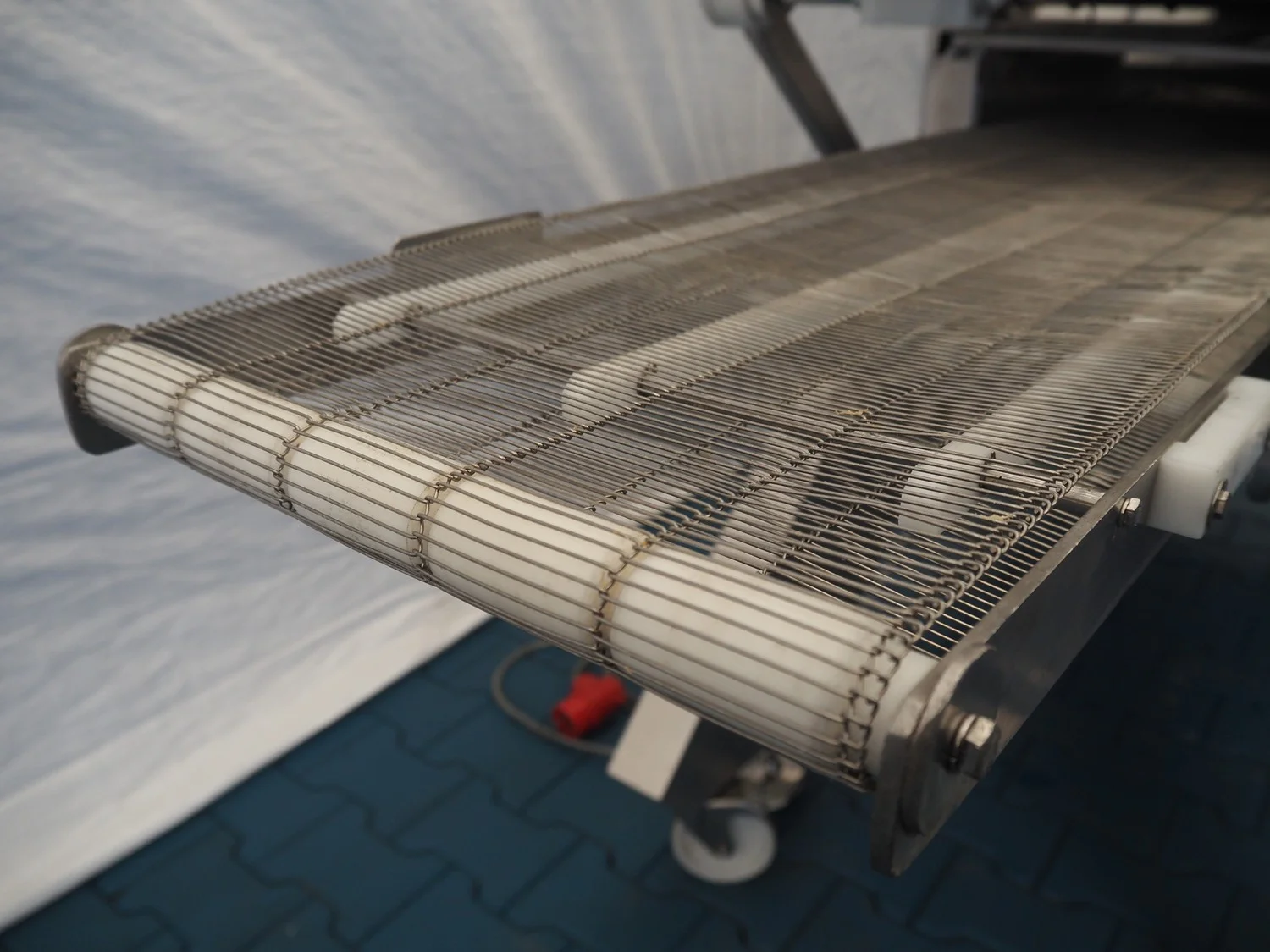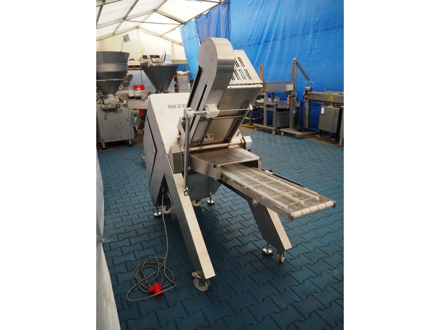 Bizerba mobile slicer, s/s mesh belt, belt width: 300 mm, total dimensions: 2370 mm x 890 mm x 1830 mm.
