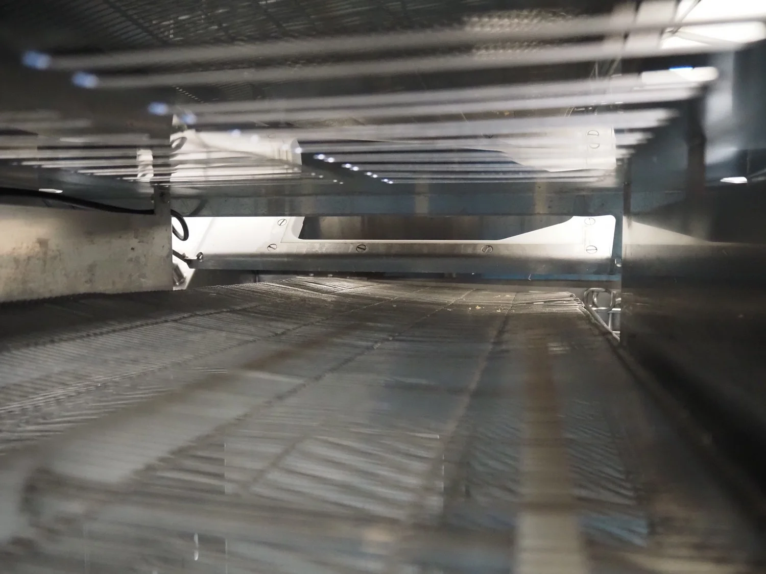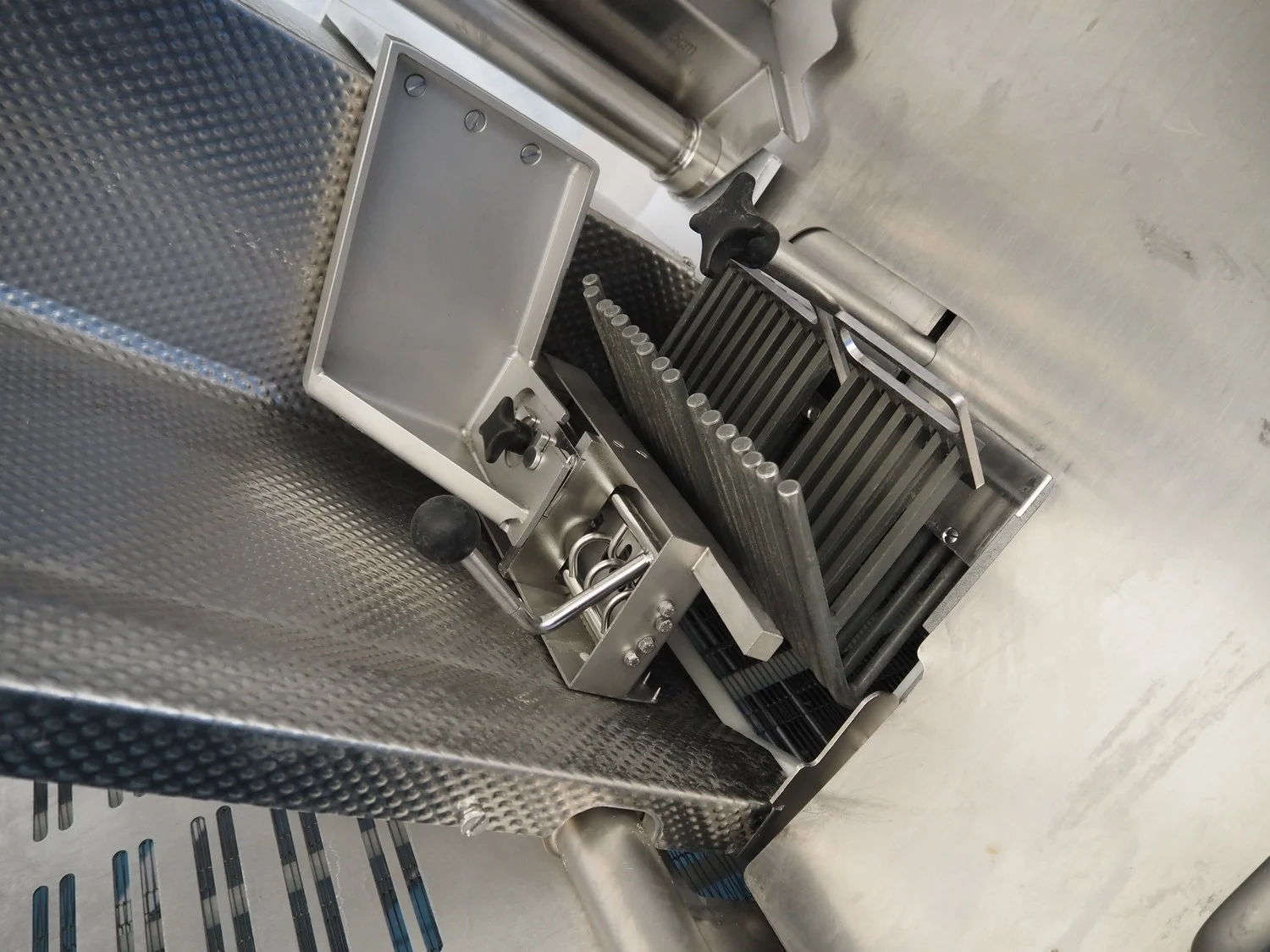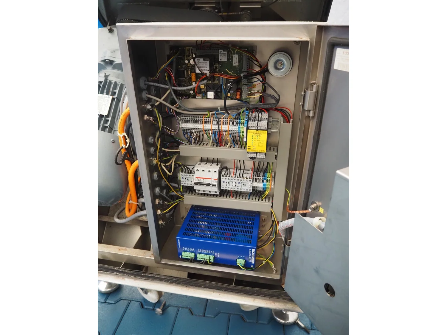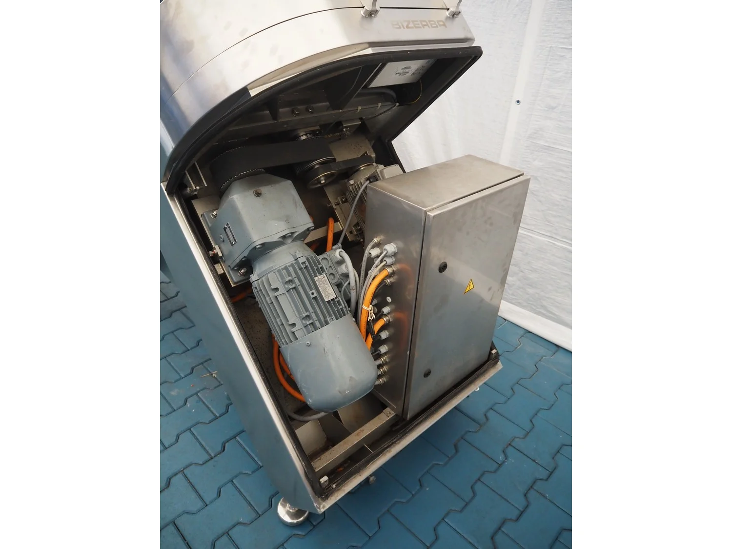 Bizerba mobile slicer, s/s mesh belt, belt width: 300 mm, total dimensions: 2370 mm x 890 mm x 1830 mm.
