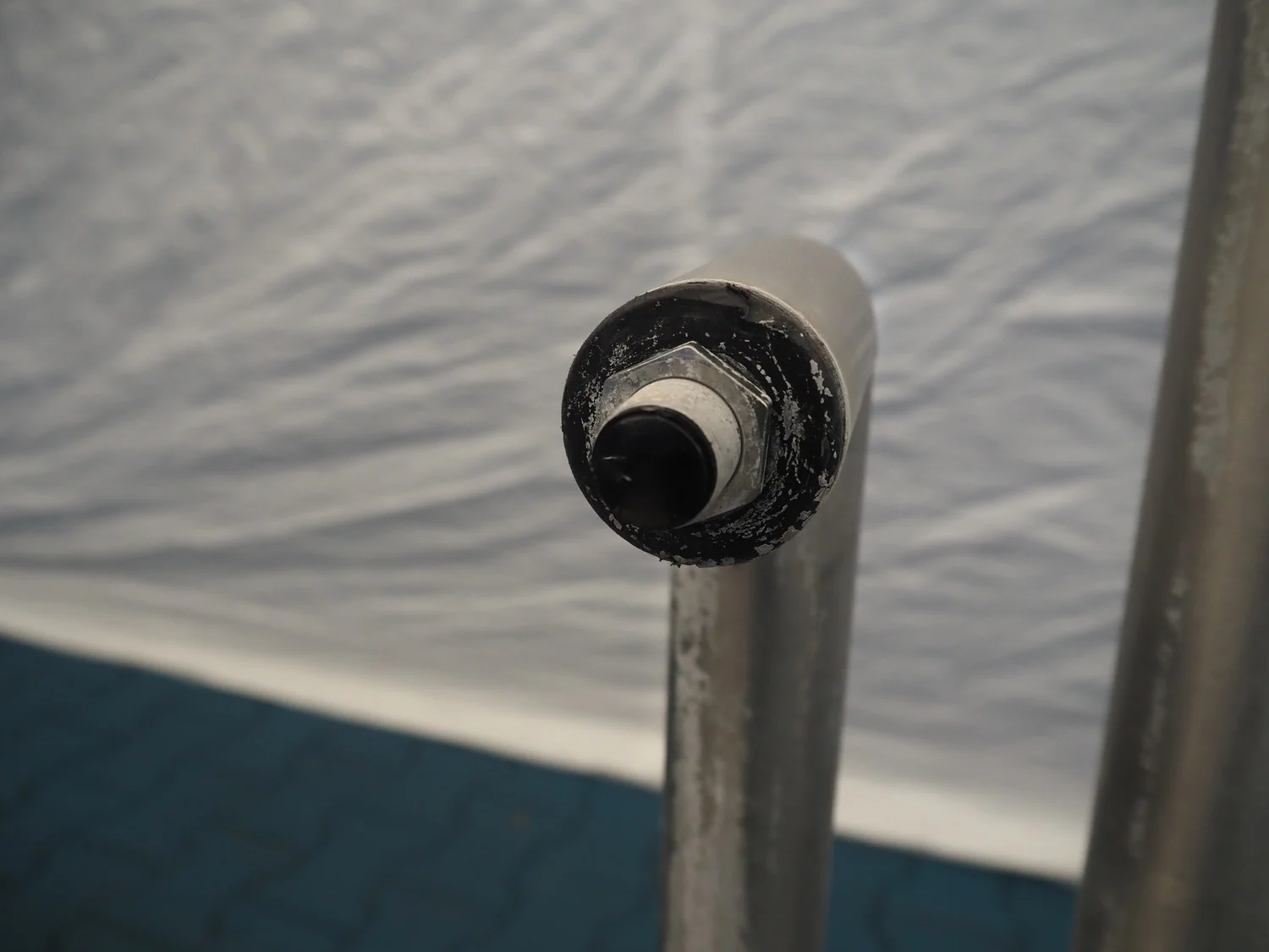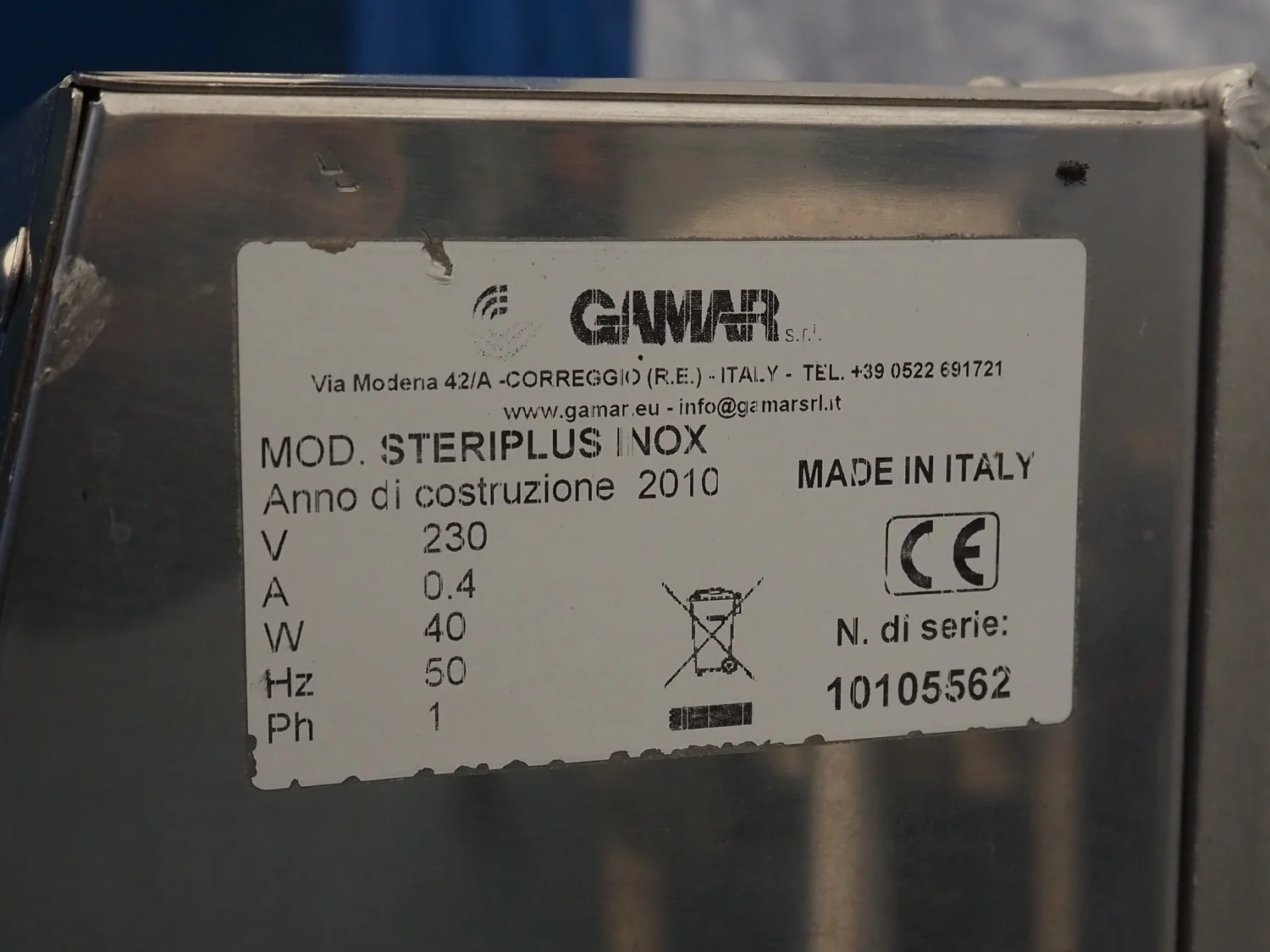 Gamar hygiene station, consisting of: sole cleaner and hand disinfection unit, model: STERIPLUS INOX, serial number: 10105562, year of construction: 2010, 230 V, 1 Ph, 50 Hz, 0.4 A, 40 W, brush length: (2x) 1100 mm, total dimensions: 2120 mm x 1150 mm x 1630 mm.