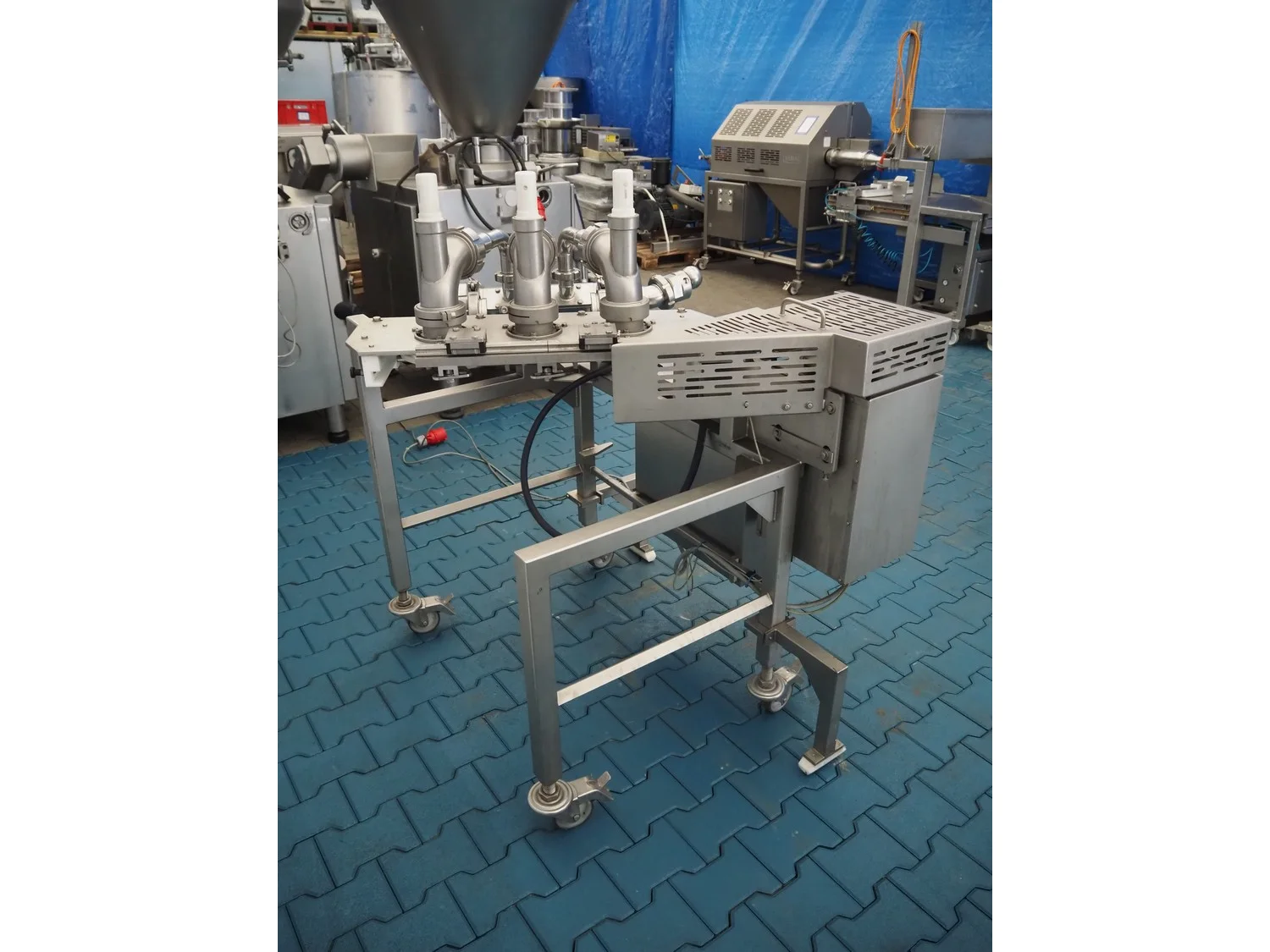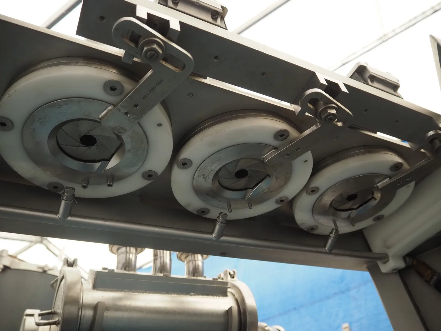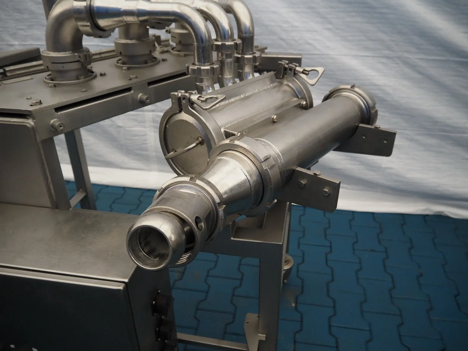 Vemag mobile s/s waterwheel with 3 headed diaphragm, diameter: (3x) 70 mm, total dimensions: 1400 mm x 1300 mm x 1400 mm.