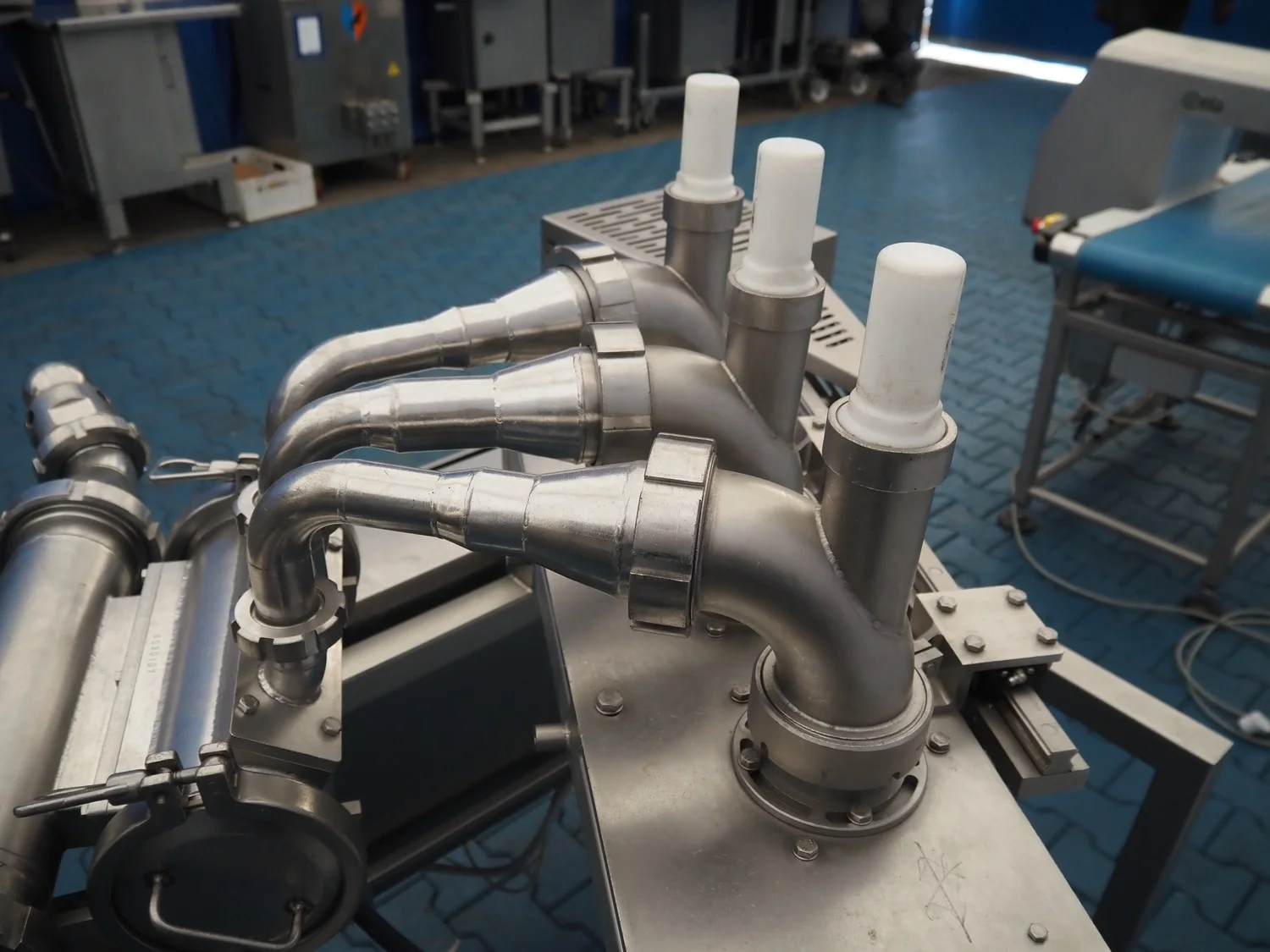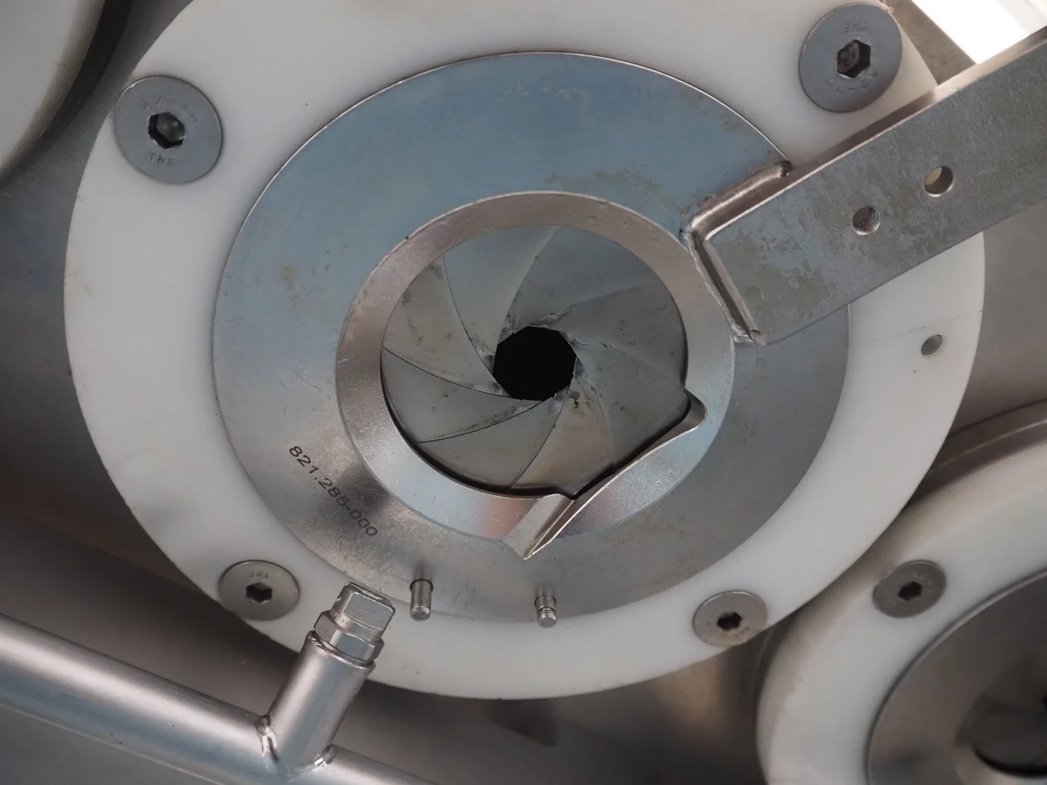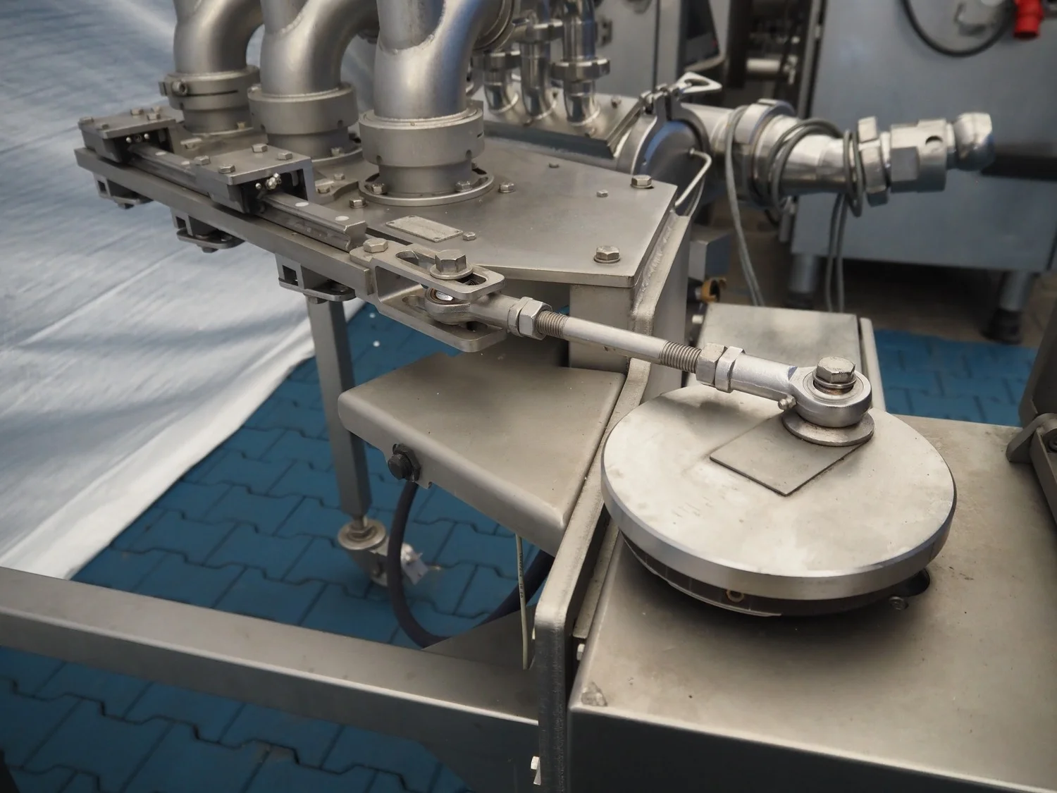 Vemag mobile s/s waterwheel with 3 headed diaphragm, diameter: (3x) 70 mm, total dimensions: 1400 mm x 1300 mm x 1400 mm.