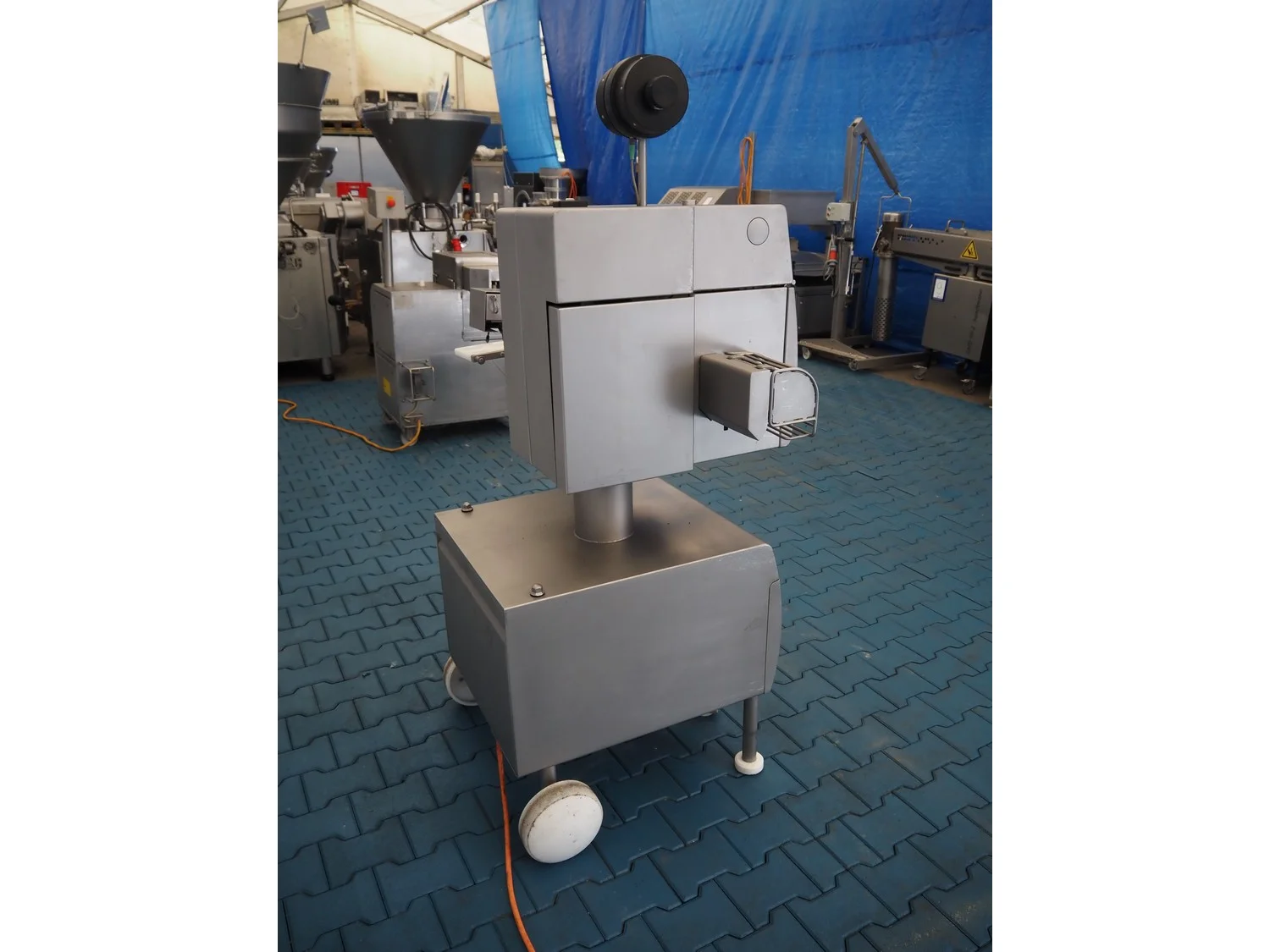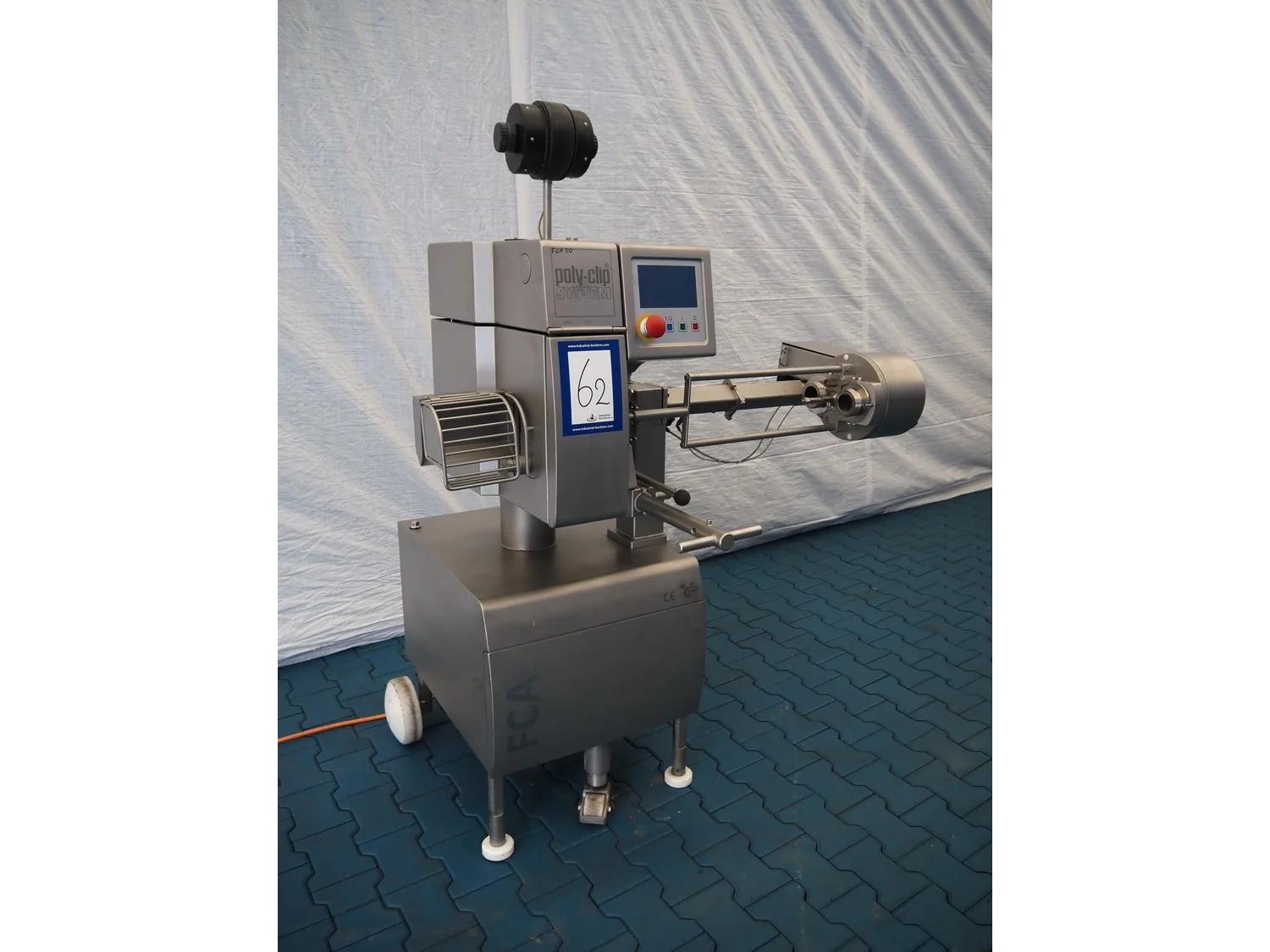 Poly-Clip System GmbH & Co. KG mobile double clipper, type: FCA 50, number: 115, year of construction: 2010, 400 V, 3 Ph, 50/60 Hz, 6.0 A, 4.0 kW, 5-7 bar, dimensions: 1700 mm x 1000 mm x 1850 mm.