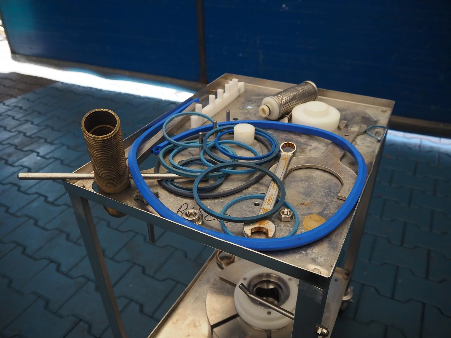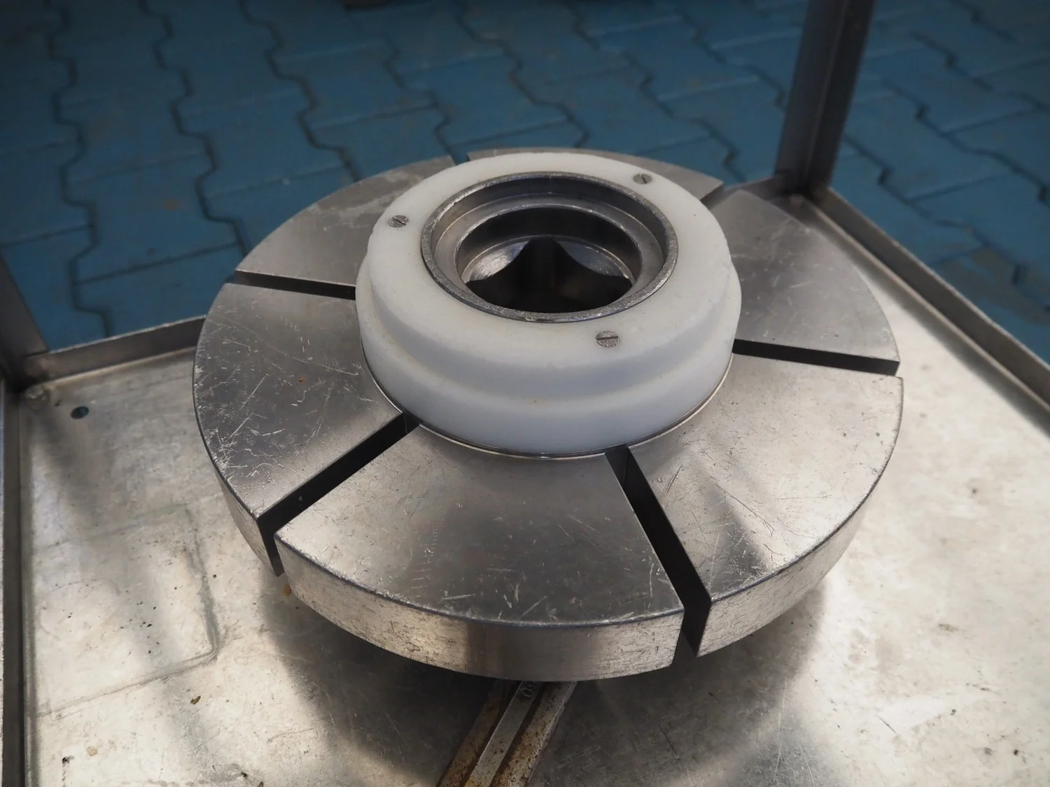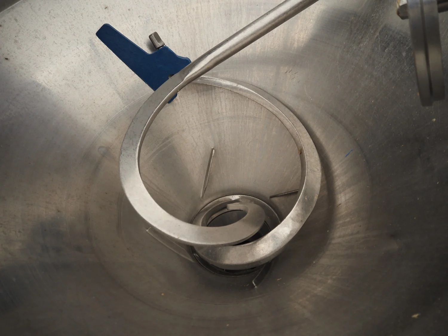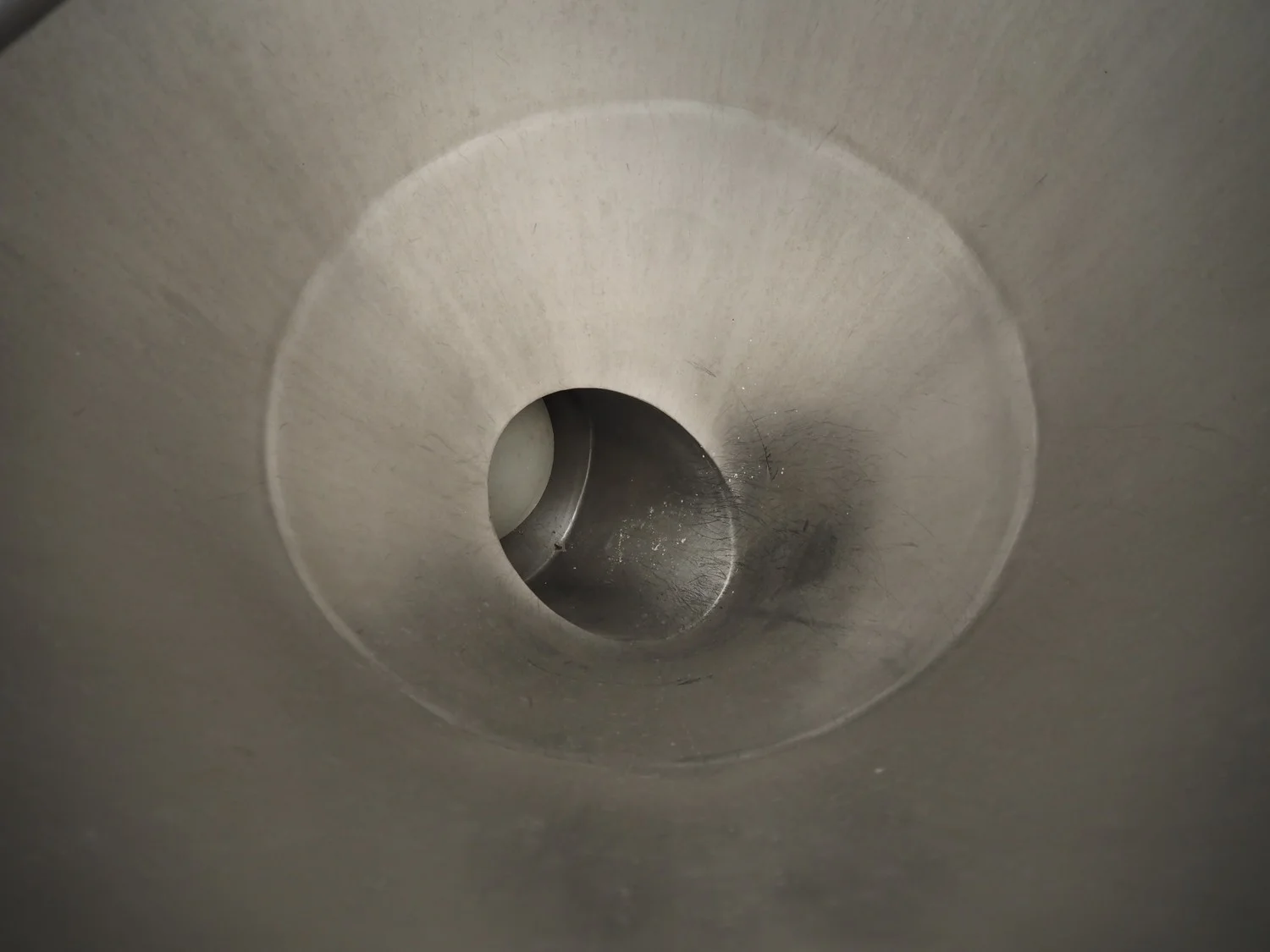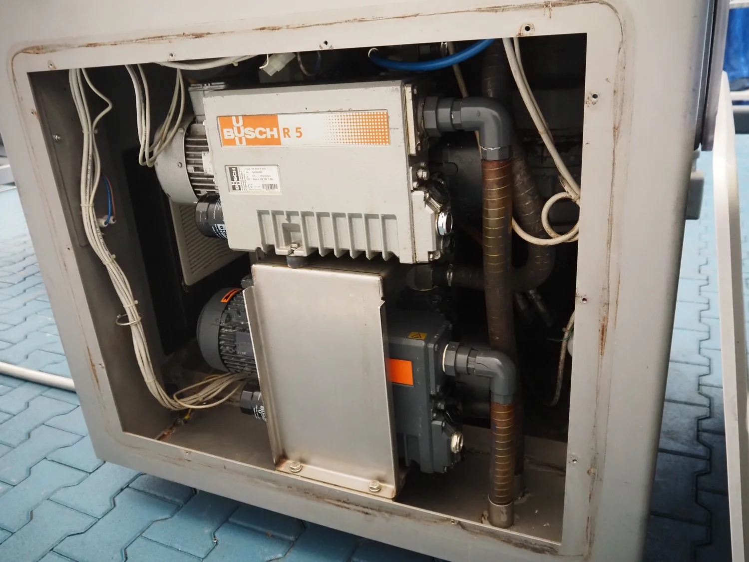 Risco S.P.A. high vacuum filling machine with infeed hopper, machine model: RS 613, serial number: S312017, year of construction: 2013, 400 V, 3 Ph, 50 Hz, 10.0 kW, weight: 1095 kg, dimensions vacuum filler: 1100 mm x 1600 mm x 2500 mm, including infeed hopper, dimensions hopper: 2000 mm x 1700 mm x 1800 mm.