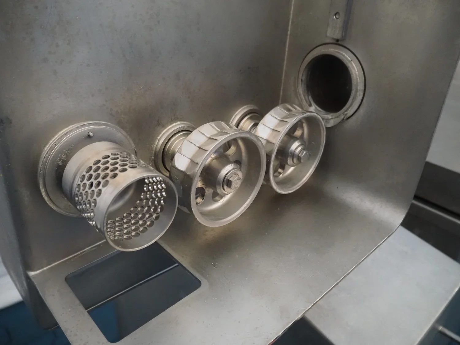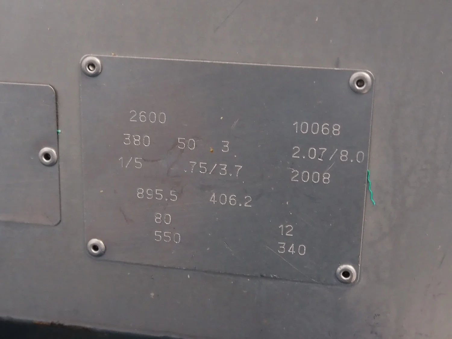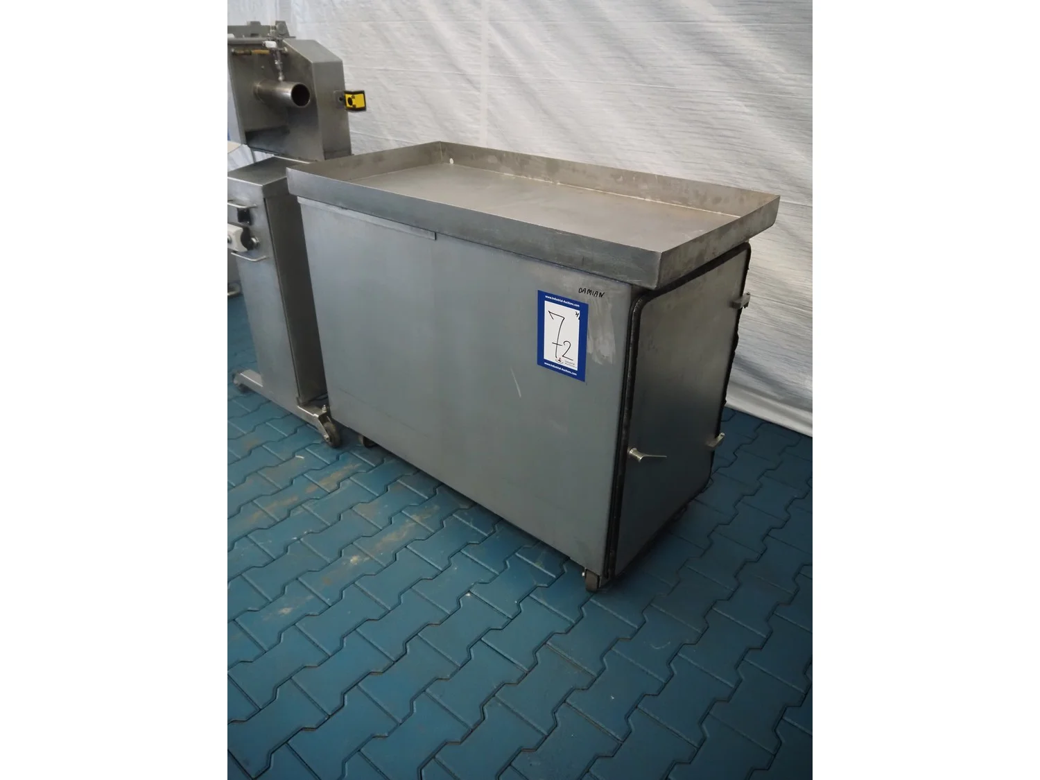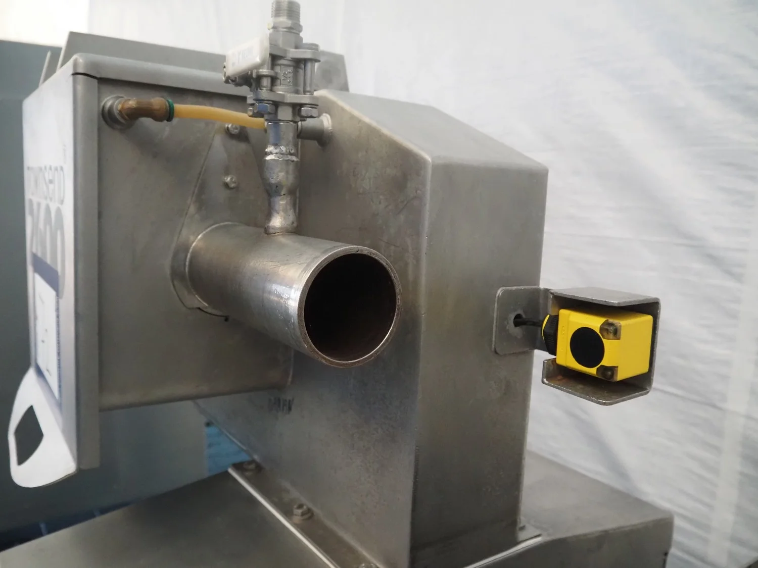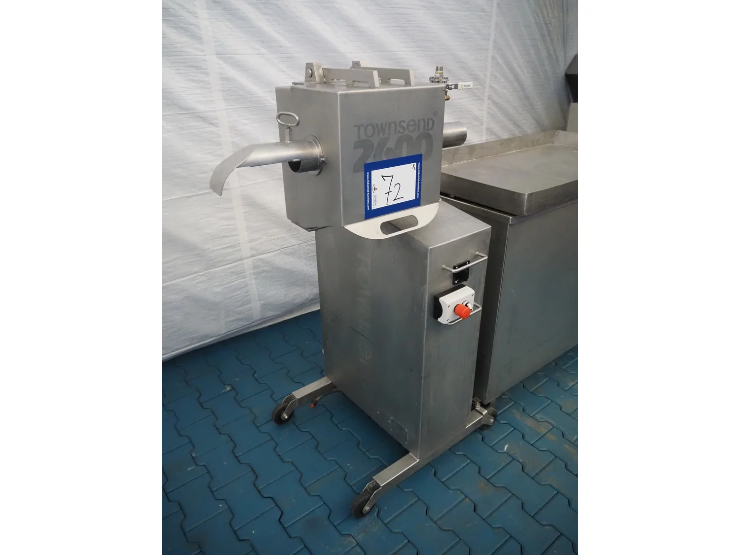 Townsend mobile sausage peeler with suction device, model: 2600, serial number: 10068, year of construction: 2008, 380 V, 3 Ph, 50 Hz, 2.07/8.0 A, 7.5/3.7 kW, diameter pipe: 65 mm, total dimensions: 2200 mm x 700 mm x 1450 mm.