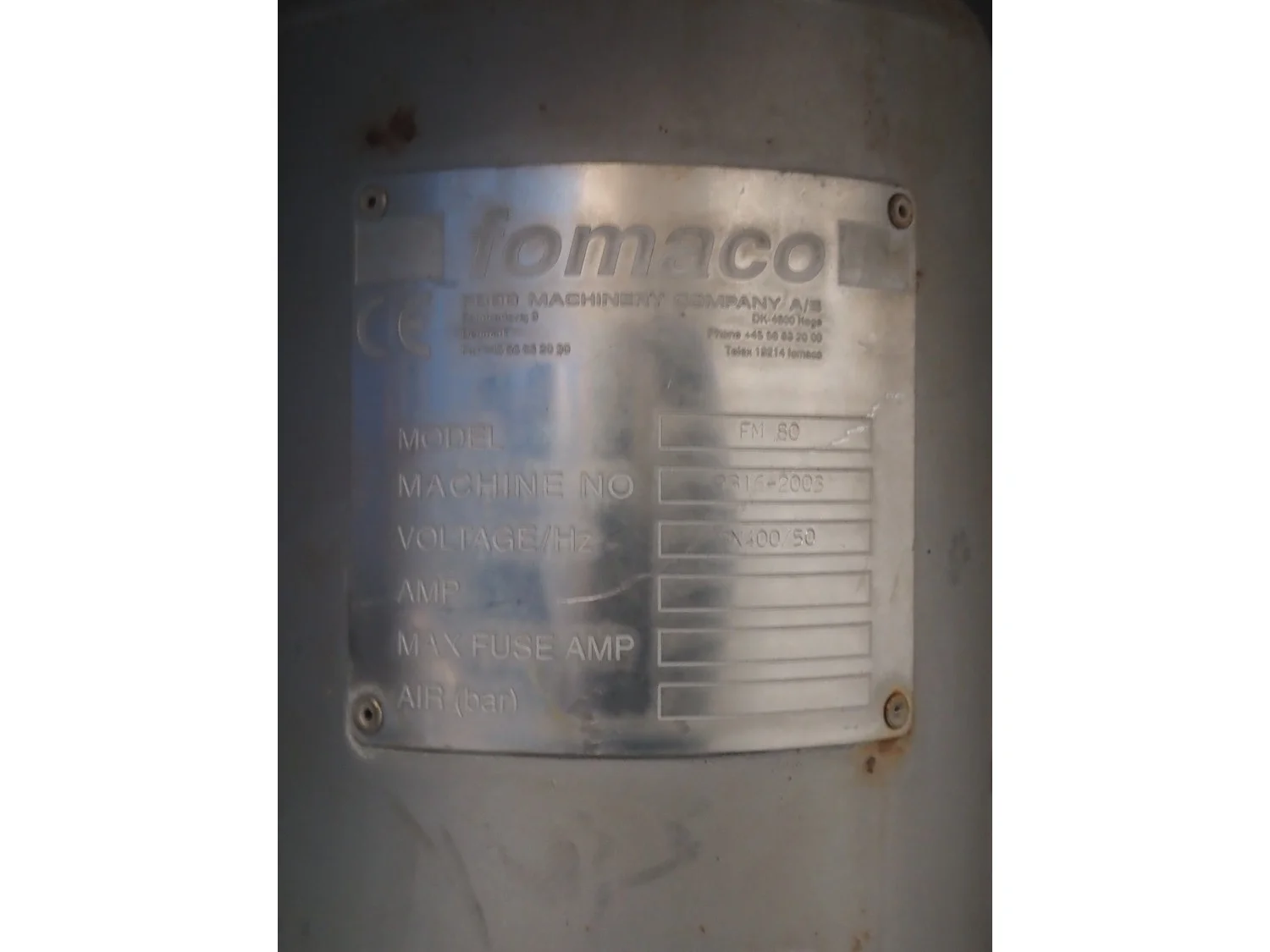Fomaco Food Machinery Company A/S injector, model: FGM 88sw, machine number: 9315-2015, 400 V, 3 Ph, 50 Hz, 26 A, s/s walking beam, beam width: 600 mm, dimensions: 2350 mm x 1350 mm x 2300 mm.