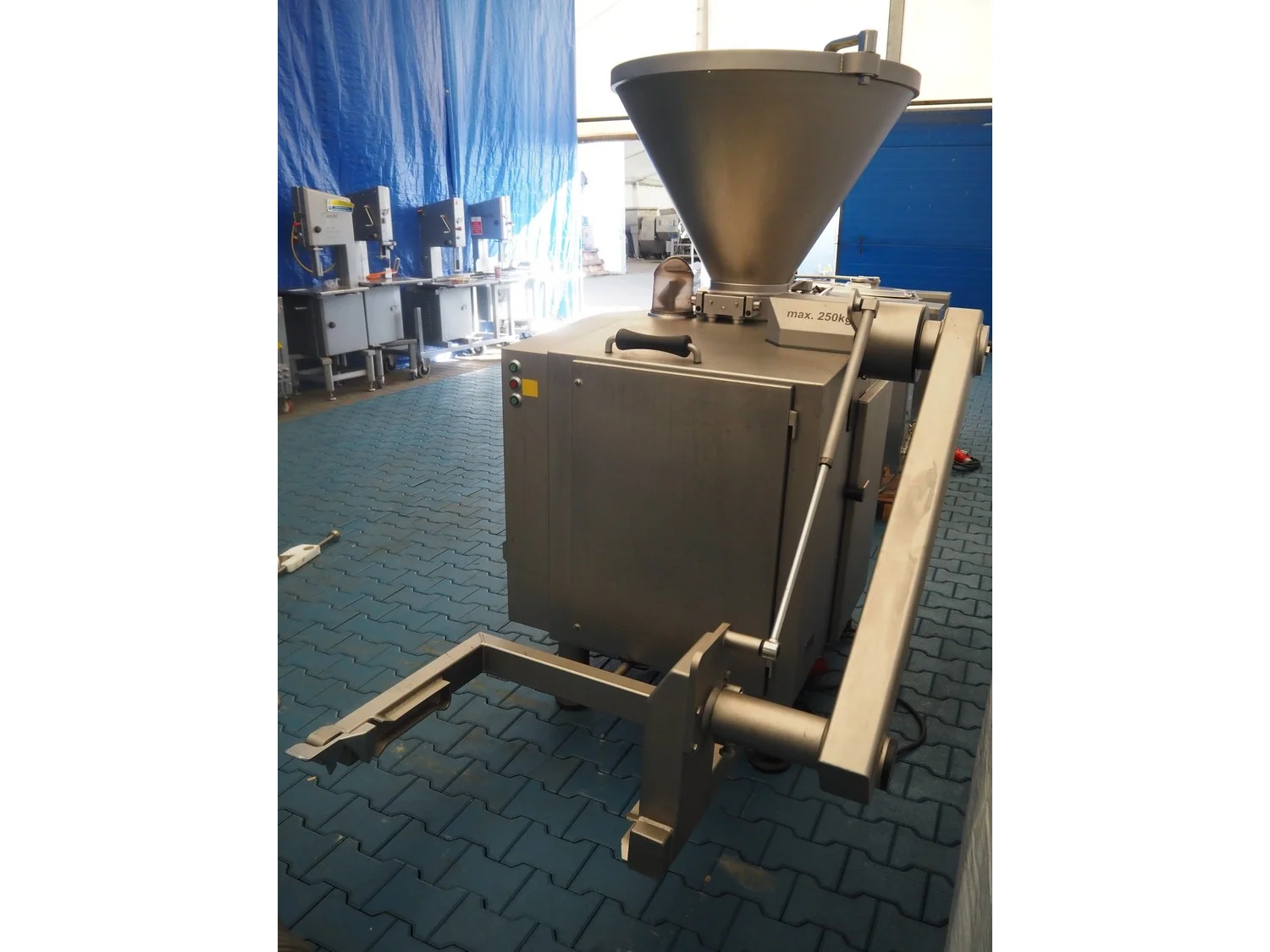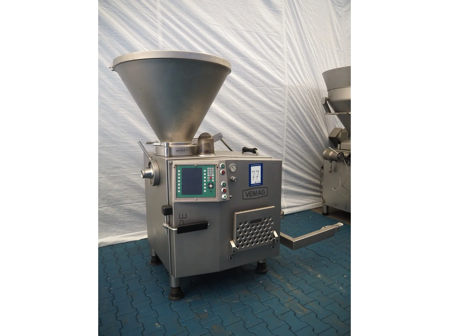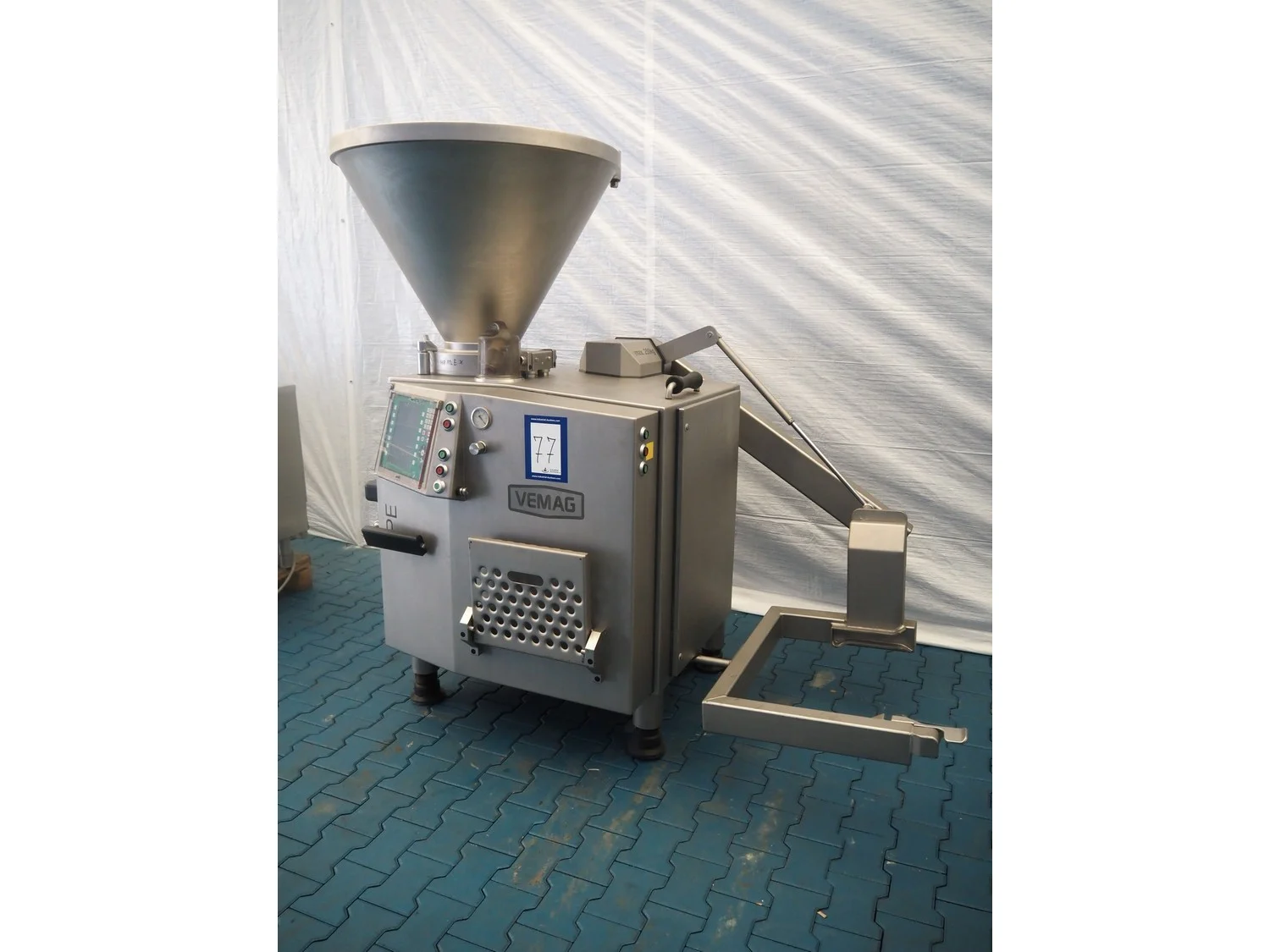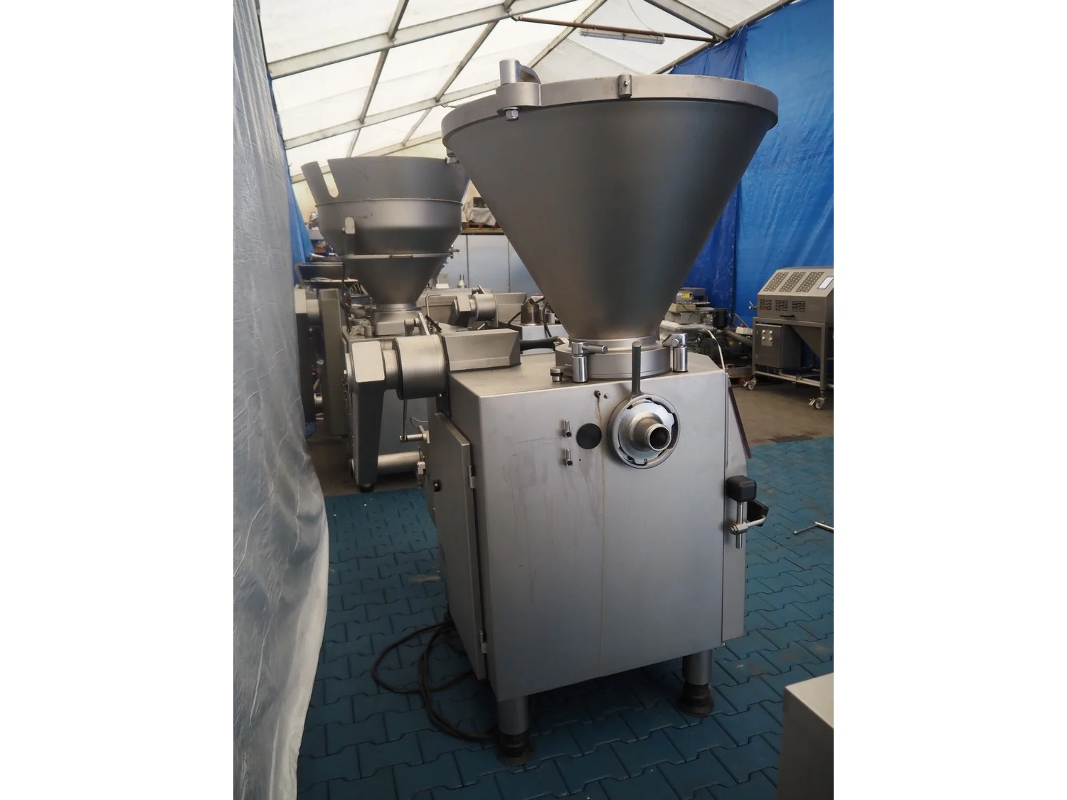Vemag vacuum filling machine with lifter for 200 liter meat bins, model: HP12E, number: 1650655, year of construction: 2016, 400-460 V, 3 Ph, 50/60 Hz, 27 A, 16 kW, dimensions: 2300 mm x 1380 mm x 2050 mm.