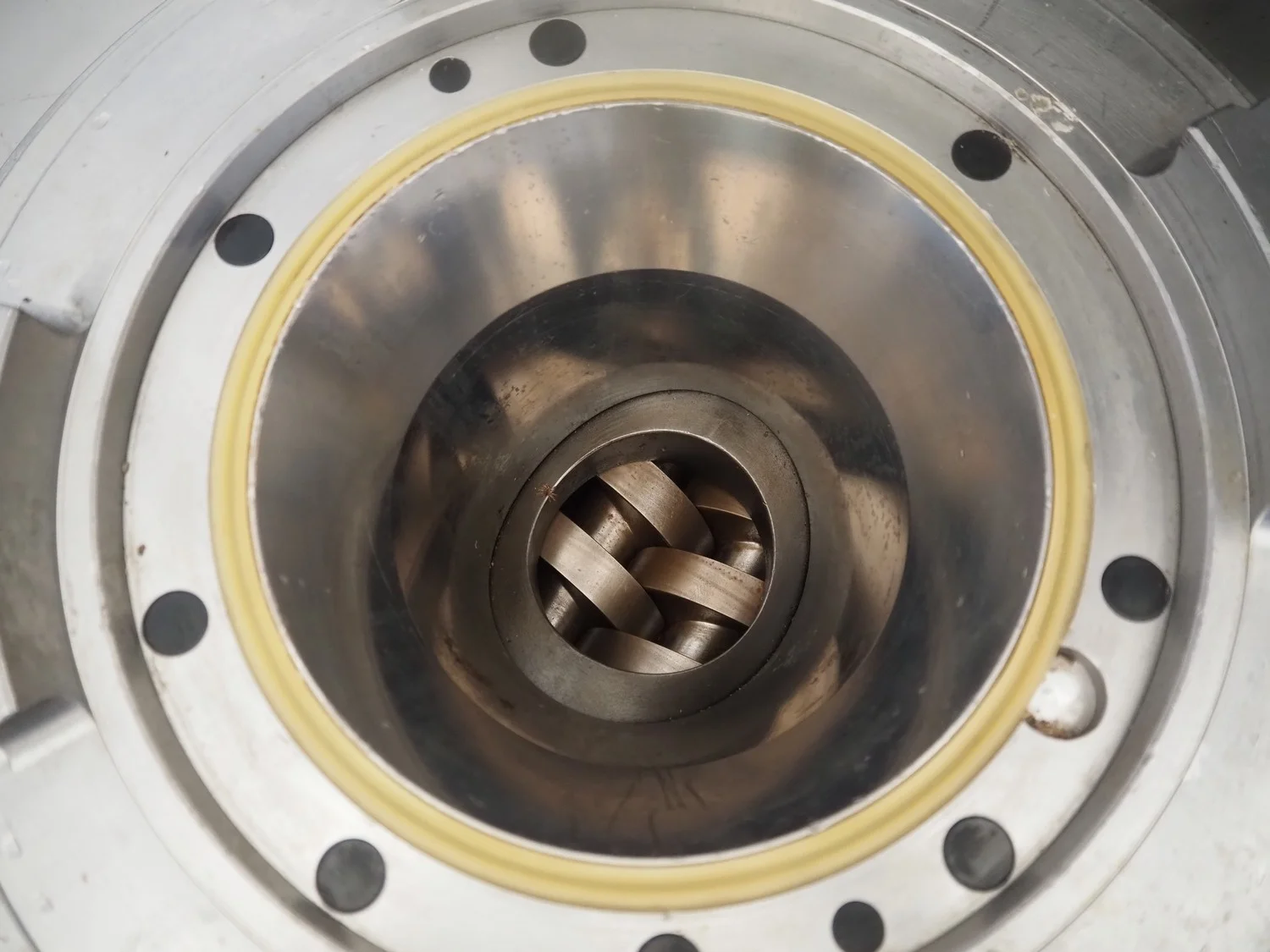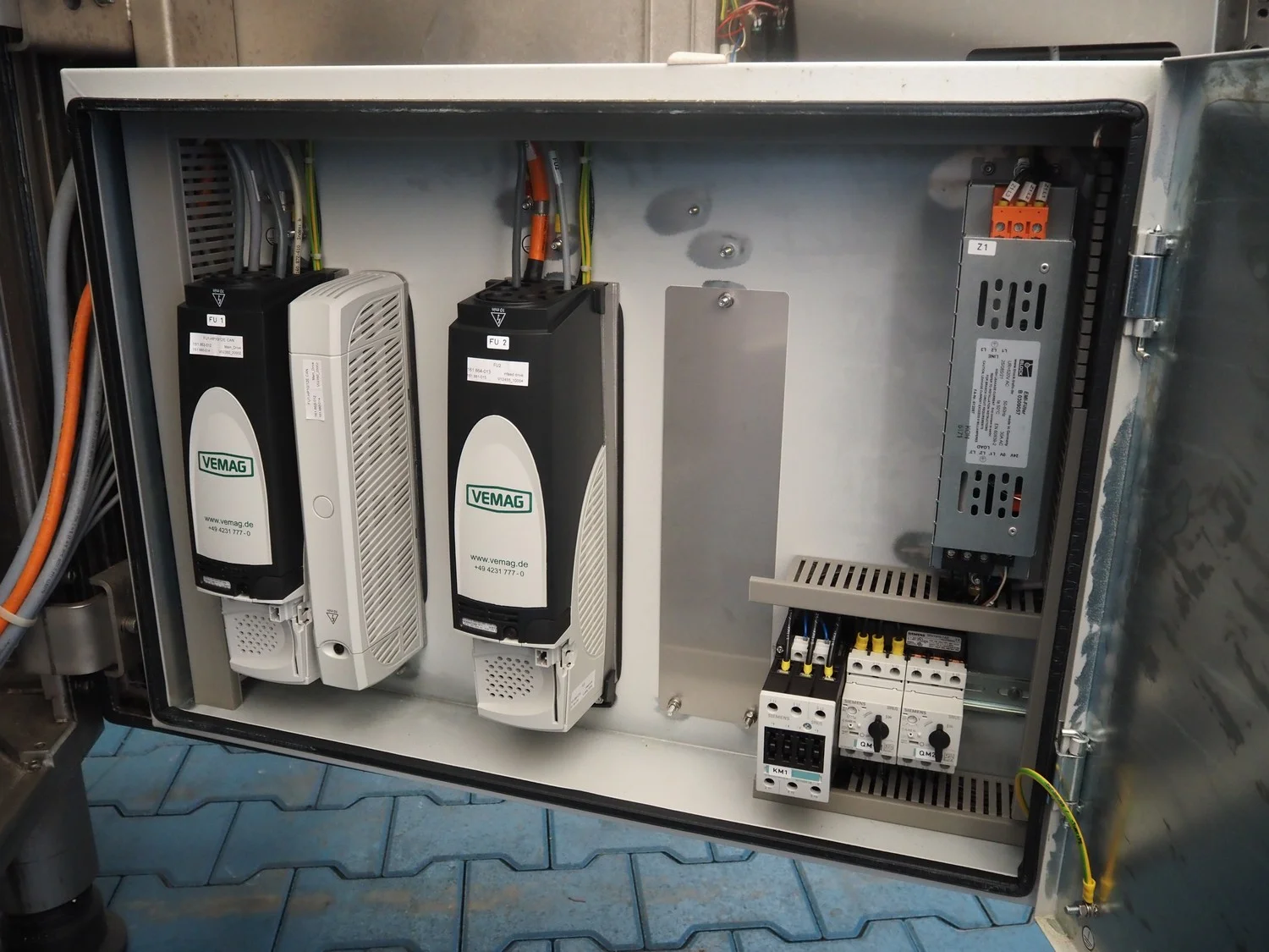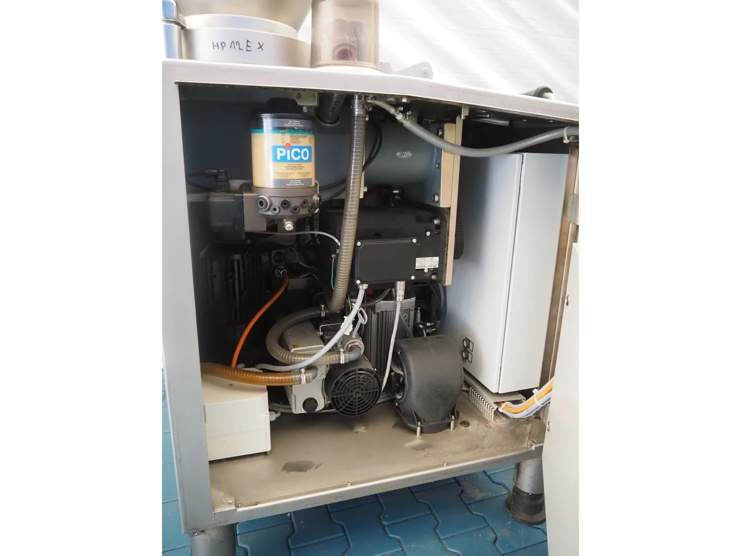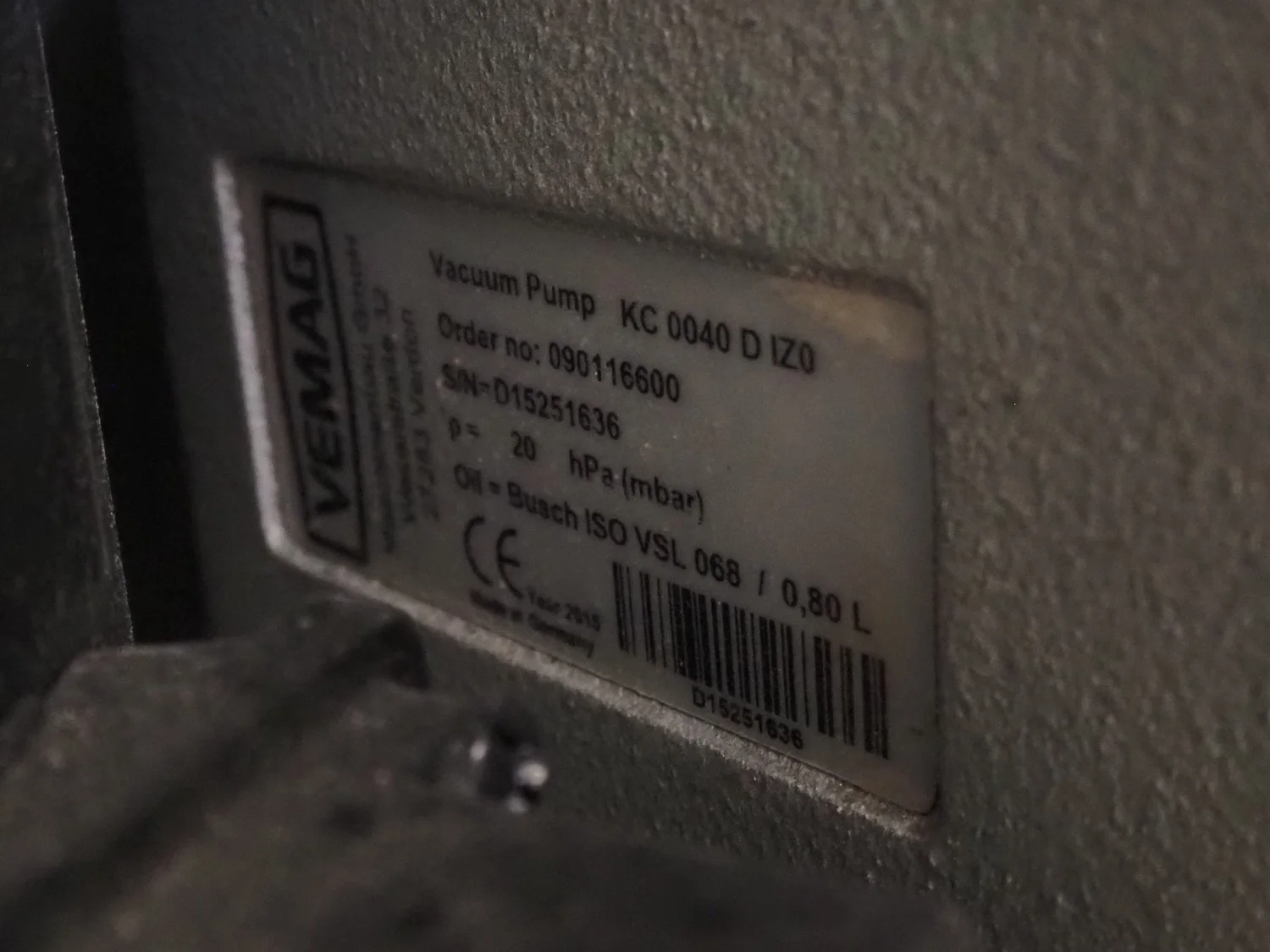 Vemag vacuum filling machine with lifter for 200 liter meat bins, model: HP12E, number: 1650655, year of construction: 2016, 400-460 V, 3 Ph, 50/60 Hz, 27 A, 16 kW, dimensions: 2300 mm x 1380 mm x 2050 mm.
