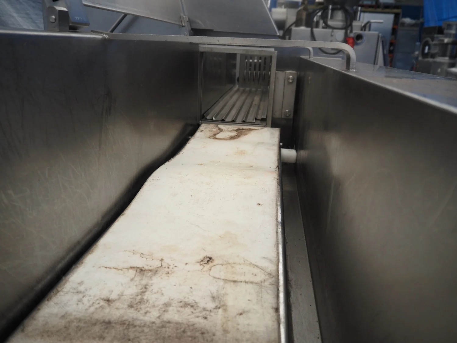Holac Machinenbau GmbH slicer, type: 23/100 C, serial number: 283-23-35, year of construction: 1999, 400 V, 50 Hz, 12.2 A, 4.6 kW, dimensions chamber: 950 mm x 220 mm x 220 mm, plastic belt, belt width: 250 mm, total dimensions: 1030 mm x 2700 mm x 1200 mm. Technical condition unknown.