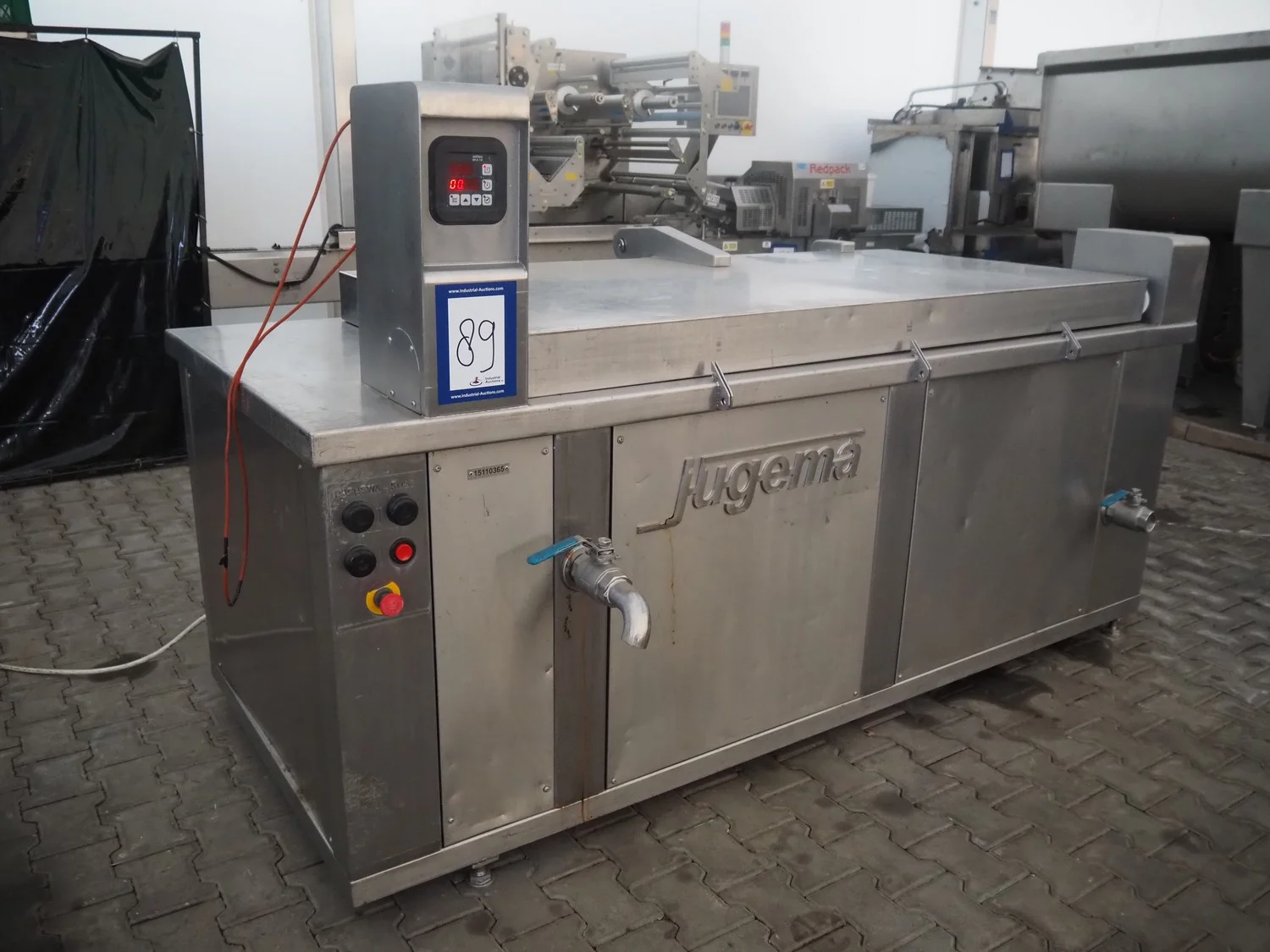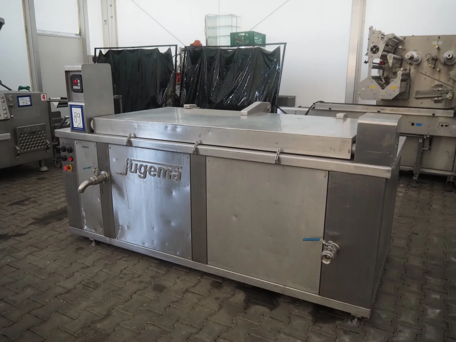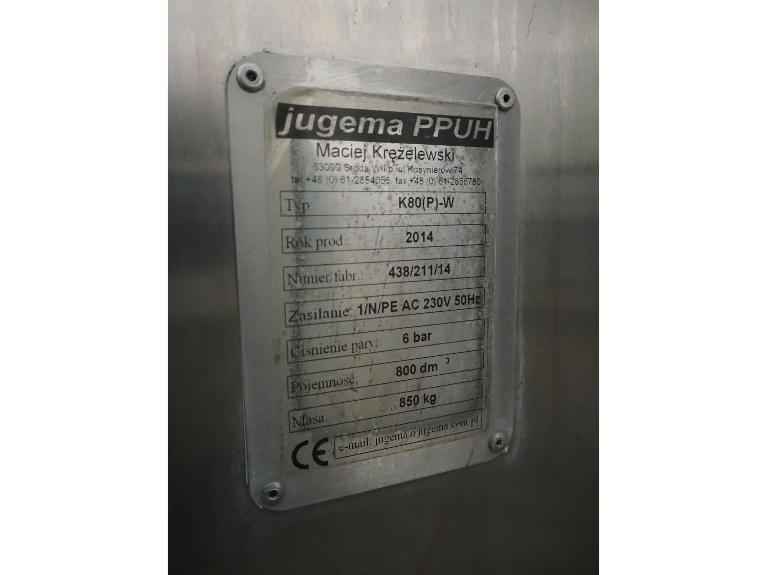 Jugema cooking vessel, type: K80(P)-W, serial number: 438/211/14, year of construction: 2014, 230 V, 1 Ph, 50 Hz, 6 bar, weight: 850 kg, inside dimensions: 1900 mm x 900 mm x 520 mm, total dimensions: 2500 mm x 1400 mm x 1500 mm.