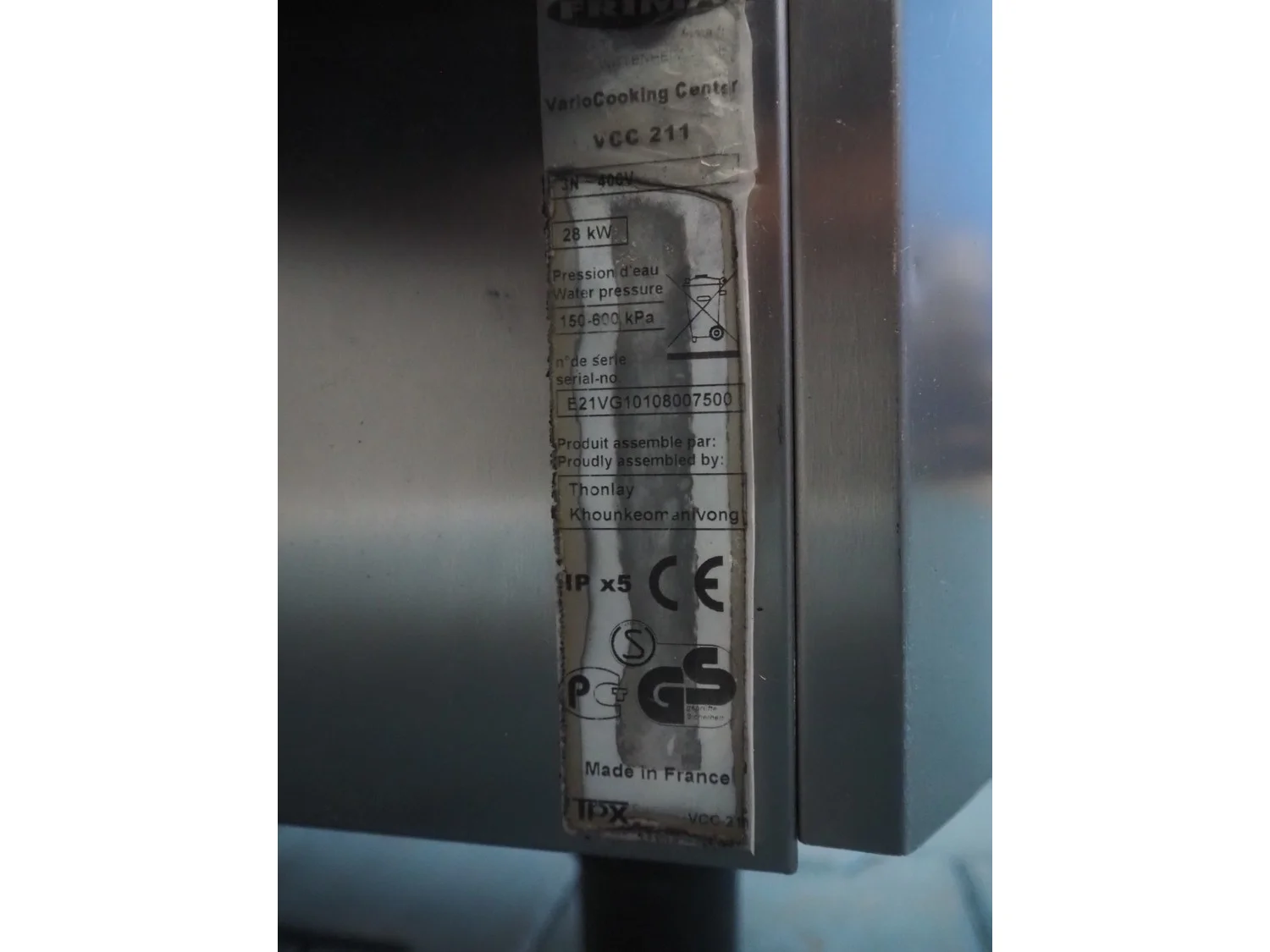Rational AG cooking vessel, type: VCC 211, serial number: E21VG10108007500, 400 V, 3 Ph, 28 kW, water pressure: 150-600 kPa, dimensions: 1140 mm x 930 mm x 1100 mm.