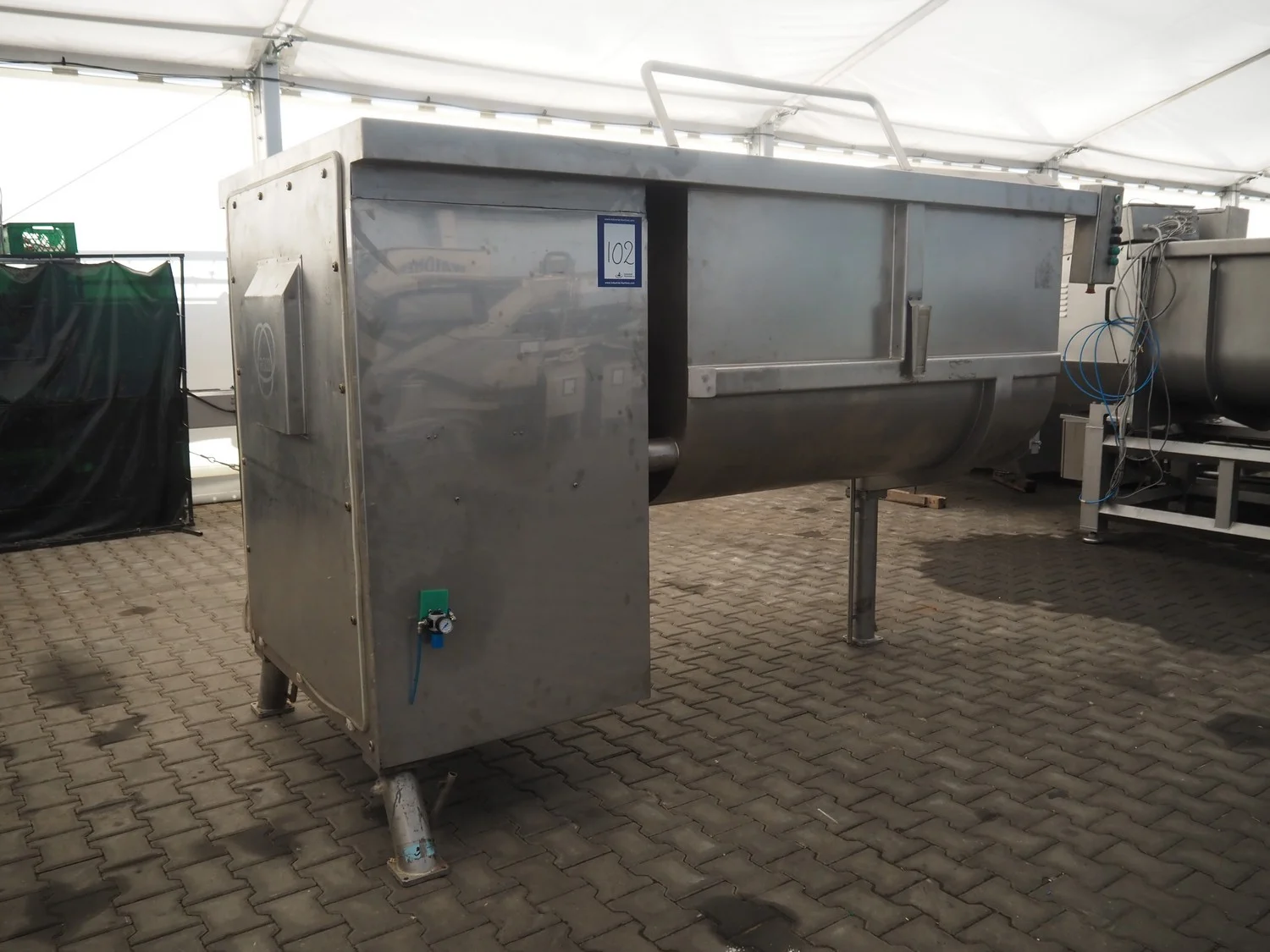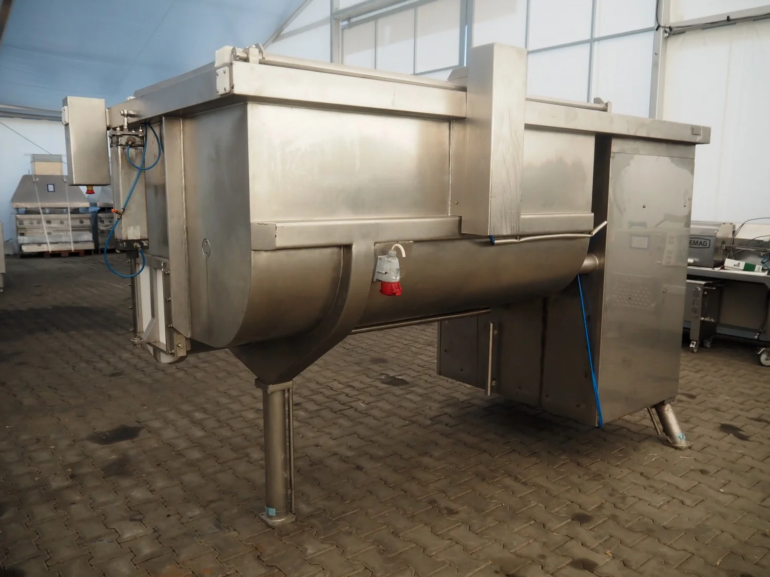 Risco double paddle mixer, volume: 2200 liter, dimensions: 3100 mm x 1600 mm x 2200 mm. Complete overhauled.
