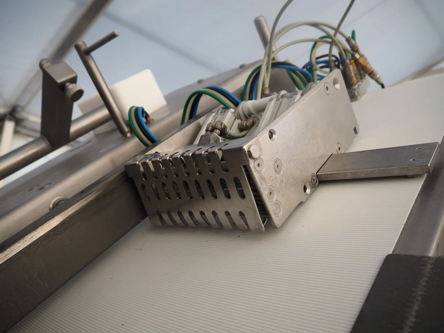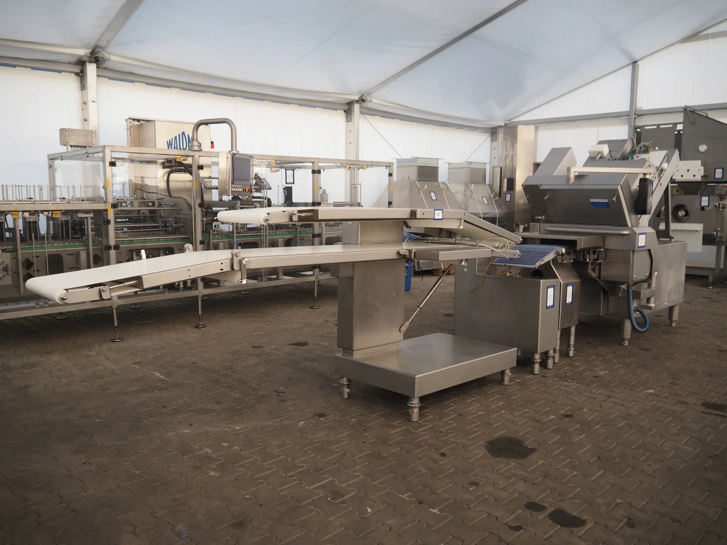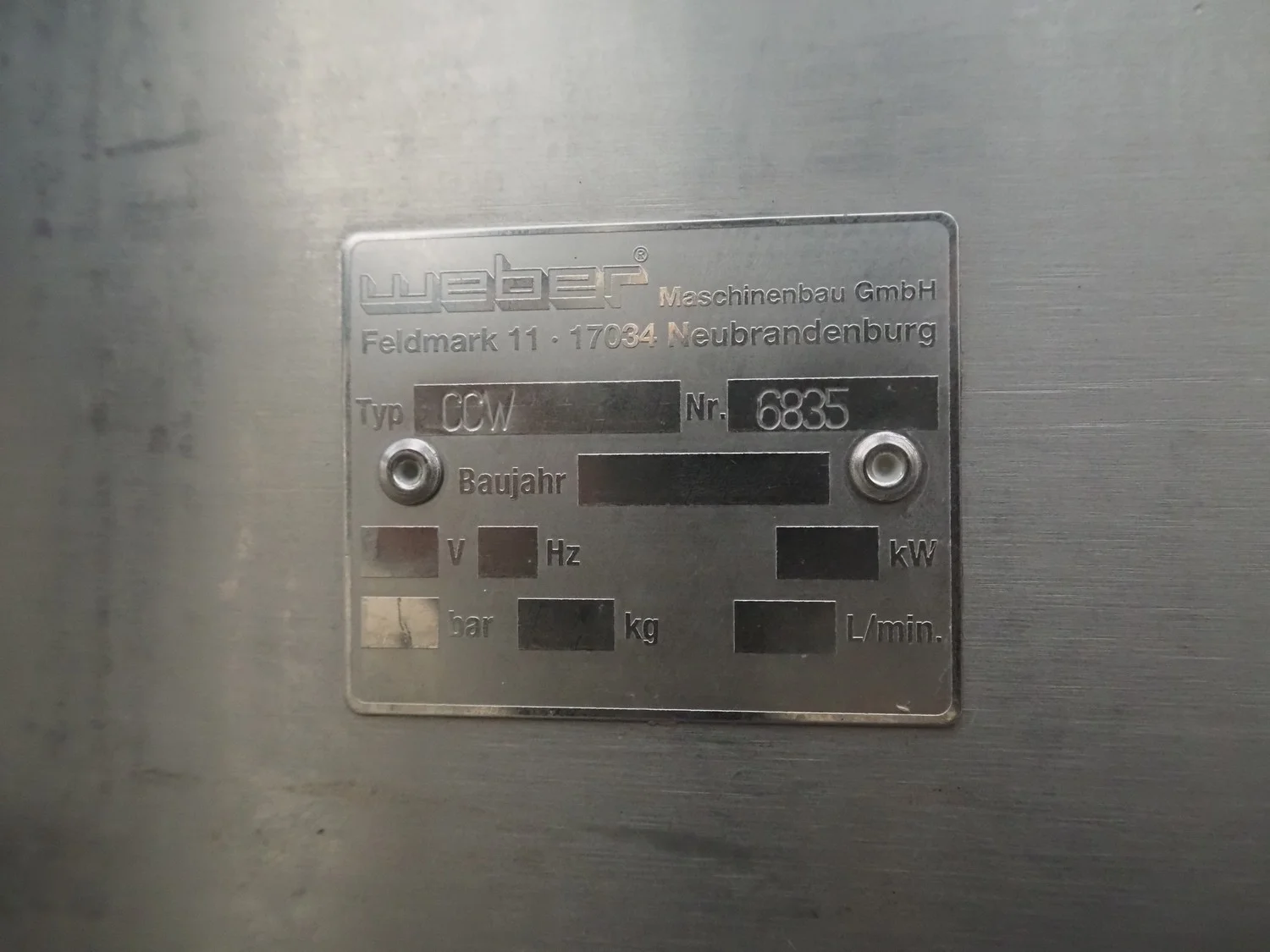 Weber slicer line consisting of: Weber slicer, type slicer: CCS 602, number: 835, year of construction: 08/2005, 400 V, 50 Hz, 10 kW, plastic belt, belt width: 400 mm, Wipotec checkweigher, type: Web 99 Waage T30B-R-CAN, serial number: 0001018, year of construction: 2005, maximum weight: 3000 gram, plastic string belt, belt width: 400 mm, Weber outfeed belt, type outfeed belt: CCR and CCE, number: 6835, year of construction: 08/2005, total dimensions slicer: 2500 mm x 1300 mm x 2200 mm, total dimensions checkweigher: 350 mm x 900 mm x 1150 mm and total dimensions outfeed belt: 3500 mm x 1000 mm x 1450 mm. Including 3 extra knives (1 for cheese and 2 normal)