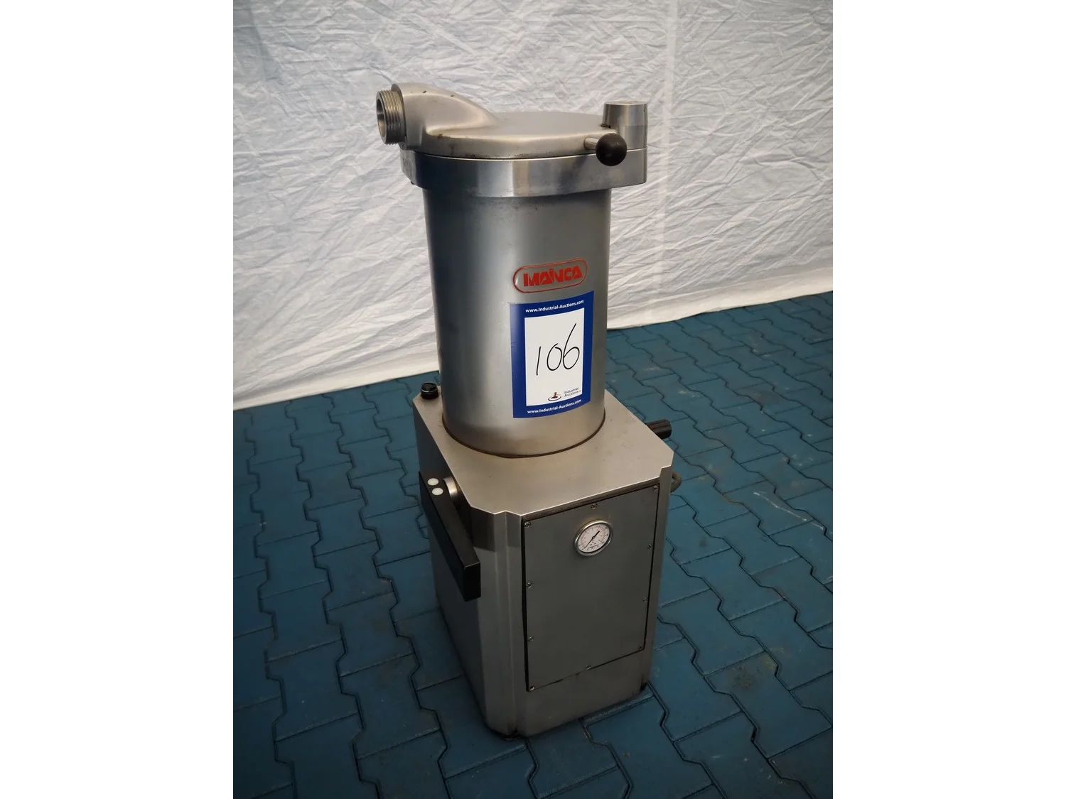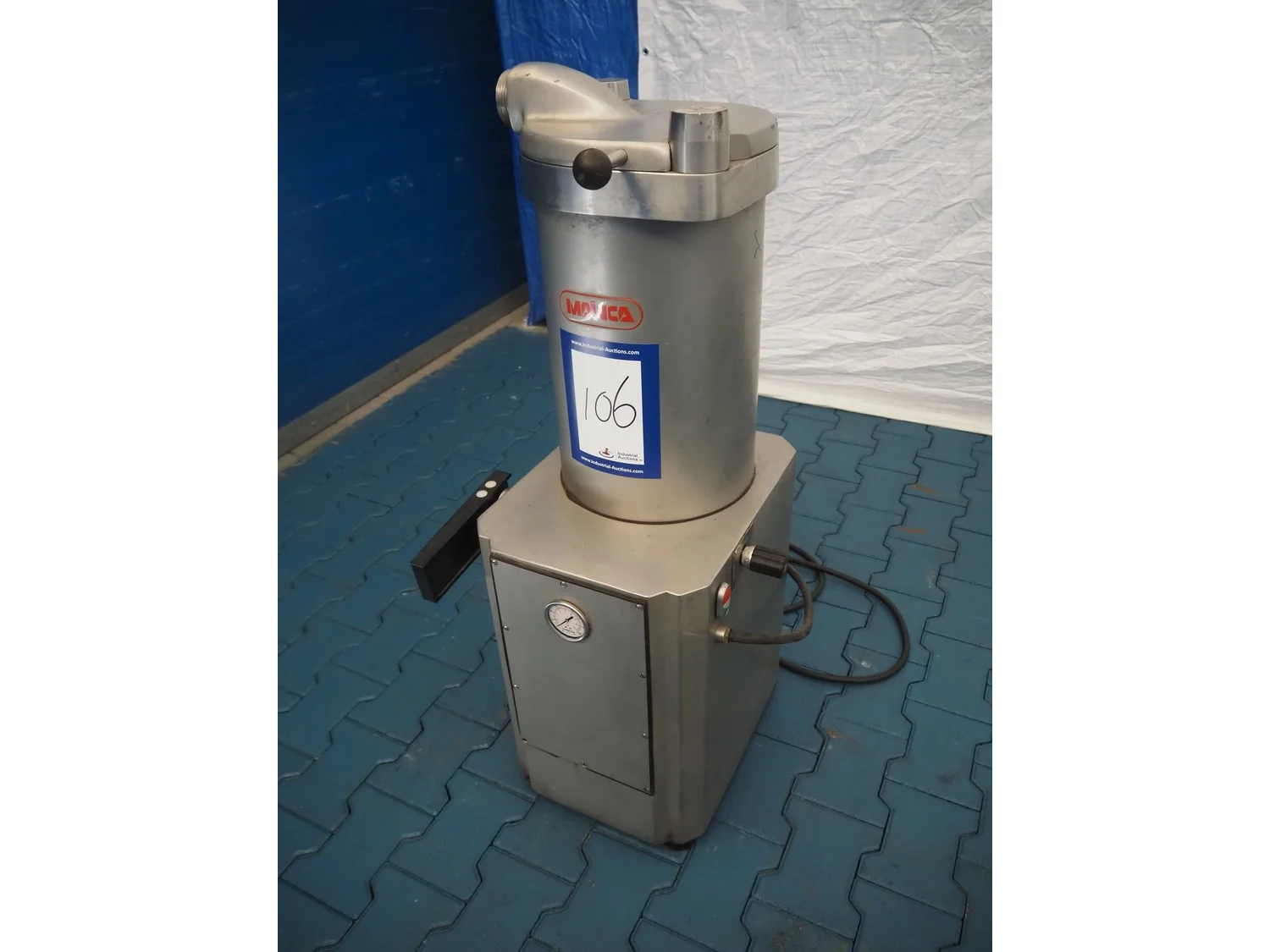 Mainca piston filler, model: EM 25, number: 3139, year of construction: 1997, 380 V, 1 Ph, 50 Hz, 2.9 A, 1.1 kW, volume: 25 liter, dimensions: 470 mm x 460 mm x 1110 mm. Including filling pipes.